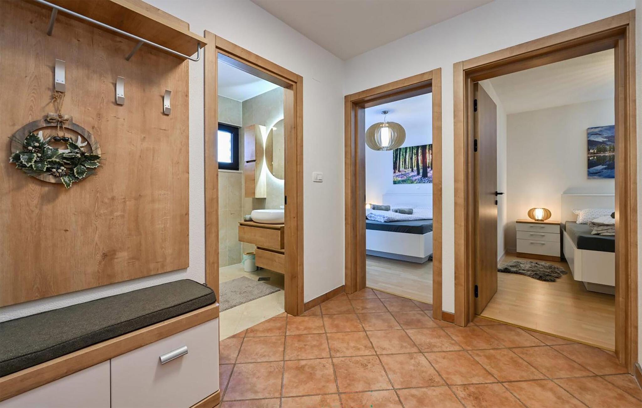 Willkommen in Ihrem idyllischen Rückzugsort in Ogulin Vrelo. Dieses charmante Ferienhaus, umgeben von üppiger Natur, bietet Ihnen eine perfekte Kombination aus rustikalem Charme und modernem Komfort. Die harmonische Atmosphäre und die durchdachte Gestaltung schaffen einen Ort, an dem Sie sich sofort wohlfühlen werden. Die drei separaten Wohneinheiten, jede mit eigenem Eingang, eigener Küche, Waschmaschine und Wäschetrockner, garantieren Ihnen Privatsphäre und Unabhängigkeit. Genießen Sie die gemütlichen Innenräume und entspannen Sie auf den Balkonen, die einen herrlichen Blick auf die Umgebung bieten.