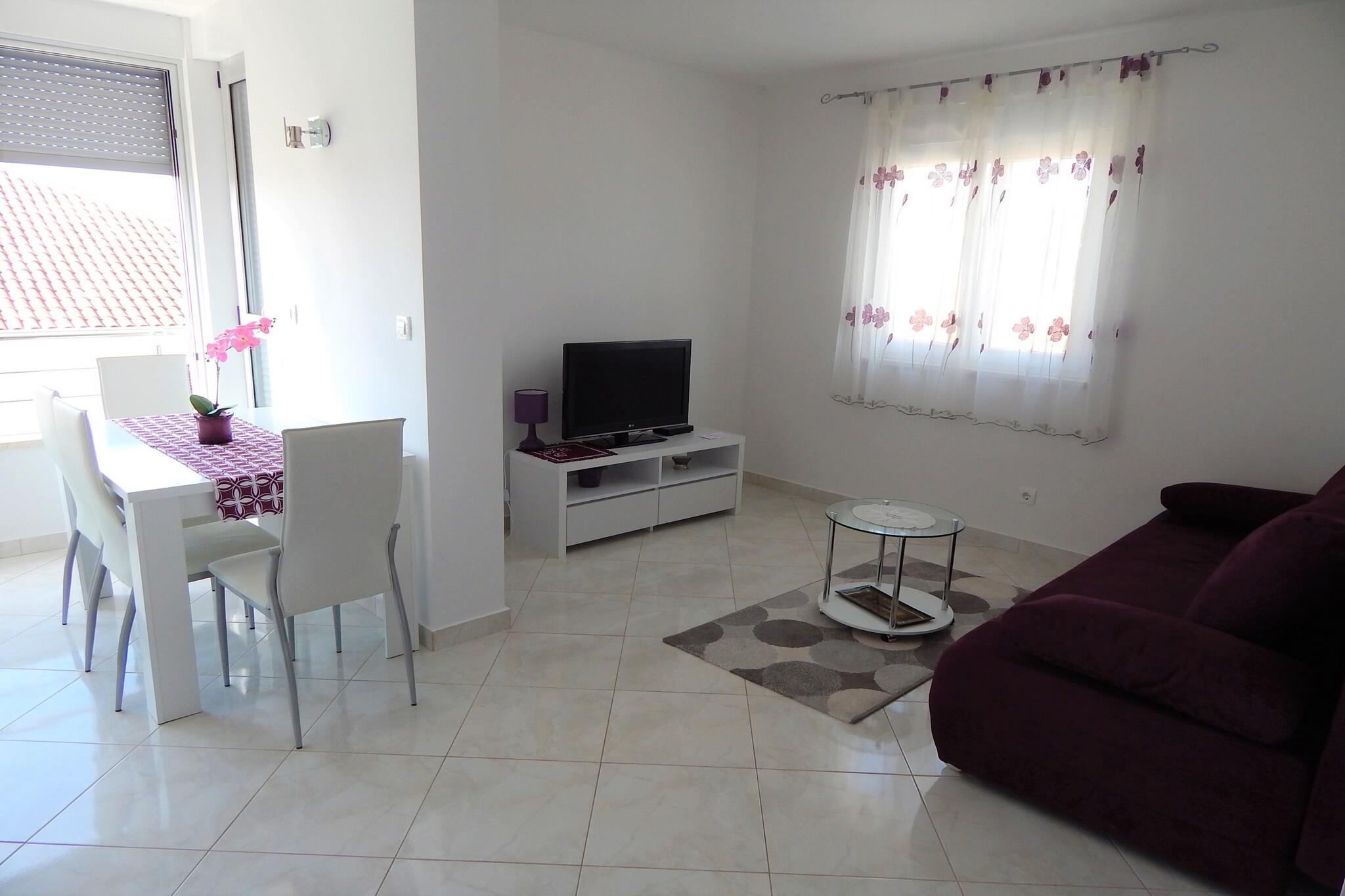 Entspannen Sie sich in Okrug Gornji in diesem einladenden Apartment für vier Personen, nur 100 Meter von der kristallklaren Adria und dem Sandstrand entfernt. Eingebettet in eine ruhige Küstenlandschaft bietet dieses erholsame Refugium eine perfekte Lage: Restaurants, Lebensmittelgeschäfte und öffentliche Verkehrsmittel sind bequem zu Fuß erreichbar. Nur 2 km entfernt liegt die historische Stadt Trogir, wo Gäste jahrhundertealte Architektur, geschäftige Märkte und eine lebendige Hafenpromenade entdecken können. Das Apartment bietet ein warmes und funktionales Interieur mit einem komfortablen Wohnbereich mit Doppelschlafsofa, Klimaanlage und Flachbild-Sat-TV. Die voll ausgestattete Küche ermöglicht Selbstverpflegung, während das separate Schlafzimmer mit Doppelbett Privatsphäre und Komfort bietet. Genießen Sie die Gemeinschaftsterrasse, grillen Sie im Freien und profitieren Sie von praktischen Annehmlichkeiten wie einer Waschmaschine und einer hervorragenden Verkehrsanbindung. Erkunden Sie die Umgebung von Okrug Gornji und besuchen Sie den Diokletianpalast in Split, eines der beeindruckendsten römischen Monumente der Welt. Bestaunen Sie auch die Kathedrale des Heiligen Domnius, bekannt für ihren Glockenturm und Panoramablick. Zum Essen empfehlen wir das Mali Raj mit authentischen lokalen Gerichten oder die Konoba Trs in Trogir mit Meeresfrüchten in einem historischen Innenhof. Dieses Küstenparadies ist ideal für Gäste, die Ruhe und kulturelle Erlebnisse suchen.