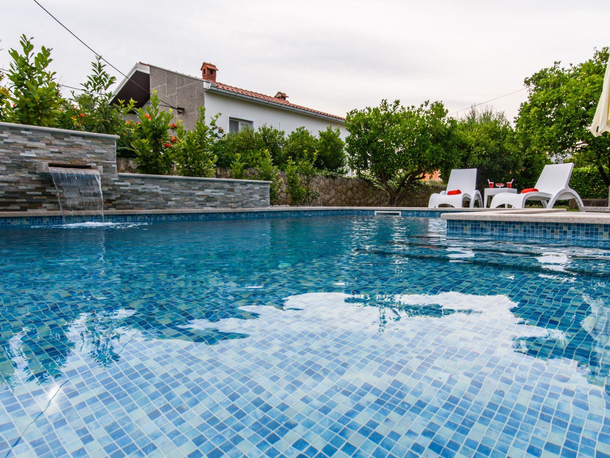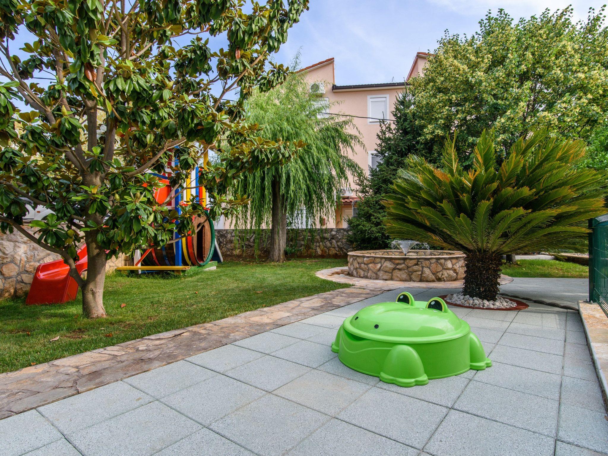 Umgebung des Objekts (Eingerichtet), Hof (700m2, Kinderbereich, Sitzbereich), Parkplatz (Anzahl der Parkplätze: 5, Entfernung vom Objekt: im Hof), Pool: gemeinsam, Dimensionen: 6.5m x 4m x 1.6m, Wassertyp: Salzwasser, Heizung: Ja, Grill: gemeinsam, WiFi Internet, Föhn, Bügeleisen, Bügelbrett, Kinderbett