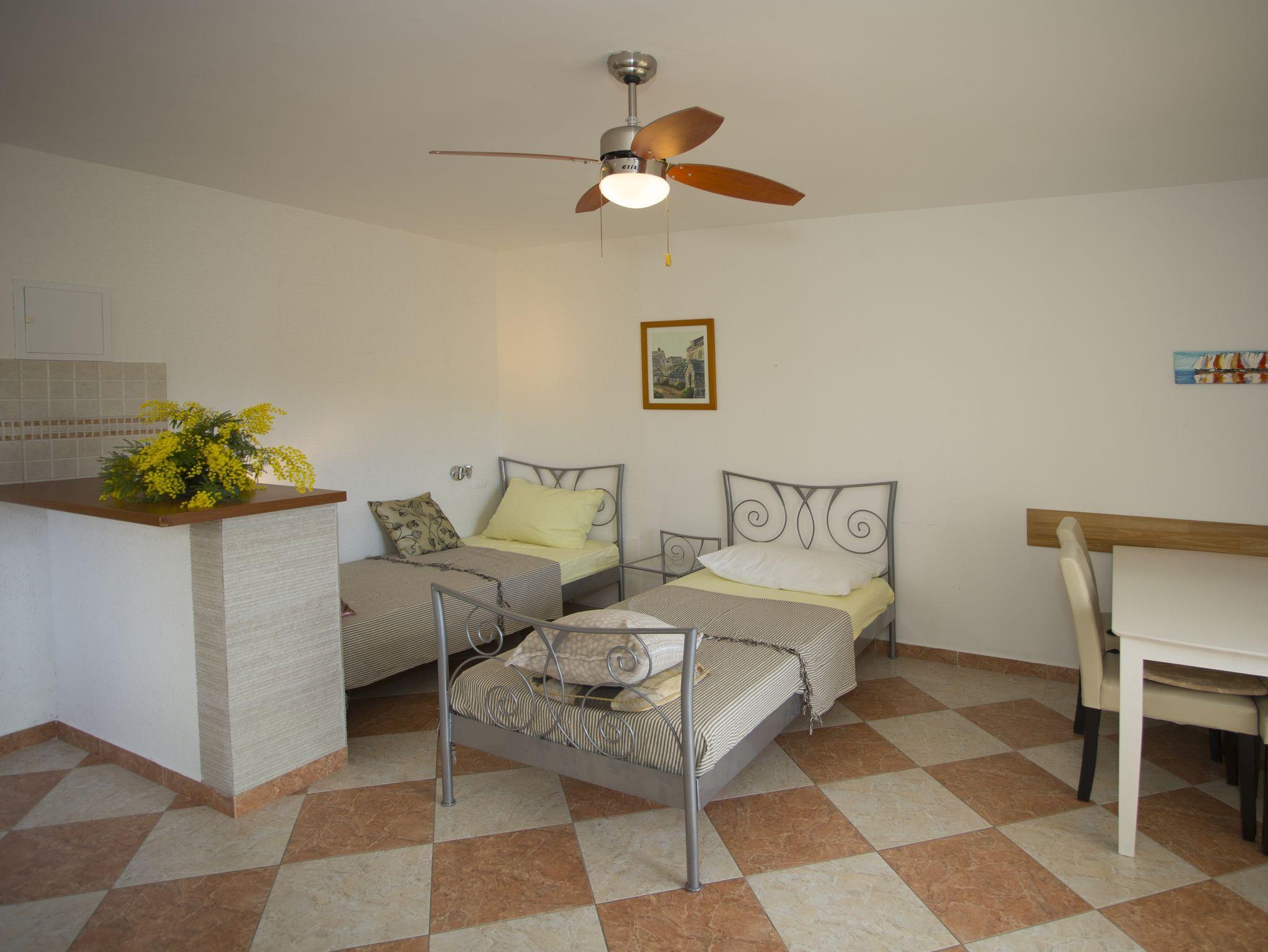 Ferienwohnung bietet Platz für 4 Gäste. Die Betten sind in Schlafzimmern, die es 1 gibt, und in Esszimmer, innerhalb einer Gesamtfläche von 33m2, angeordnet. Die Gäste haben eine eigene Terrasse zur Verfügung, auf der sie in warmen Sommernächten genießen können. Das Apartment bietet Meerblick. Es ist erlaubt, Speisen auf dem Gemeinschafts-Grill vorzubereiten. IM PREIS INBEGRIFFEN: Kurtaxe, Endreinigung, Klimatisierung, Parkplatz, Internet, Kinderbett, Bügeleisen, Bügelbrett, Föhn. VERBINDLICHE ZUSÄTZLICHE KOSTEN: Aufzahlung für Kurzaufenthalte (prozentualer Zuschlag pro Nächtigungsanzahl: 30% - 1, 20% - 2, 10% - 3). UNVERBINDLICHE ZUSÄTZLICHE KOSTEN: Bootsanlegeplatz (10,00 € pro Nacht). Die Verfügbarkeit zusätzlicher Dienstleistungen in Ihrem reservierten Termin und die Preise derselben (falls nicht aufgeführt) müssen im Voraus überprüft werden. Zusätzliche Dienstleistungen die in der Zahlungsaufforderung nicht aufgeführt sind werden direkt beim Vermieter bezahlt, angenommen der Gast nutzt auch diese. Ermäßigung auf den Grundpreis: Gratistag 14=13 (bei einem Aufenthalt von 14 Tagen oder mehr erhalten Sie einen Gratistag für den Aufenthalt bis 31.12.26).