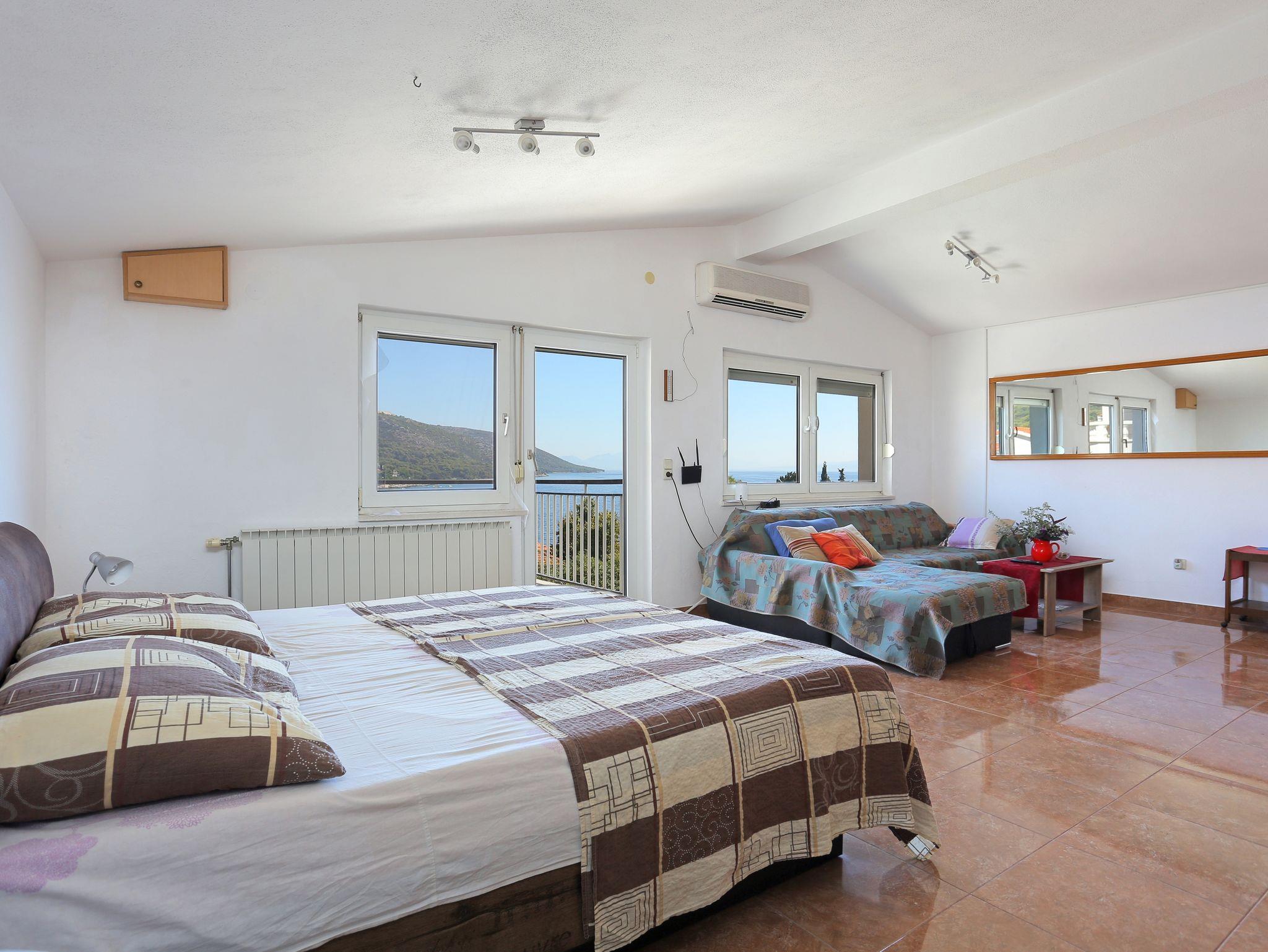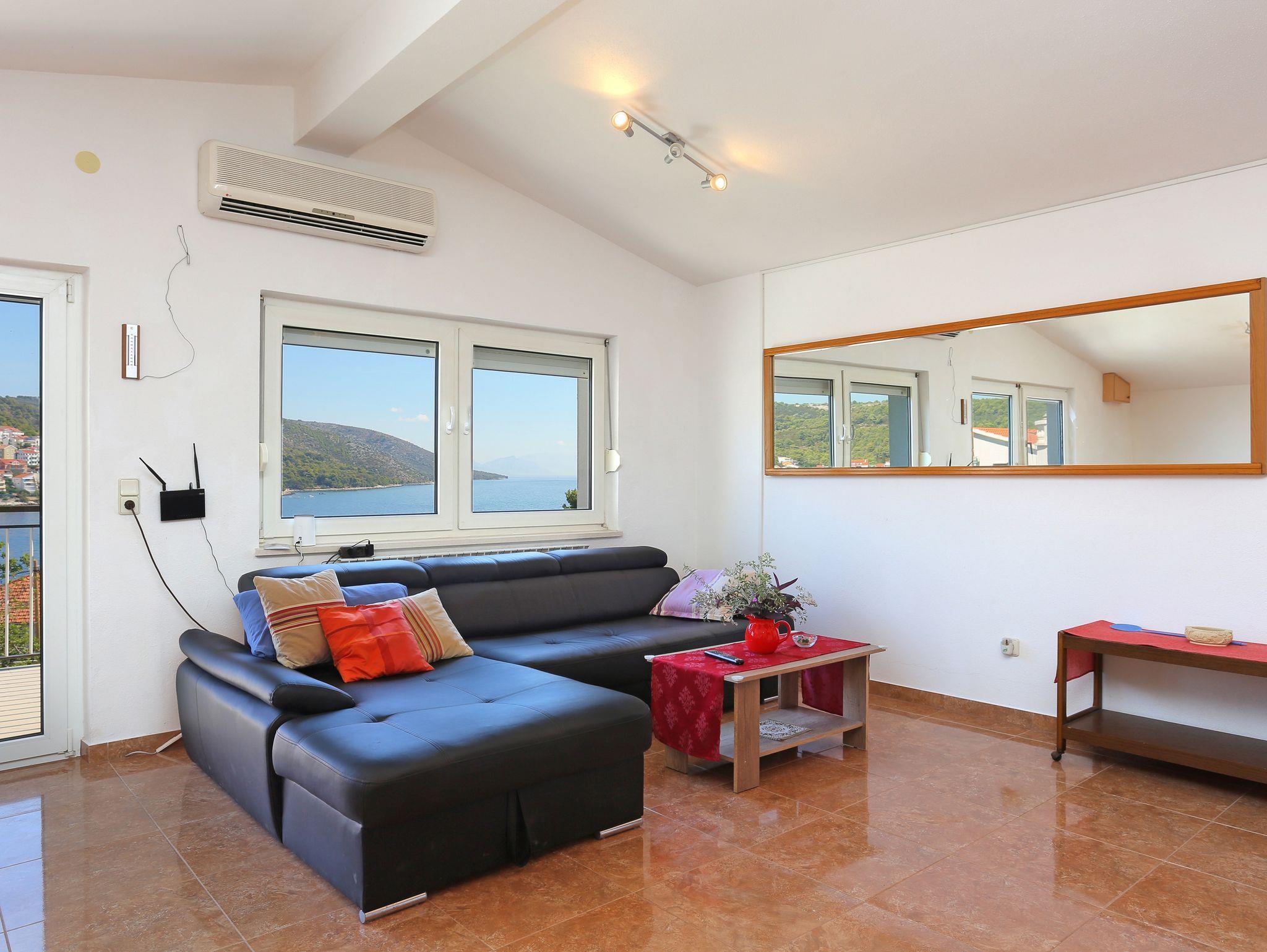 Ferienwohnung bietet Platz für 5 Gäste. Die Betten sind in Schlafzimmern, die es 1 gibt, und in Wohnzimmer, innerhalb einer Gesamtfläche von 60m2, angeordnet. Die Gäste haben eine eigene Terrasse zur Verfügung, auf der sie in warmen Sommernächten genießen können. Das Apartment bietet Meerblick. Es ist erlaubt, Speisen auf dem Gemeinschafts-Grill vorzubereiten. In der Unterkunftseinheit besteht die Möglichkeit des Mitbringens von Haustieren gegen Aufpreis. IM PREIS INBEGRIFFEN: Kurtaxe, Endreinigung, Klimatisierung, Parkplatz, Internet, Zusatzbett, Bügeleisen, Bügelbrett, Föhn, tragbarer Grill. VERBINDLICHE ZUSÄTZLICHE KOSTEN: Aufzahlung für Kurzaufenthalte (prozentualer Zuschlag pro Nächtigungsanzahl: 30% - 1, 20% - 2, 10% - 3). UNVERBINDLICHE ZUSÄTZLICHE KOSTEN: Haustiere (5,00 € pro Nacht). Die Verfügbarkeit zusätzlicher Dienstleistungen in Ihrem reservierten Termin und die Preise derselben (falls nicht aufgeführt) müssen im Voraus überprüft werden. Zusätzliche Dienstleistungen die in der Zahlungsaufforderung nicht aufgeführt sind werden direkt beim Vermieter bezahlt, angenommen der Gast nutzt auch diese.