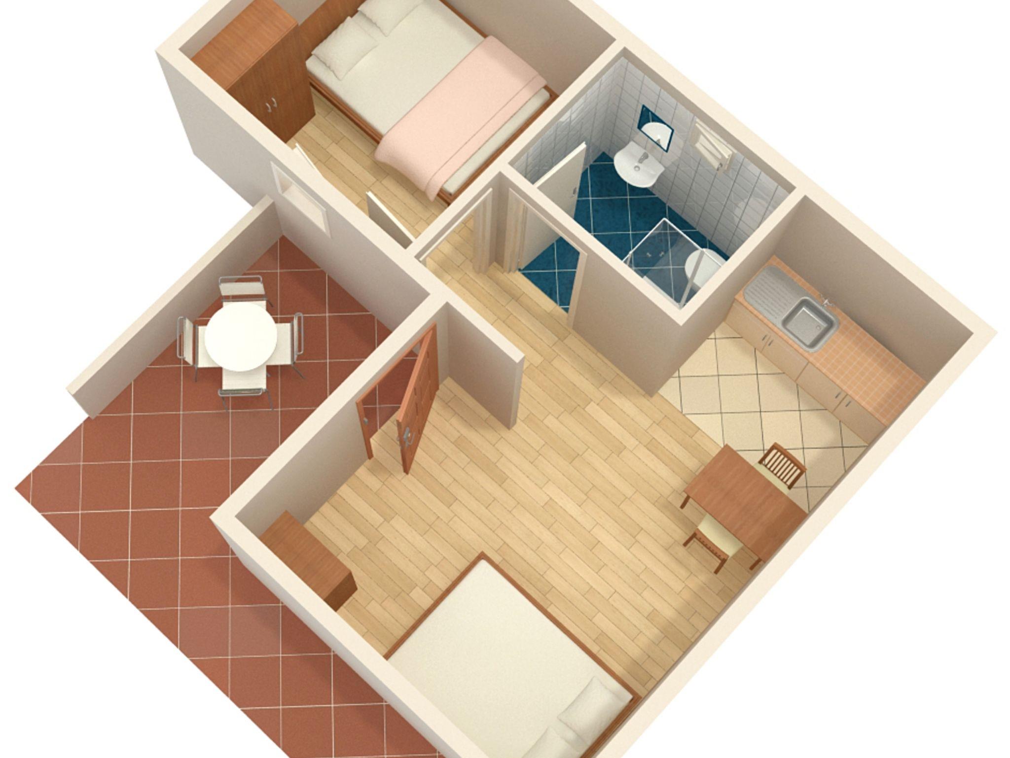 Ferienwohnung bietet Platz für 3 Gäste. Die Betten sind in Schlafzimmern, die es 1 gibt, und in Wohnzimmer, innerhalb einer Gesamtfläche von 21m2, angeordnet. Die Gäste haben eine eigene Terrasse zur Verfügung, auf der sie in warmen Sommernächten genießen können. Es ist erlaubt, Speisen auf dem Gemeinschafts-Grill vorzubereiten. IM PREIS INBEGRIFFEN: Kurtaxe, Endreinigung, Klimatisierung, Parkplatz, Internet, tragbarer Grill. VERBINDLICHE ZUSÄTZLICHE KOSTEN: Aufzahlung für Kurzaufenthalte (prozentualer Zuschlag pro Nächtigungsanzahl: 30% - 1, 20% - 2, 10% - 3). Die Verfügbarkeit zusätzlicher Dienstleistungen in Ihrem reservierten Termin und die Preise derselben (falls nicht aufgeführt) müssen im Voraus überprüft werden. Zusätzliche Dienstleistungen die in der Zahlungsaufforderung nicht aufgeführt sind werden direkt beim Vermieter bezahlt, angenommen der Gast nutzt auch diese.