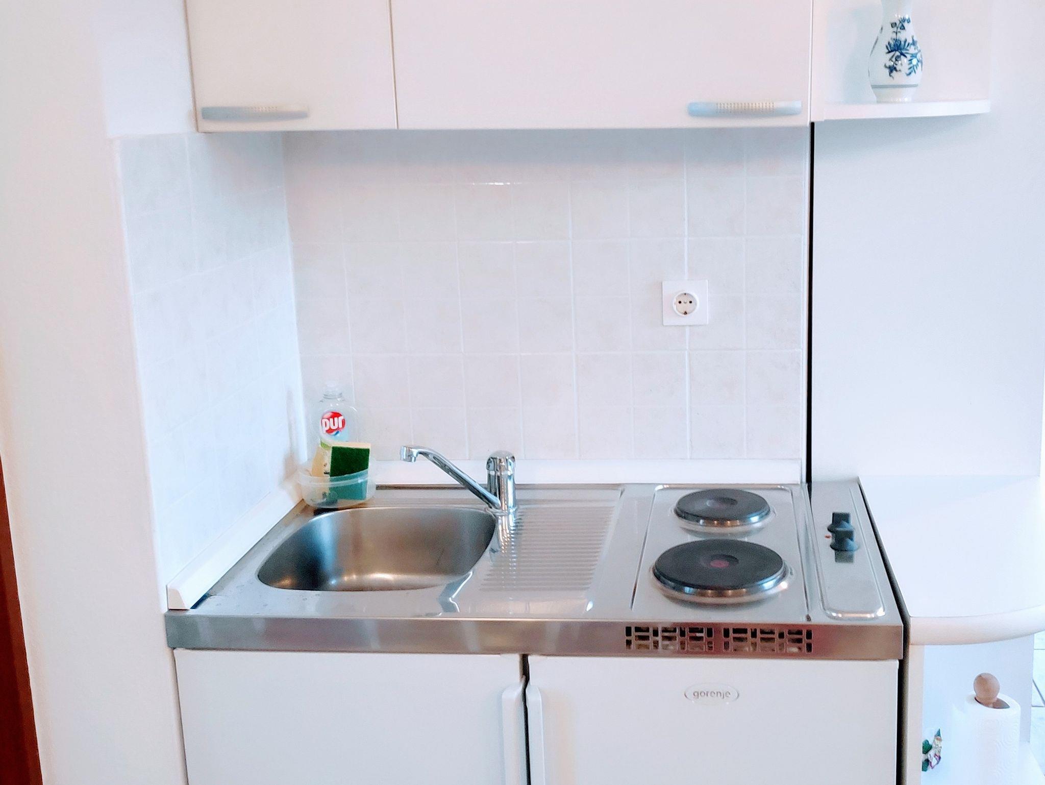 Ferienwohnung bietet Platz für 4 Gäste. Die Betten sind in Schlafzimmern, die es 1 gibt, und in Wohnzimmer, innerhalb einer Gesamtfläche von 27m2, angeordnet. Die Gäste haben eine eigene Terrasse zur Verfügung, auf der sie in warmen Sommernächten genießen können. Das Apartment bietet Meerblick. Es ist erlaubt, Speisen auf dem Gemeinschafts-Grill vorzubereiten. Während ihres Aufenthalts können Gäste das gemeinsam zur Nutzung stehende Schwimmbad benutzen. IM PREIS INBEGRIFFEN: Kurtaxe, Endreinigung, Klimatisierung, Zentralheizung, Pool, Parkplatz, Internet, Kinderbett, Bügeleisen, Bügelbrett, Föhn. Die Verfügbarkeit zusätzlicher Dienstleistungen in Ihrem reservierten Termin und die Preise derselben (falls nicht aufgeführt) müssen im Voraus überprüft werden. Zusätzliche Dienstleistungen die in der Zahlungsaufforderung nicht aufgeführt sind werden direkt beim Vermieter bezahlt, angenommen der Gast nutzt auch diese. Ermäßigung auf den Grundpreis: Gratistag 21=19 (bei einem Aufenthalt von 21 Tagen oder mehr erhalten Sie 2 Gratistage für den Aufenthalt bis 31.12.26).