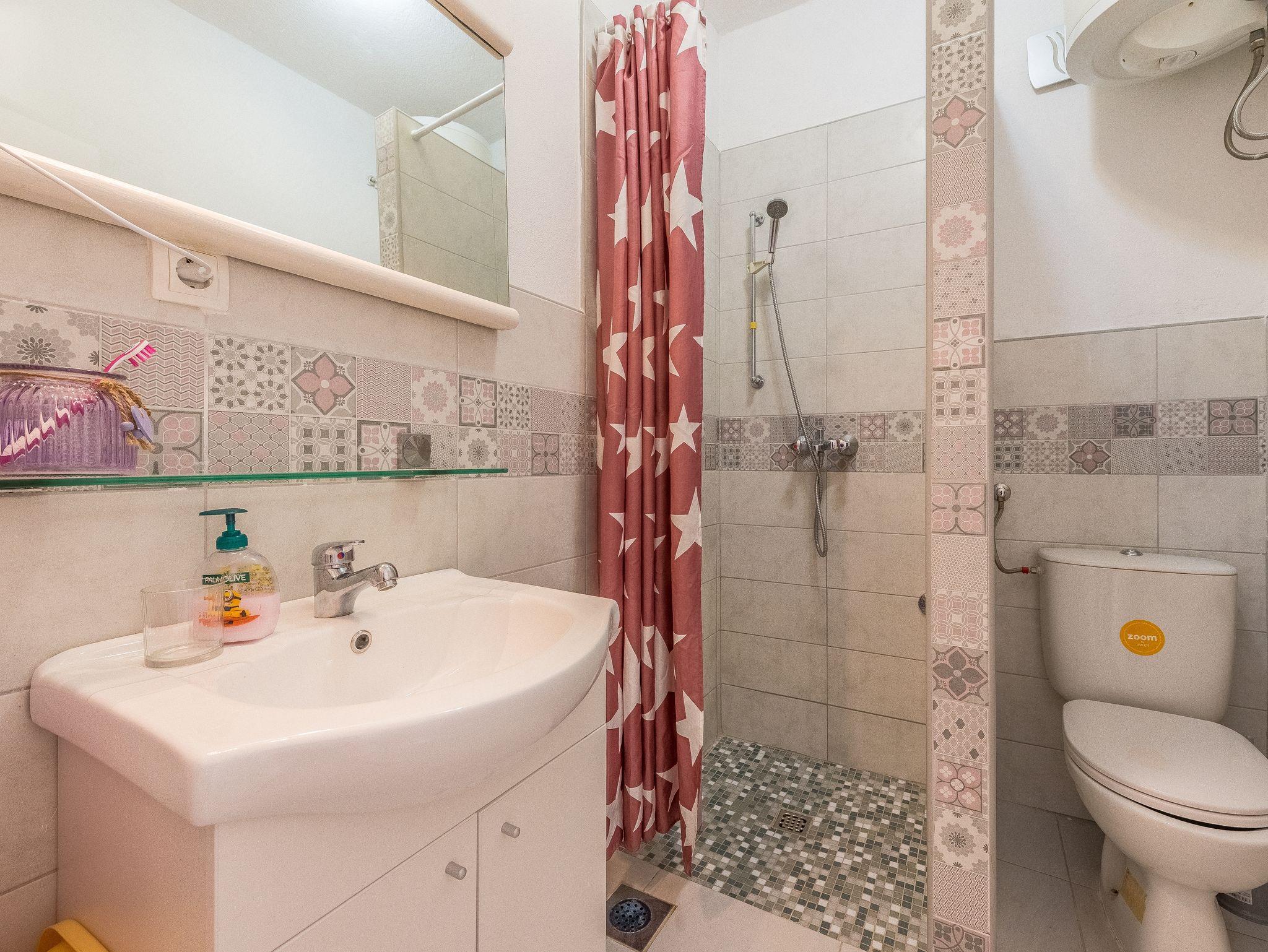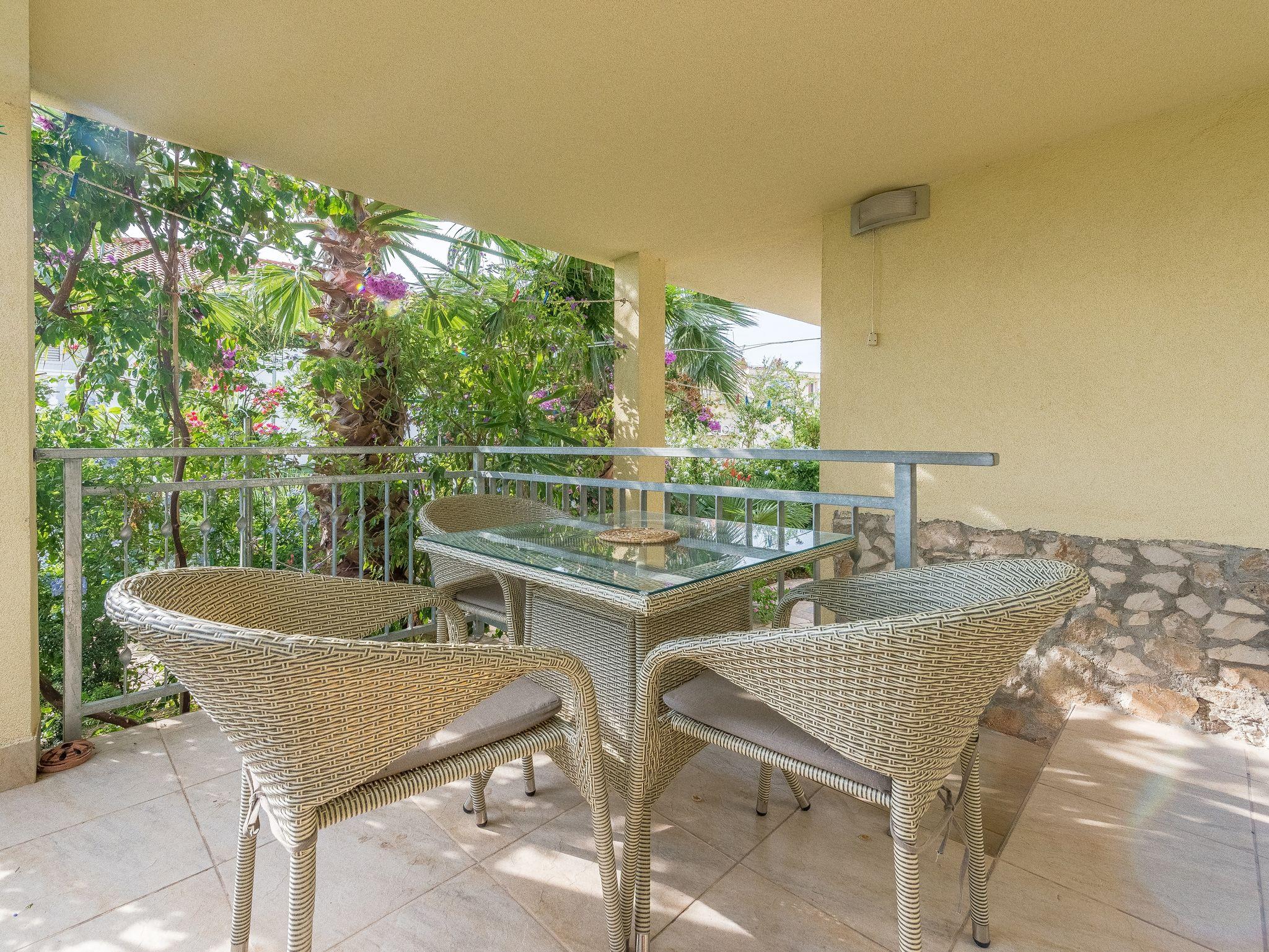 Ferienwohnung bietet Platz für 4 Gäste. Die Betten sind in Schlafzimmern, die es 1 gibt, und in Wohnzimmer, innerhalb einer Gesamtfläche von 29m2, angeordnet. Die Gäste haben eine eigene Terrasse zur Verfügung, auf der sie in warmen Sommernächten genießen können. Das Apartment bietet Meerblick. Es ist erlaubt, Speisen auf dem Gemeinschafts-Grill vorzubereiten. In der Unterkunftseinheit besteht die Möglichkeit des Mitbringens von Haustieren gegen Aufpreis. IM PREIS INBEGRIFFEN: Kurtaxe, Endreinigung, Klimatisierung, Parkplatz, Internet, Wäschewaschen, Bügeleisen, Bügelbrett, Föhn. VERBINDLICHE ZUSÄTZLICHE KOSTEN: Aufzahlung für Kurzaufenthalte (prozentualer Zuschlag pro Nächtigungsanzahl: 30% - 1, 20% - 2, 10% - 3). UNVERBINDLICHE ZUSÄTZLICHE KOSTEN: Haustiere (7,00 € pro Nacht). Die Verfügbarkeit zusätzlicher Dienstleistungen in Ihrem reservierten Termin und die Preise derselben (falls nicht aufgeführt) müssen im Voraus überprüft werden. Zusätzliche Dienstleistungen die in der Zahlungsaufforderung nicht aufgeführt sind werden direkt beim Vermieter bezahlt, angenommen der Gast nutzt auch diese.