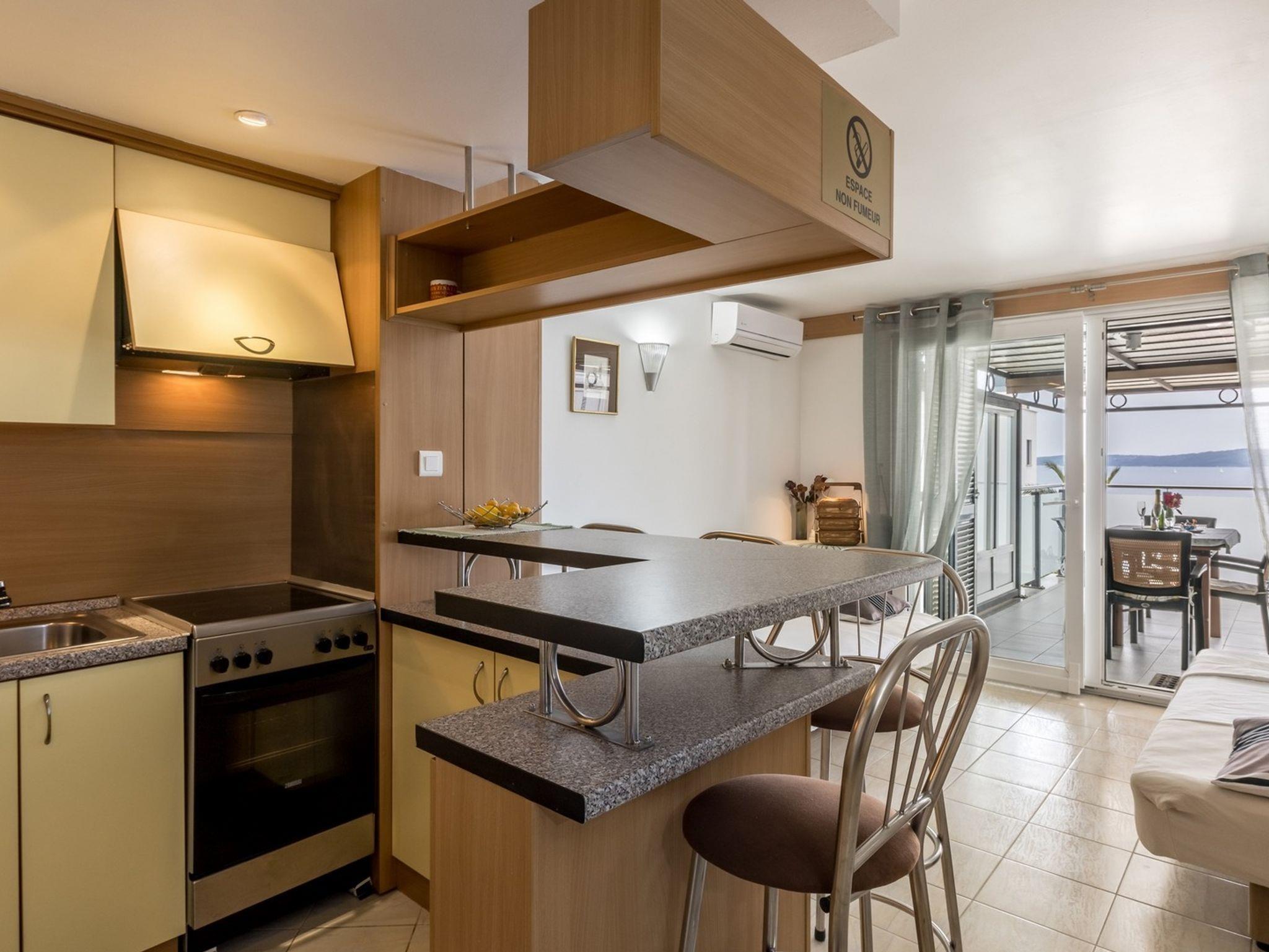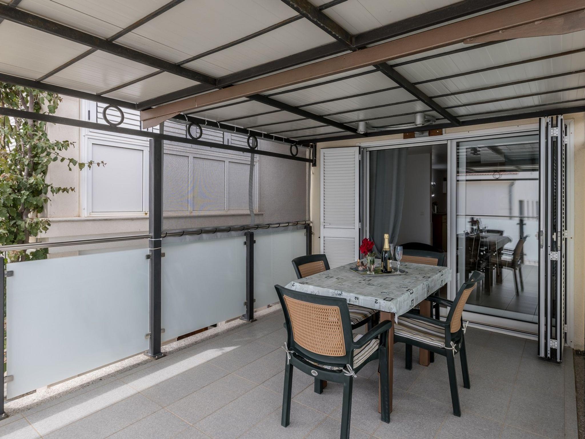 Ferienwohnung bietet Platz für 4 Gäste. Die Betten sind in Schlafzimmern, die es 1 gibt, und in Wohnzimmer, innerhalb einer Gesamtfläche von 49m2, angeordnet. Die Gäste haben eine eigene Terrasse zur Verfügung, auf der sie in warmen Sommernächten genießen können. Das Apartment bietet Meerblick. Es ist erlaubt, Speisen auf dem Gemeinschafts-Grill vorzubereiten. IM PREIS INBEGRIFFEN: Kurtaxe, Endreinigung, Klimatisierung, Parkplatz, Internet, Kinderbett, Bügeleisen, Föhn. Die Verfügbarkeit zusätzlicher Dienstleistungen in Ihrem reservierten Termin und die Preise derselben (falls nicht aufgeführt) müssen im Voraus überprüft werden. Zusätzliche Dienstleistungen die in der Zahlungsaufforderung nicht aufgeführt sind werden direkt beim Vermieter bezahlt, angenommen der Gast nutzt auch diese.