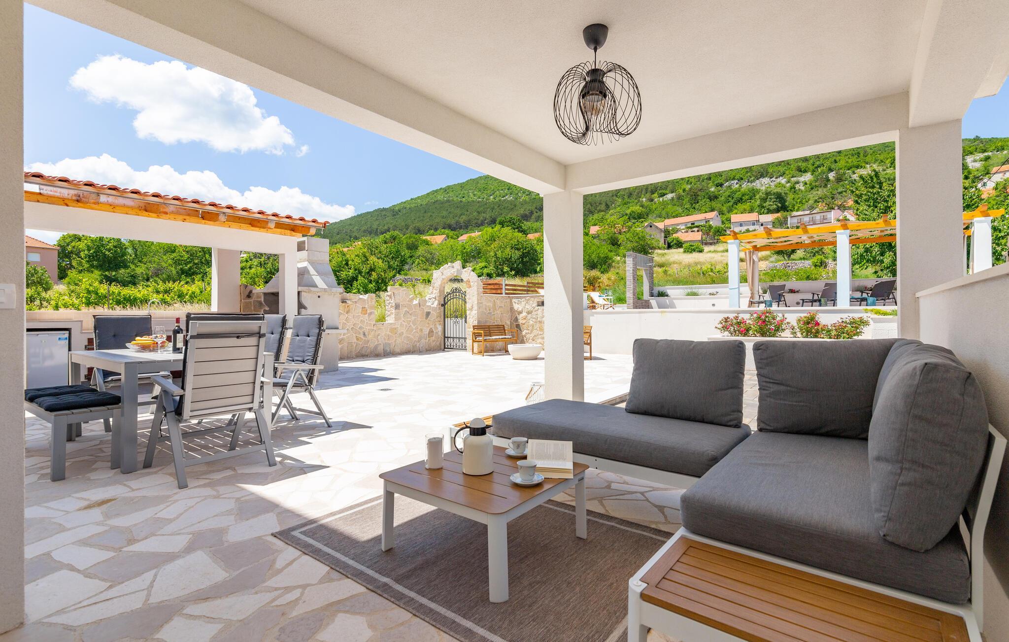 Mit viel Platz für gemeinsame Stunden und einem komfortablen, geschmackvoll eingerichteten Wohnbereich heißt Sie dieses geräumige Ferienhaus willkommen. Zaubern Sie hier kulinarische Highlights, freuen Sie sich auf gesellige Mahlzeiten und entspannen Sie nach einem langen Tag in der Sonne mit einem guten Film auf der einladenden Sofalandschaft.