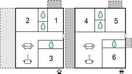 Badezimmer (nr. 6) - WC. Warmes und kaltes Wasser. Dusche