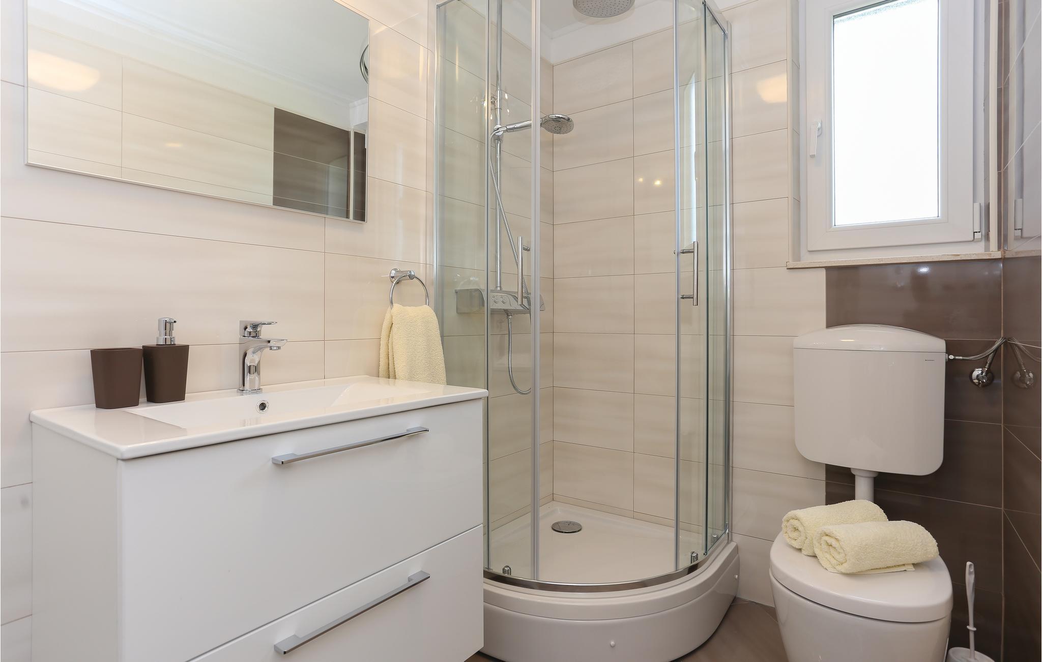 Badezimmer (nr. 2) - WC. Warmes und kaltes Wasser. Dusche