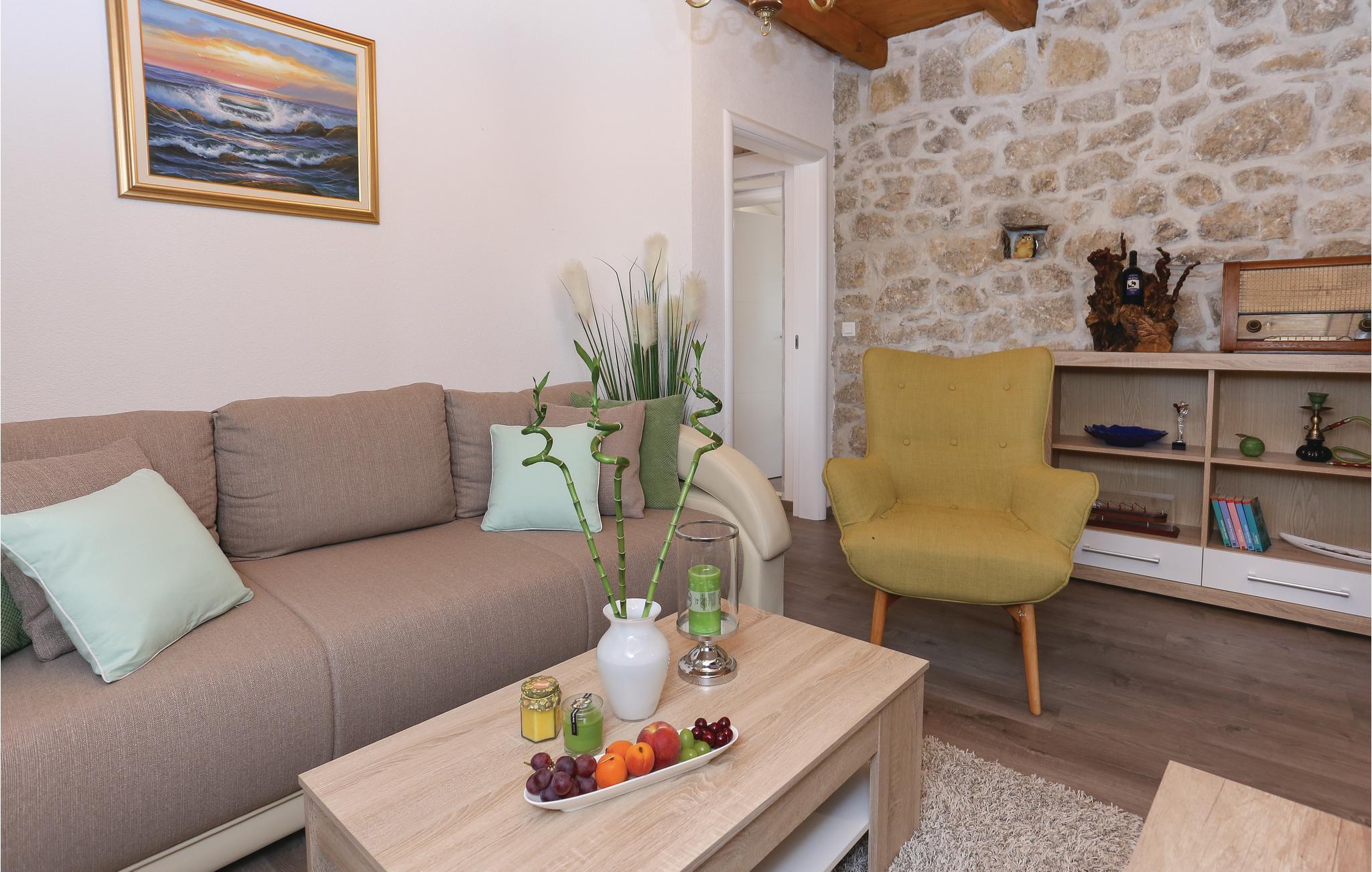 Wunderbares und restauriertes Steinhaus liegt im Ort Gata, am Fuße des Berges Mosor, vom dem sich eine schöne Aussicht auf die Naturlandschaft vom Omiš`s Hinterland bietet. Es besteht aus zwei Etagen, die über Außentreppen zugänglich sind und während im Erdgeschoss ein einfaches Apartment mit einem Schlafzimmer ist, befindet sich eine komfortable Wohnung mit zwei Schlafzimmern im ersten Stock. Im Garten dominieren ein großer Swimmingpool und ein Pavillon mit Grill wo Sie abends beim guten Glas Wein fantastisch entspannen können. In der Nähe gibt es einen Wanderweg und überhaupt werden viele Freizeitmöglichkeiten wie Radfahren, Rafting, Klettern und Zip-Line in der Umgebung angeboten. In der Antike war der Ort Gata das Zentrum der Poljicka Republik, von der zahlreiche Denkmäler im historischen Museum von Gata aufbewahrt werden.
