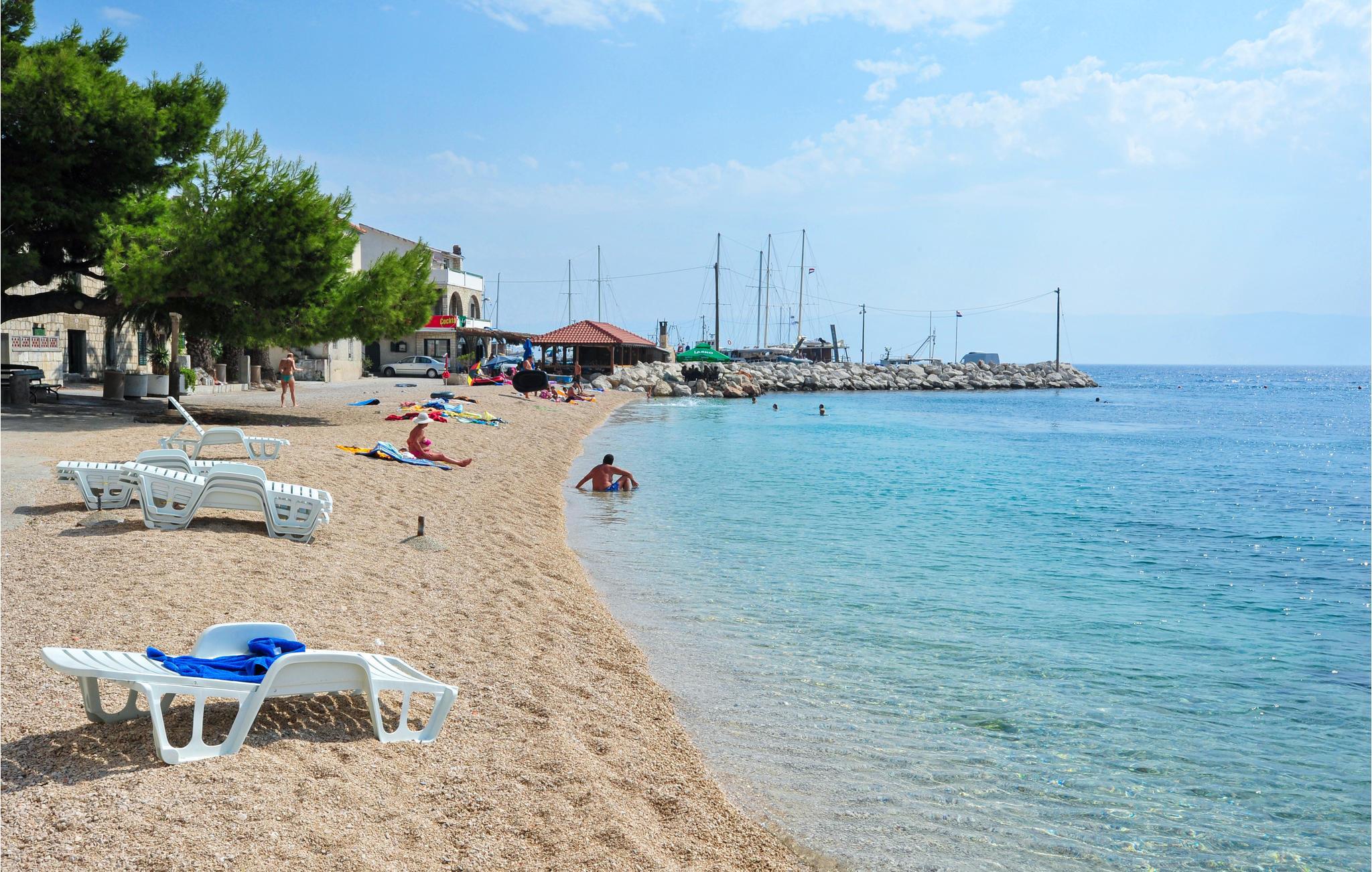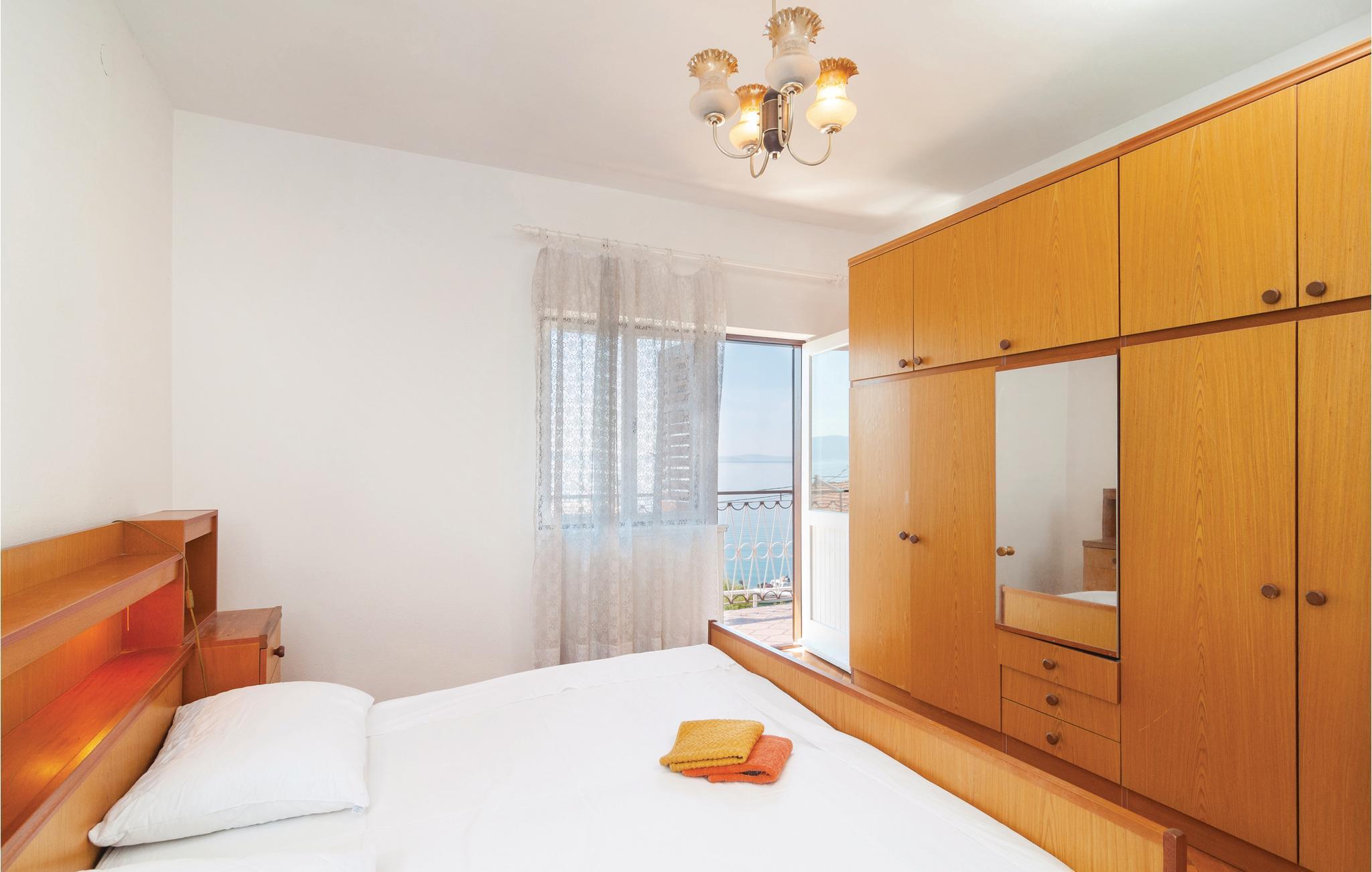 Diese einfach eingerichtete Ferienwohnung im ersten Stock verfügt über zwei Schlafzimmer mit Ausgang auf den Balkon, mit herrlichem Ausblick aufs Meer. Auf dem anderen größeren Balkon am Eingang können Sie gesellige Stunden verbringen. Der Fußweg zum Strand führt teilweise über Treppen und einen kleinen Tunnel, um die befahrene Küstenstraße nicht überqueren zu müssen. In den nächstgelegenen Orten Omis und Split können Sie Ihren Urlaub mit zahlreichen kulturellen und unterhaltsamen Angeboten vollkommen machen.