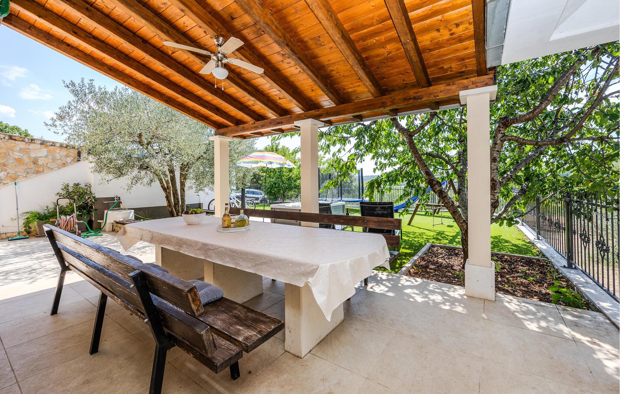 Im dalmatinischen Hinterland befindet sich dieses nette Ferienhaus umgeben von viel Natur. Es liegt im kleinen Dorf Katuni bei Kreševo und verfügt über zwei Etagen. Im Erdgeschoss sind Küche, Wohnzimmer und die Außenterrasse mit Grill, während im Obergeschoss drei Schlafzimmer, ein Badezimmer und eine Terrasse sind. Vom der Terrasse bietet sich eine schöne Aussicht auf die ländliche Umgebung. Im gepflegten Garten erwartet Sie ein Whirlpool, der für Entspannung sorgt und für Kinder stehen Schaukel und Rutsche zum Spielen bereit. Im Garten nebenan können Sie Gemüse der Saison probieren. Die nächsten Strände finden Sie in den Küstenorten Brela, Makarska und Omiš.