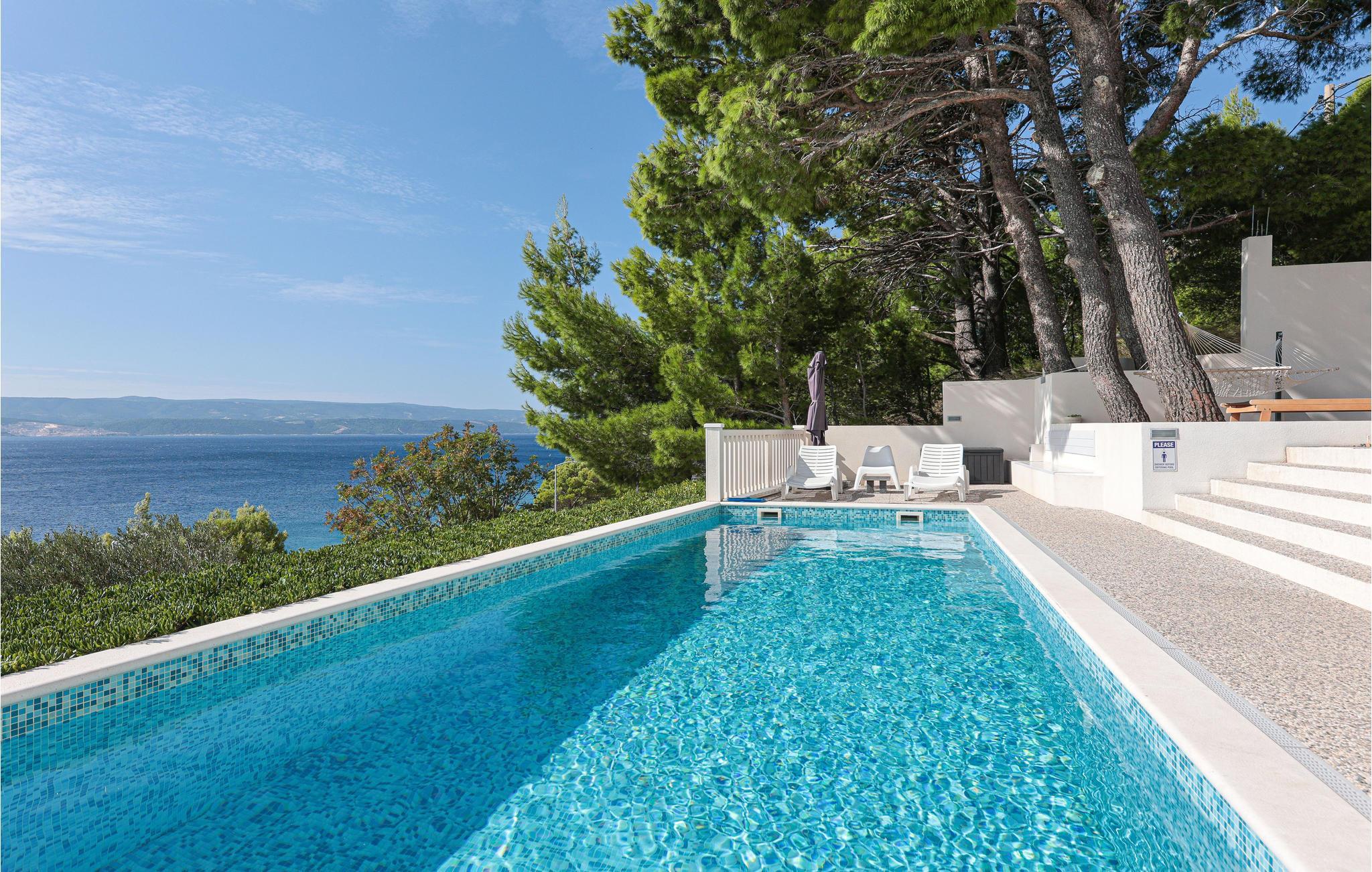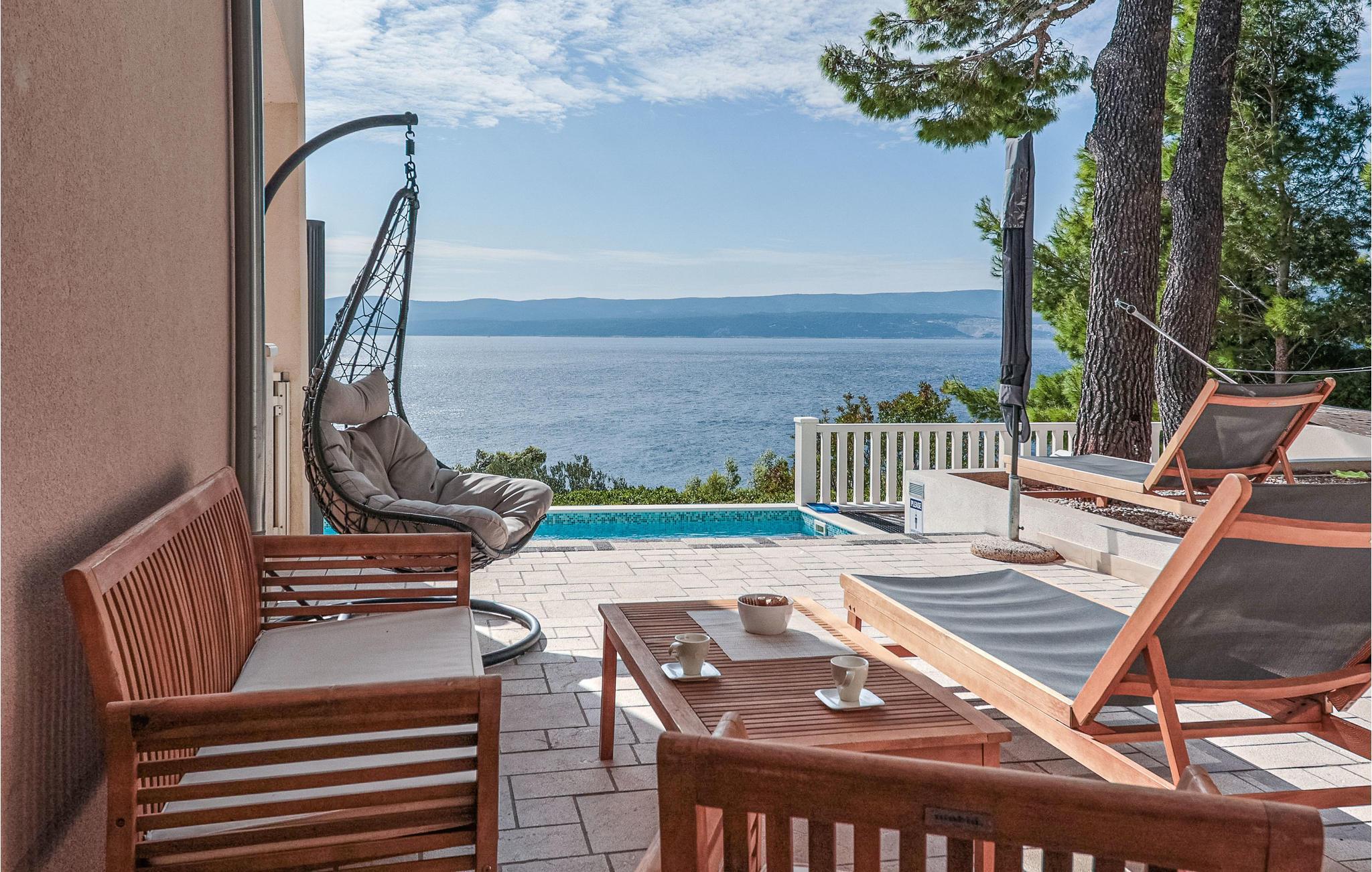 Diese Wohnung ist speziell für Familien mit Haustieren und Kindern geeignet. Sie können Ihre Kleinen hier am privaten und beheiztem Pool im Wasser planschen lassen und den Panoramablick auf das Meer genießen. Auf der Terasse befinden sich ebenso ein Fitnessbereich und zwei Kamine, an denen Sie am Abend entspannt die köstlichen Ingridientien der kroatischen Küche zubereiten und verspeisen können. Ihre Kinder können sich weiterhin mit dem Spielzeug, am Basketballplatz oder Volleyballnetz vergnügen. Das anliegende 150m2 große Grundstück bietet Platz genug. Im Inneren des Hauses können Sie sich durch die mit Klimaanlage ausgestatteten Räume ebenso gut von morgens bis abends aufhalten.