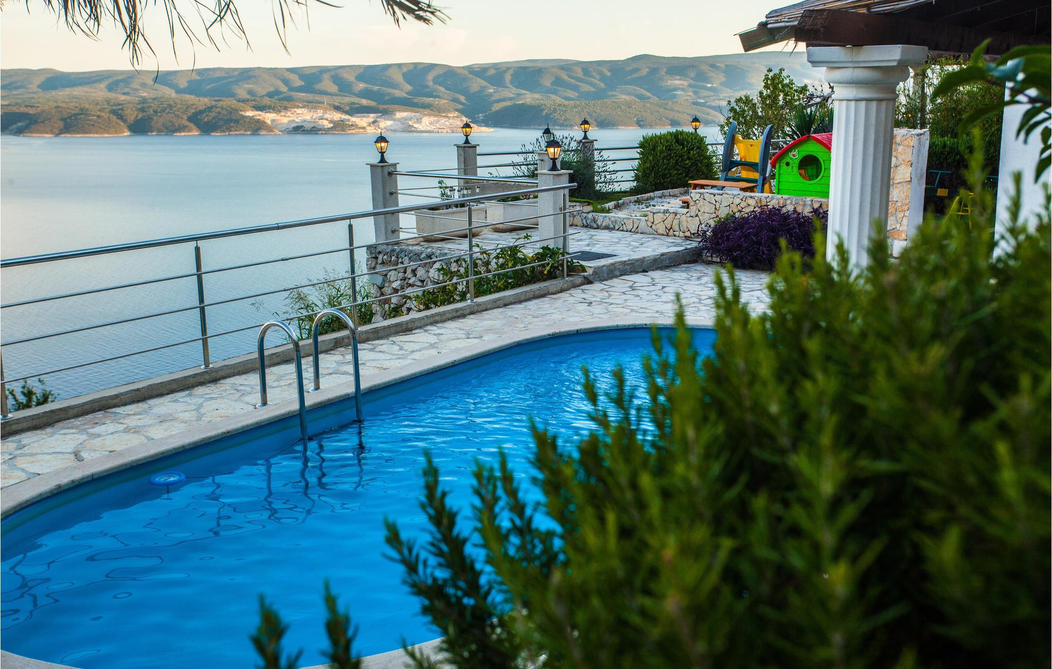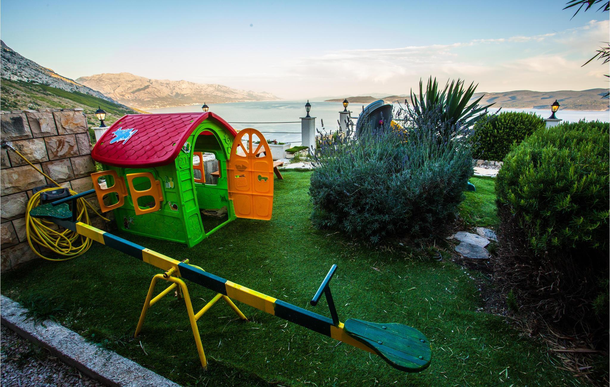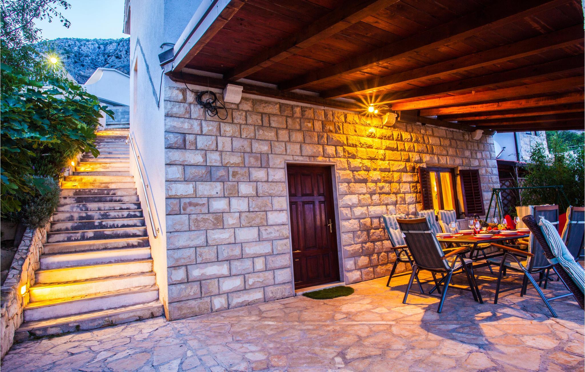 Dieses funktionell eingerichtete Ferienhaus befindet sich auf einer Anhöhe und in naturnaher Umgebung. Vom Küchen- und Wohnbereich im Erdgeschoss geht es über die Innentreppe zu den Schlafzimmern im 1. Stock. Der 2. Stock, erreichbar mit Außentreppe, beherbergt zwei separate Einheiten mit jeweiligen Badezimmer und jeweils einer Küche. Vom Wohnzimmer gelangen Sie auf die teils überdachte Terrasse. Umgeben von Natur können Sie von gestresstem Alltag entspannen und den traumhaften Panoramablick auf das Meer genießen. Besuchen Sie die ehemalige Piratenstadt Omis und lernen Sie ihre Geschichte kennen. Das reiche Freizeitangebot lädt auch Abenteuerbegeisterte zum Besuch ein.