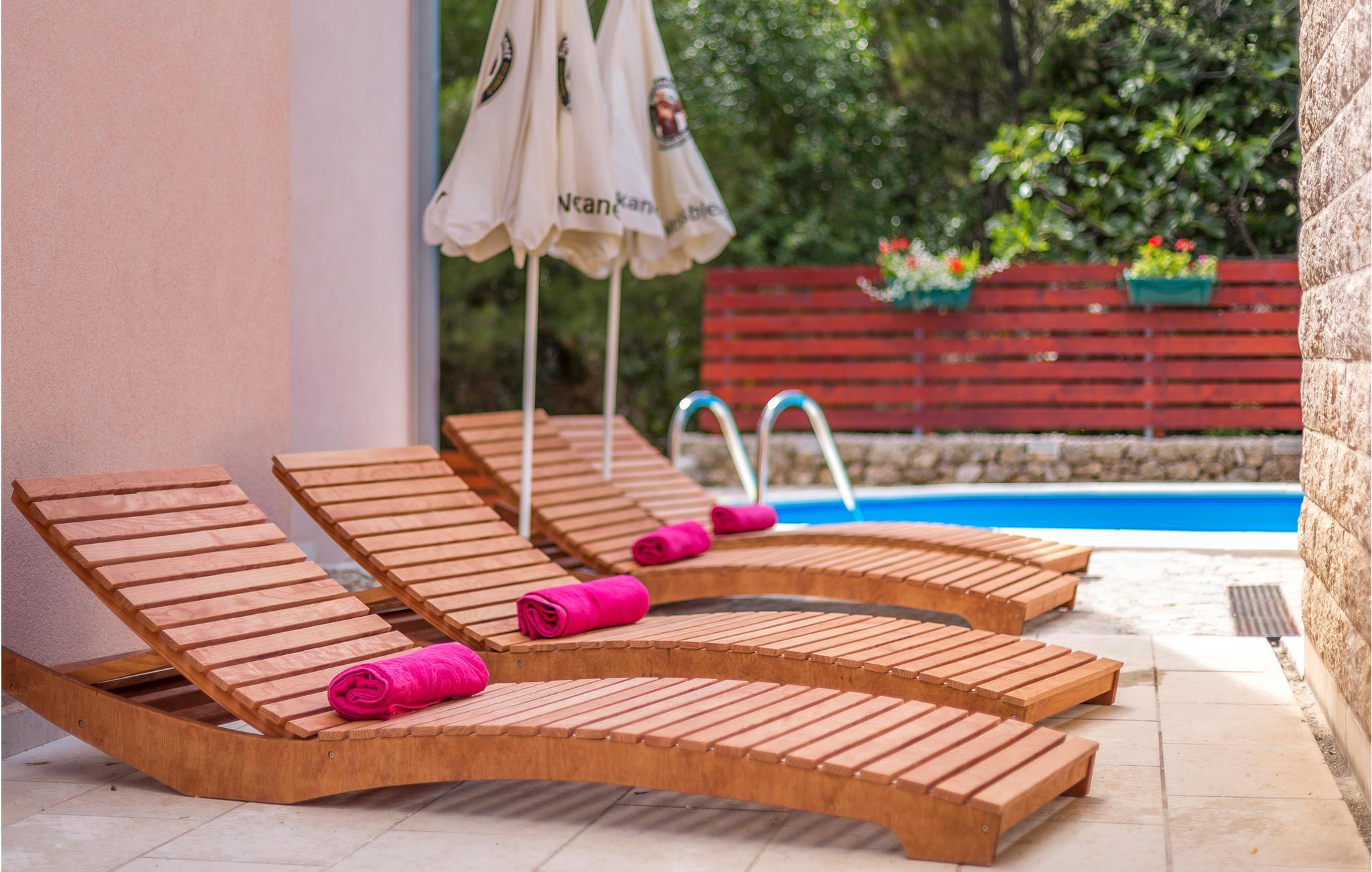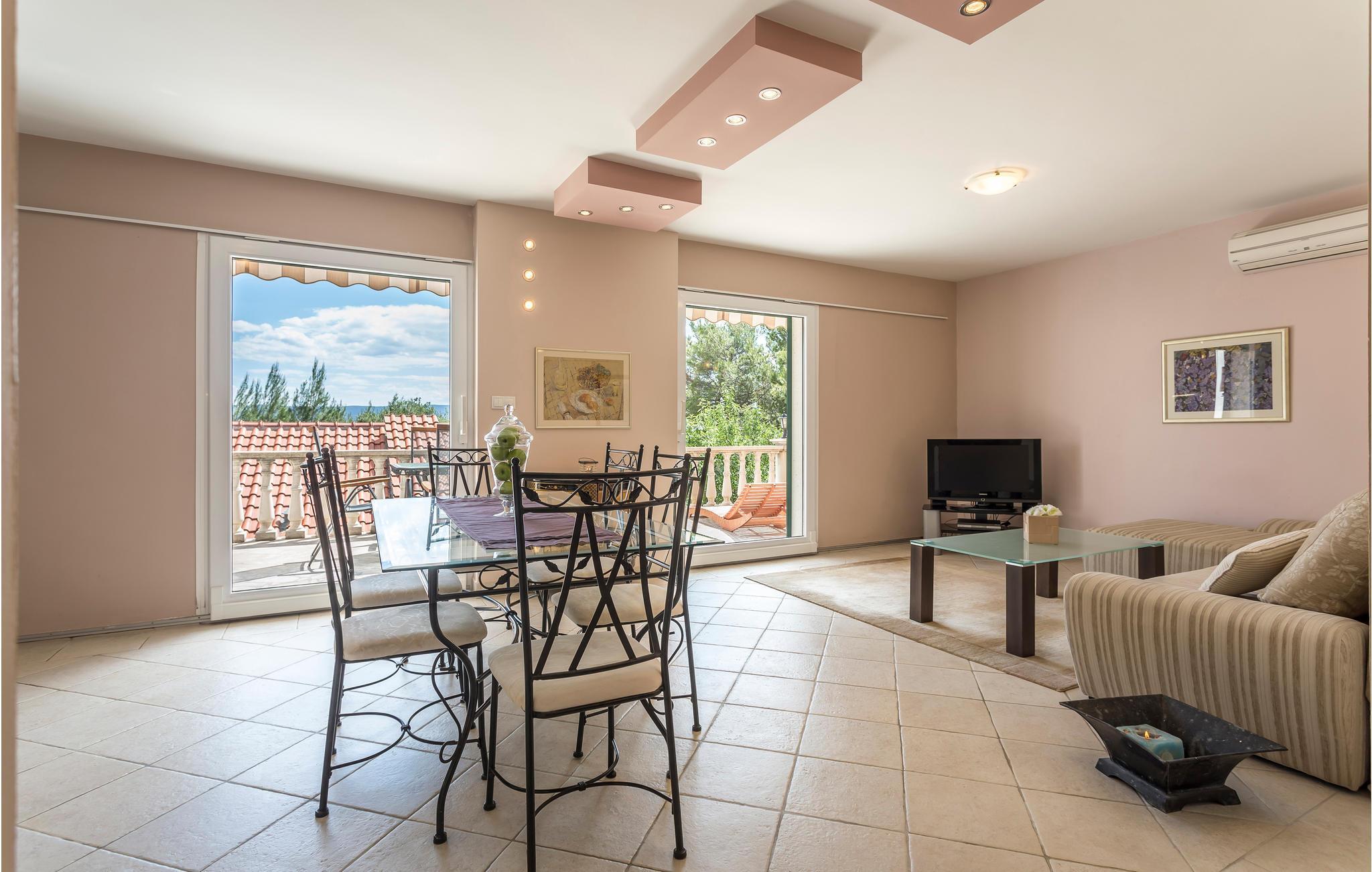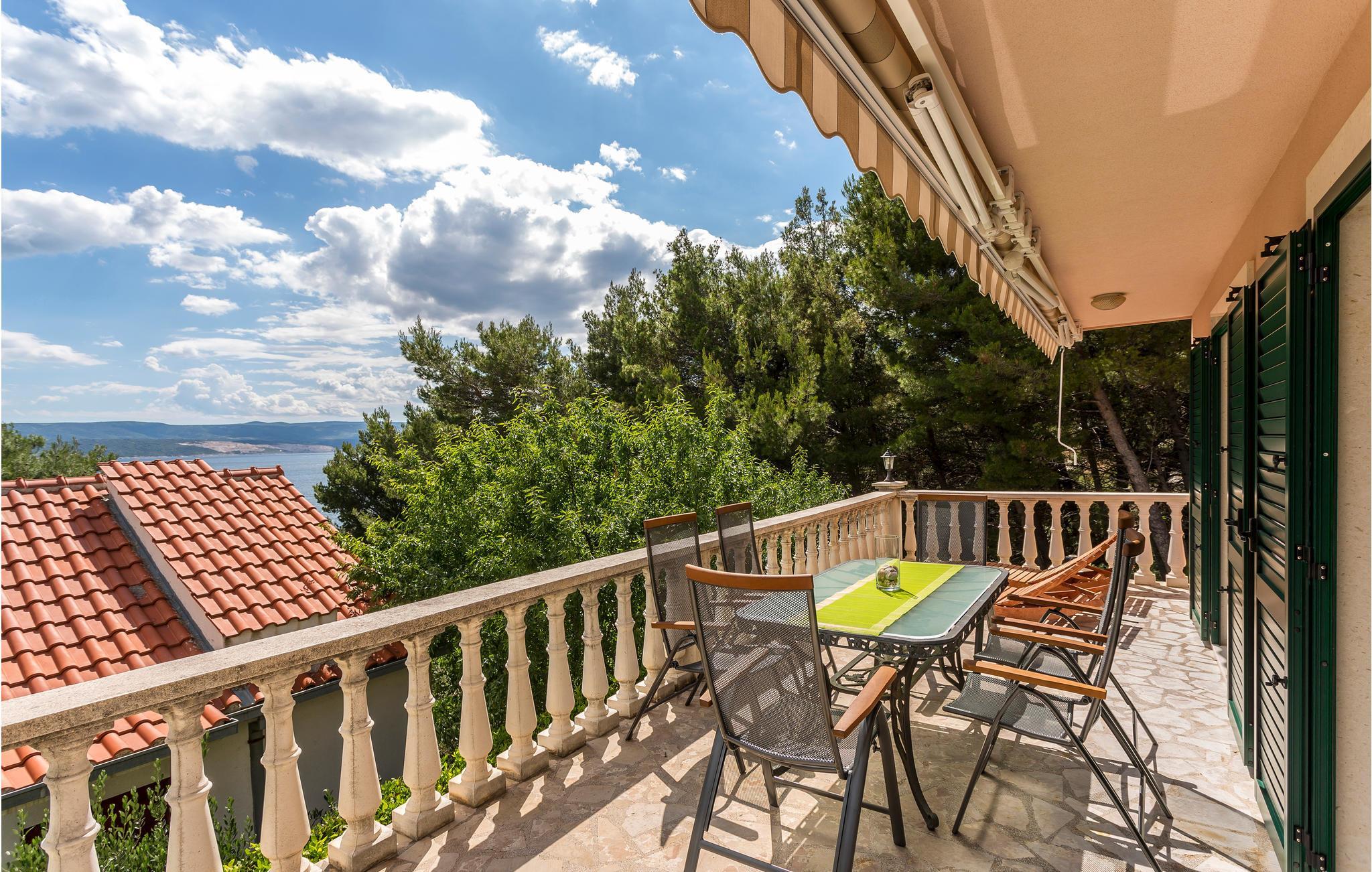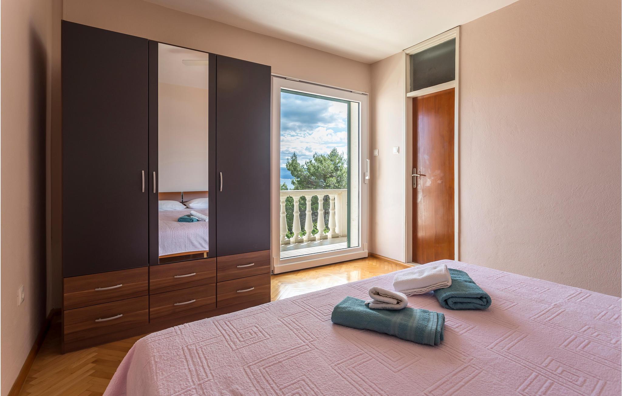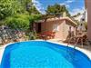 In der hügeligen Umgebung des kleinen Ortes Medic, in zweiter Reihe zum Meer, erwartet Sie dieses Ferienhaus. Es besteht aus zwei Etagen mit Innentreppen. Im ersten Stock sind die Küche mit Wohnzimmer und Ausgang auf die schöne große Terrasse mit Meerblick sowie ein Schlafzimmer mit Bad. Die anderen Schlafzimmer liegen im zweiten Stock mit Ausgang auf einen Balkon. Im 1. Stock, auf nördlicher Seite, befinden sich der Pool und ein Pavillon. Das Erdgeschoß wird vom Hauseigentümer benutzt, der sich zeitweise dort aufhält. Zum Kiesstrand führen kurvenreiche Treppen. Besuchen Sie Omis mit kulturellen und sportlichen Freizeitaktivitäten.