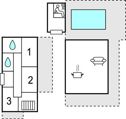 Badezimmer (nr. 3) - WC. Warmes und kaltes Wasser. Dusche