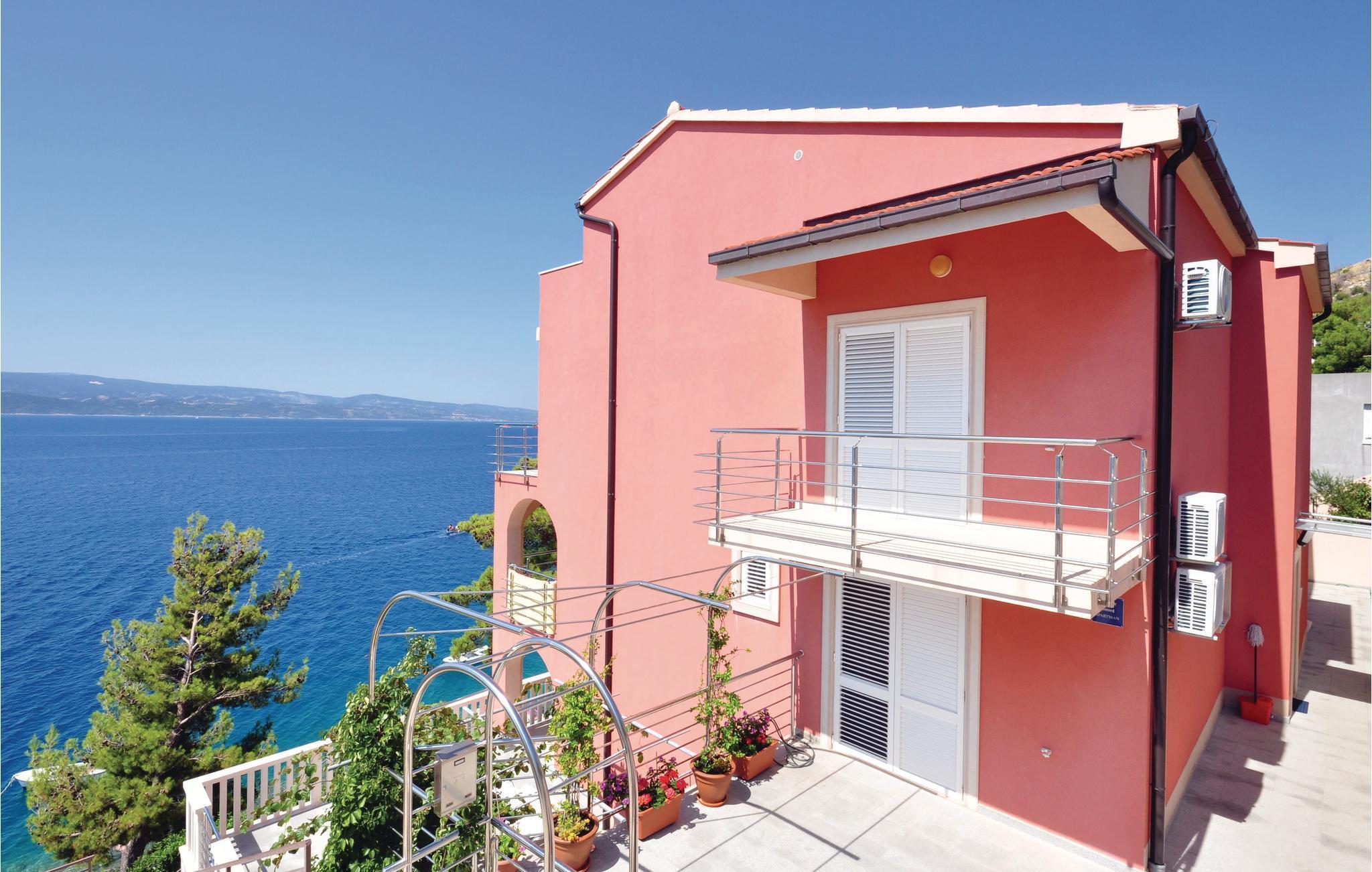 Ein Haus mit mehreren Ferienwohnungen in der Nähe vom Kiesstrand. Die Wohnungen sind komfortabel, geräumig und schön eingerichtet. Die Gäste können ihren Morgenkaffee auf schönen Balkonen genießen, von denen ein herrlicher Panoramablick auf das Meer geboten wird. CDT457, CDT458 und CDT459 liegen im Erdgeschoß, während CDT182, CDT183 und CDT184 im 1. Stock verteilt sind. CDT181 im 2. Stock besitzt eine Mindestdeckenhöhe von 120 cm. Eine 50 m lange Treppe führt zum Haus. Der Parkplatz befindet sich 200 m von der Unterkunft. Wir empfehlen einen Besuch in der Stadt Omis und an ihrem Sandstrand, beides liegt nur 3 km entfernt. Auch die Altstadt von Split, Split ist die größte Stadt Dalmatiens, ist bestimmt sehenswert. Ein kleiner Fitnessraum steht Ihnen zusätzlich zur gemeinsamen Nutzung zur Verfügung.