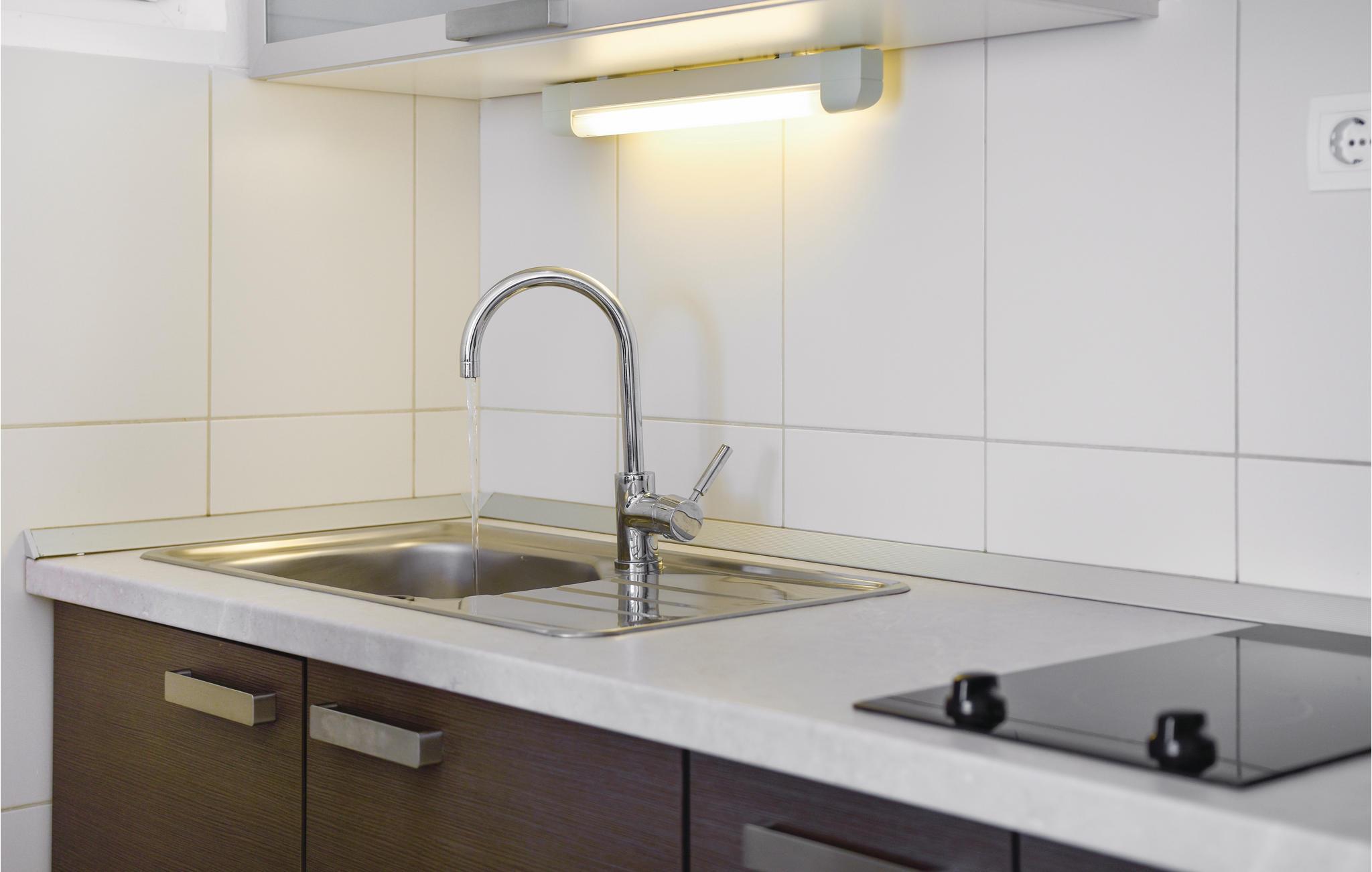 Die Küchenzeile verfügt über heißes Wasser