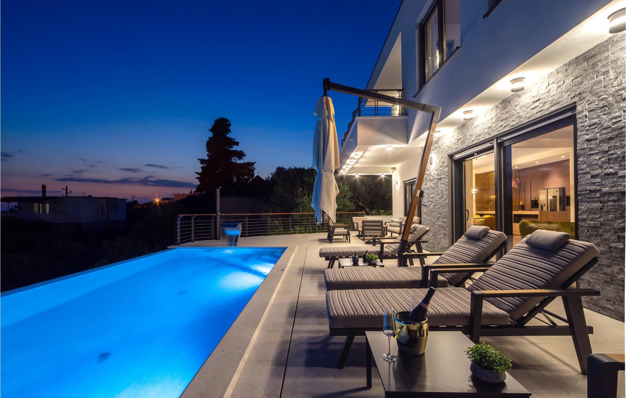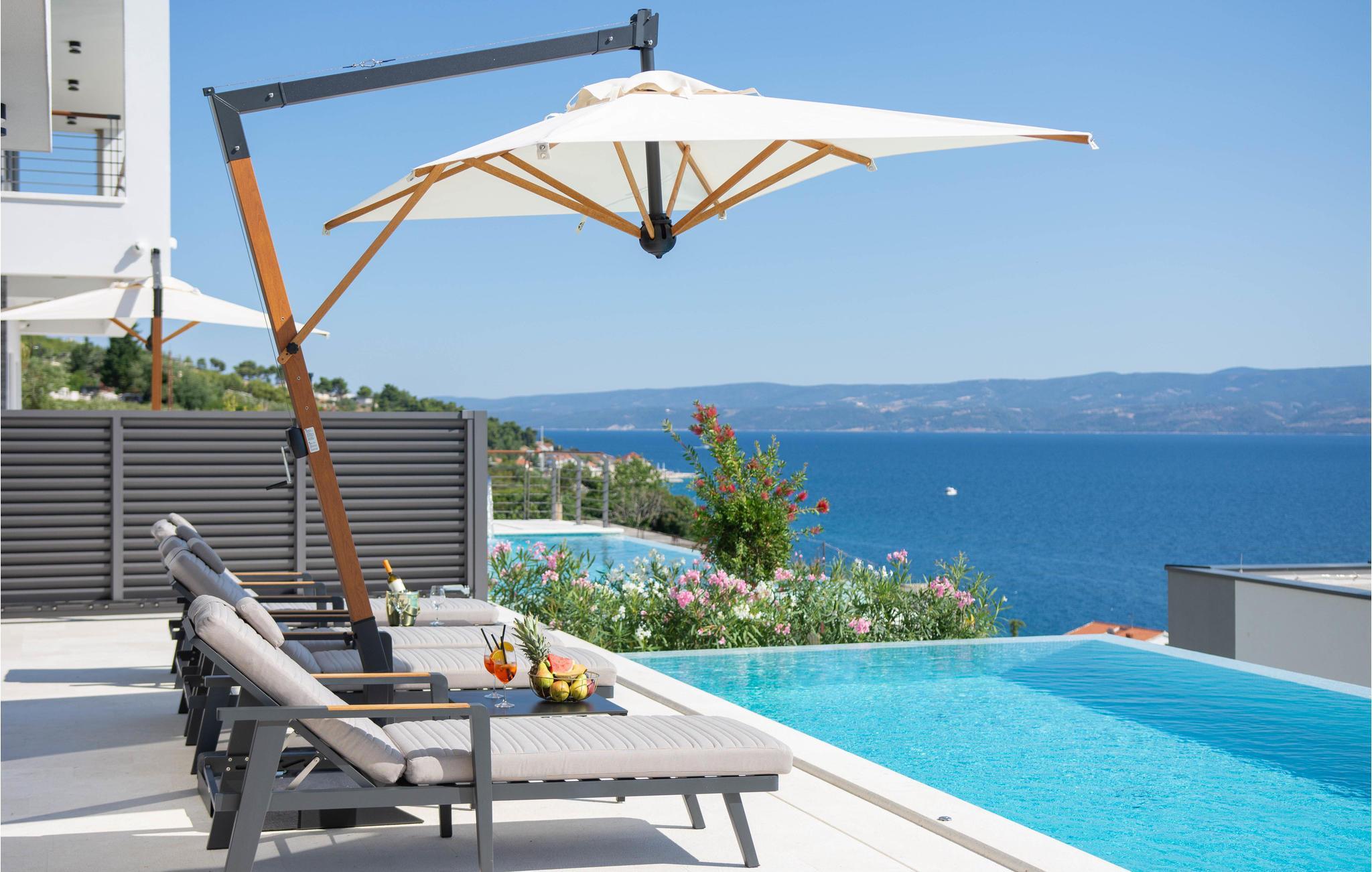 Am Pool mit Meerblick lässt es sich wunderbar in der Sonne entspannen und vom Alltag abschalten. Dank mehrerer Balkone und einer überdachten Terrasse finden Sie immer einen Platz, um die Aussicht oder ein kühles Getränk zu genießen. Springen Sie an heißen Sommertagen in den Pool und genießen Sie die Abkühlung.