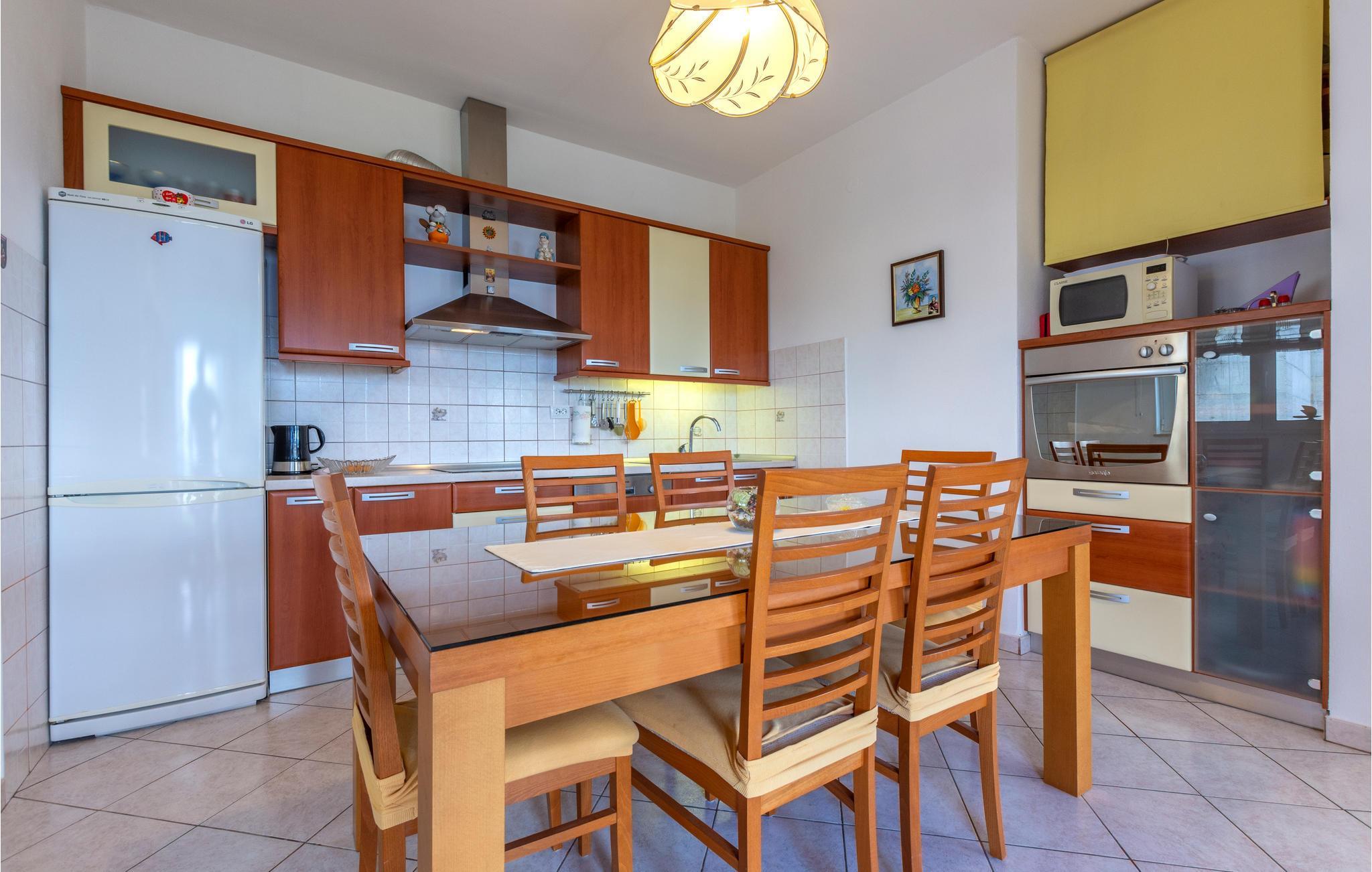 Angenehm eingerichtete Ferienwohnung in hügeliger Lage. Treppen führen Sie hinunter zum Erdgeschoss. Die komfortable und einfach ausgestattete Ferienwohnung bietet eine Wohnfläche von 81 m² und Platz für 6 Personen. Sie eignet sich ideal für einen Familienurlaub. Sie besteht aus zwei Schlafzimmern, einem Badezimmer, einer Küche mit geräumigem Wohnzimmer, aus dem Sie auf die überdachte Terrasse gelangen und wo Sie die Aussicht auf das Meer genießen können.