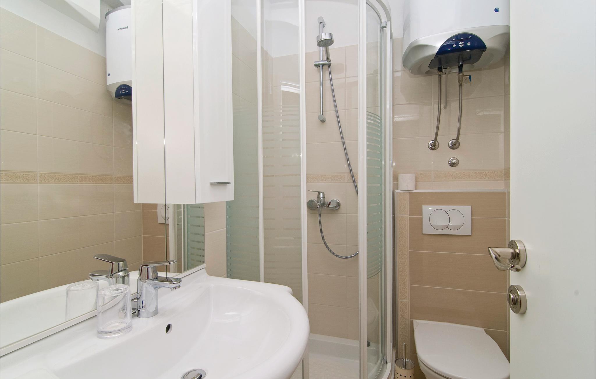 Badezimmer (nr. 2) - WC. Warmes und kaltes Wasser. Dusche