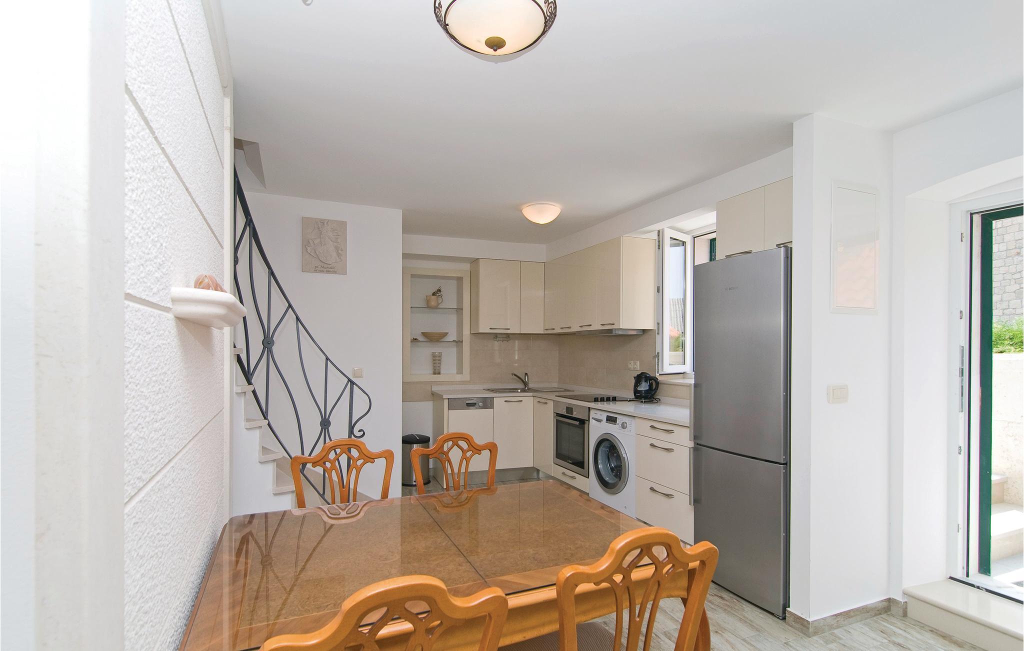 Im Anbau eines Familienhauses befindet sich diese schöne Ferienwohnung mit herrlichem Blick auf die Festung Mirabel und den Fluss Cetina. Sie ist im alten dalmatinischen Stil eingerichtet und erstreckt sich auf zwei Etagen. Im Dachgeschoss, mit der niedrigsten Deckenhöhe von 70 cm, befinden sich die Schlafzimmer und ein Badezimmer. Verbringen Sie gesellige Stunden auf der schönen Terrasse. Nach Absprache mit dem Hauseigentümer können Sie auch die Taverne (auf Kroatisch Konoba) benutzen. Das reiche Unterhaltungsangebot in der Stadt Omis macht Ihren Urlaub vollkommen.