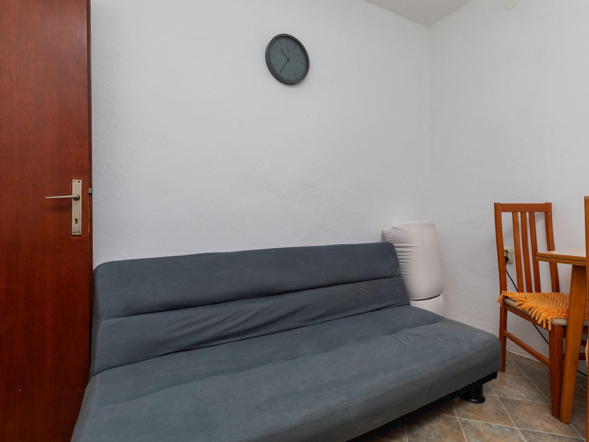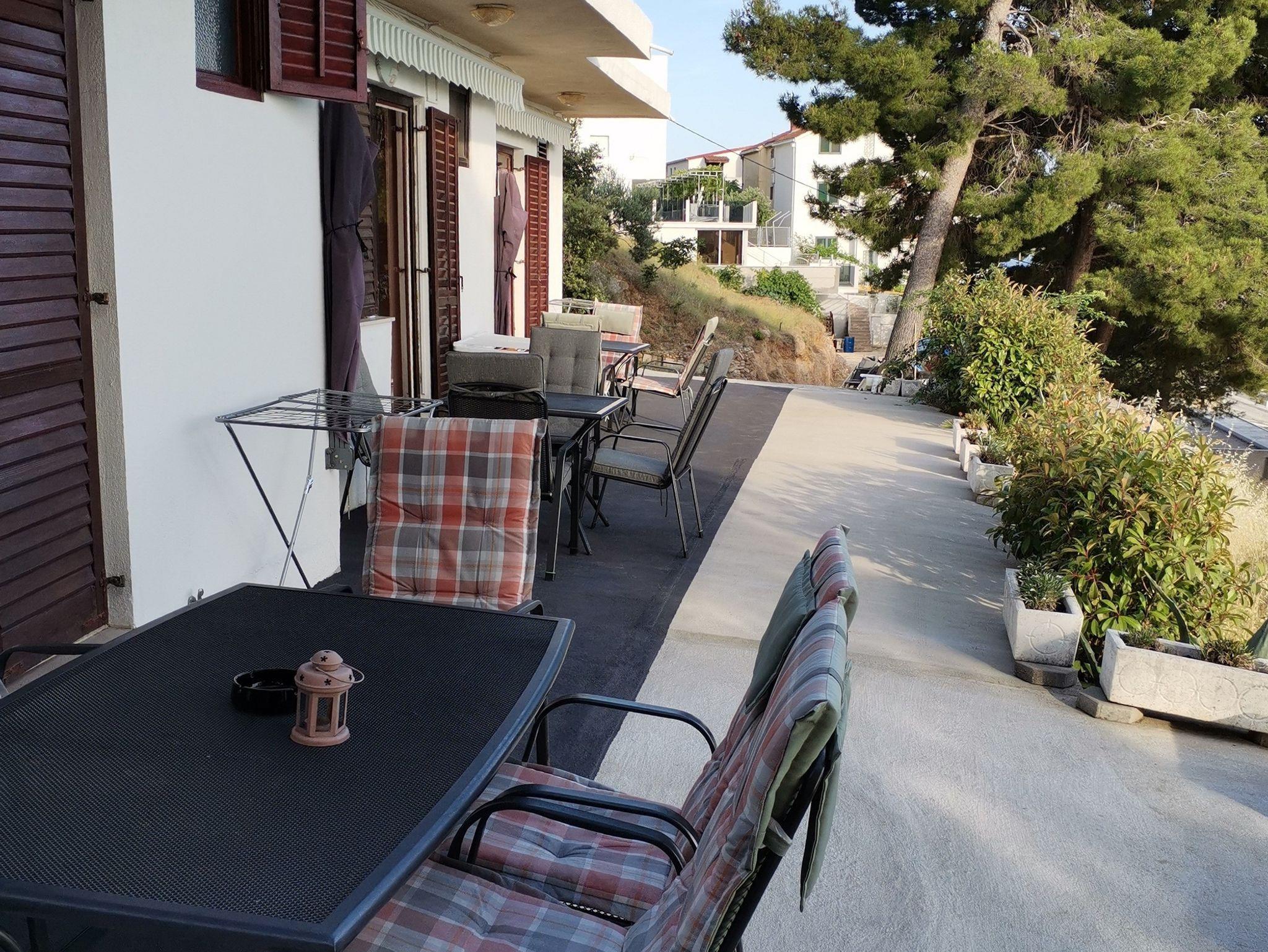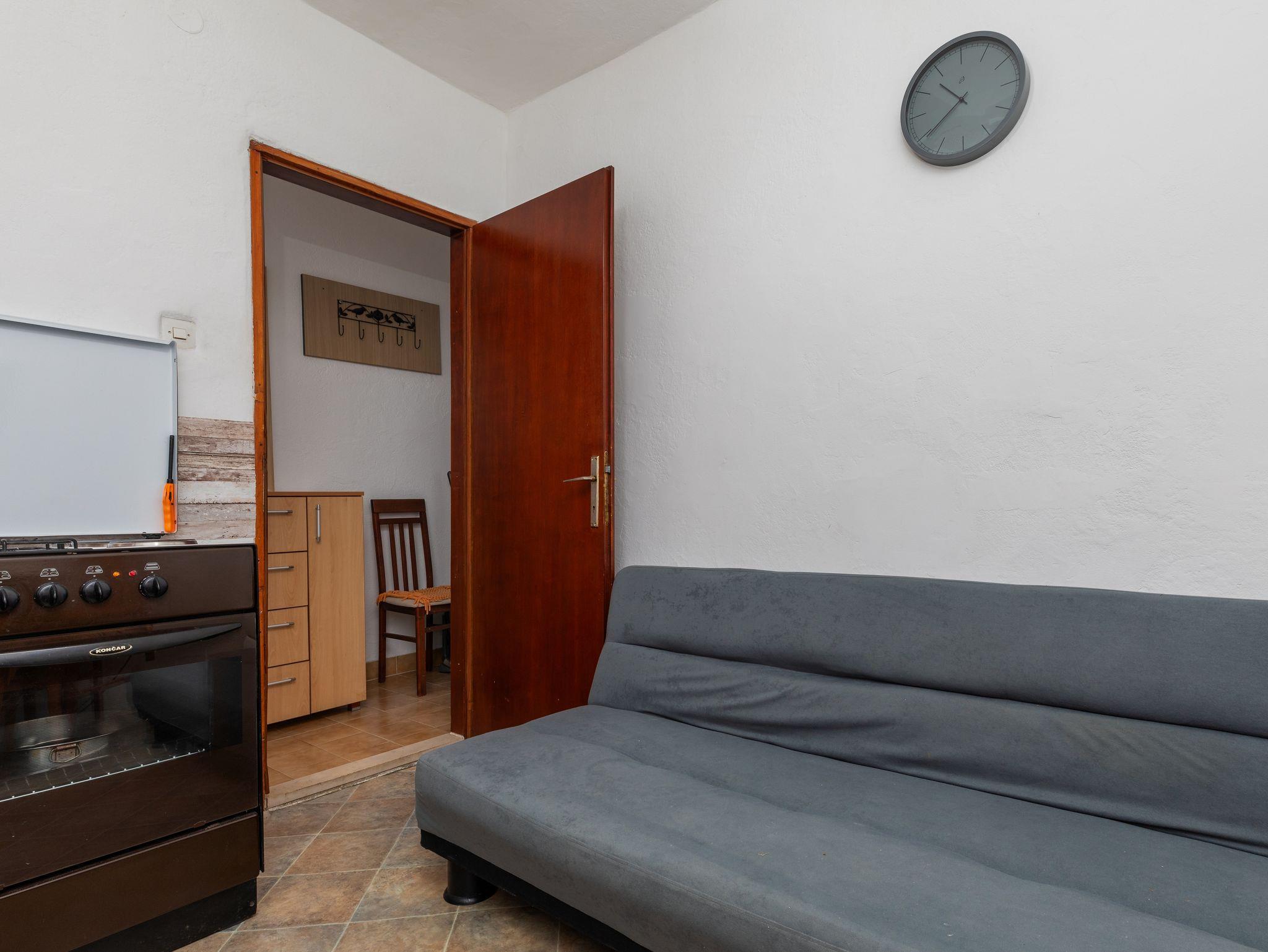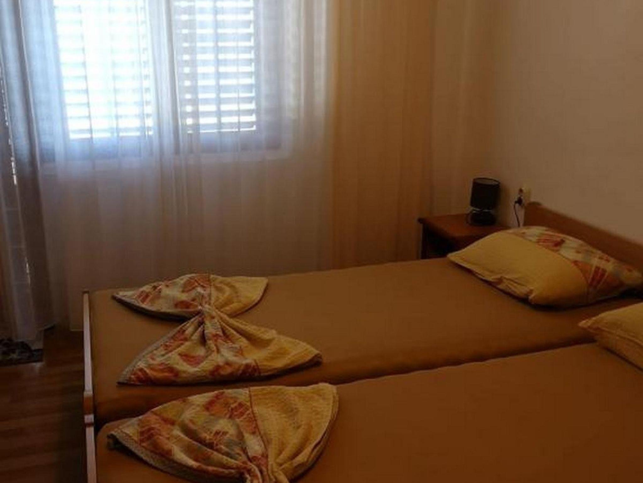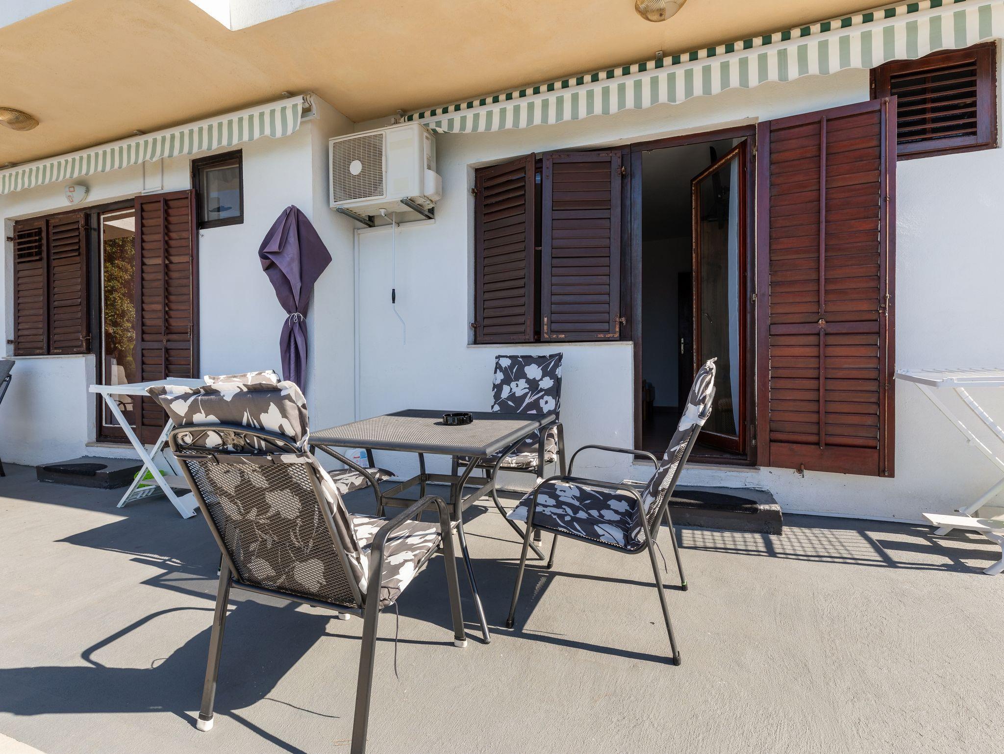 Ferienwohnung bietet Platz für 4 Gäste. Die Betten sind in Schlafzimmern, die es 1 gibt, und in Esszimmer, innerhalb einer Gesamtfläche von 31m2, angeordnet. Die Gäste haben eine eigene Terrasse zur Verfügung, auf der sie in warmen Sommernächten genießen können. Das Apartment bietet Meerblick. Es ist erlaubt, Speisen auf dem Gemeinschafts-Grill vorzubereiten. Durch die Terrasse der gebuchten Unterkunftseinheit gehen auch andere Gäste oder Vermieter. IM PREIS INBEGRIFFEN: Kurtaxe, Endreinigung, Klimatisierung, Parkplatz, Internet, Bügeleisen, Bügelbrett, Föhn, tragbarer Grill, Sonnenschirm. VERBINDLICHE ZUSÄTZLICHE KOSTEN: Aufzahlung für Kurzaufenthalte (prozentualer Zuschlag pro Nächtigungsanzahl: 30% - 1, 20% - 2, 10% - 3). UNVERBINDLICHE ZUSÄTZLICHE KOSTEN: Bootsanlegeplatz (20,00 € pro Nacht). Die Verfügbarkeit zusätzlicher Dienstleistungen in Ihrem reservierten Termin und die Preise derselben (falls nicht aufgeführt) müssen im Voraus überprüft werden. Zusätzliche Dienstleistungen die in der Zahlungsaufforderung nicht aufgeführt sind werden direkt beim Vermieter bezahlt, angenommen der Gast nutzt auch diese. Ermäßigung auf den Grundpreis: Gratistag 14=13 (bei einem Aufenthalt von 14 Tagen oder mehr erhalten Sie einen Gratistag für den Aufenthalt bis 31.12.26).