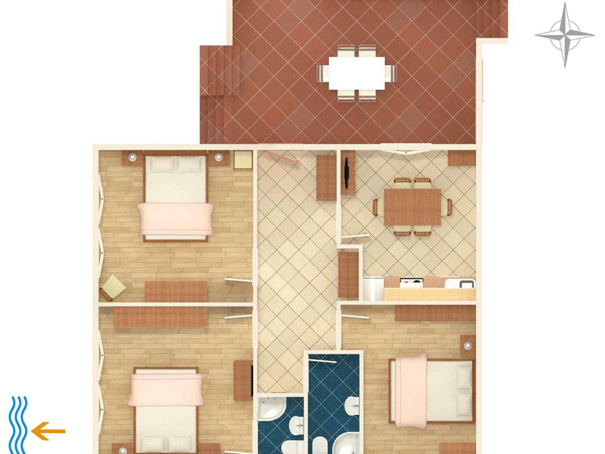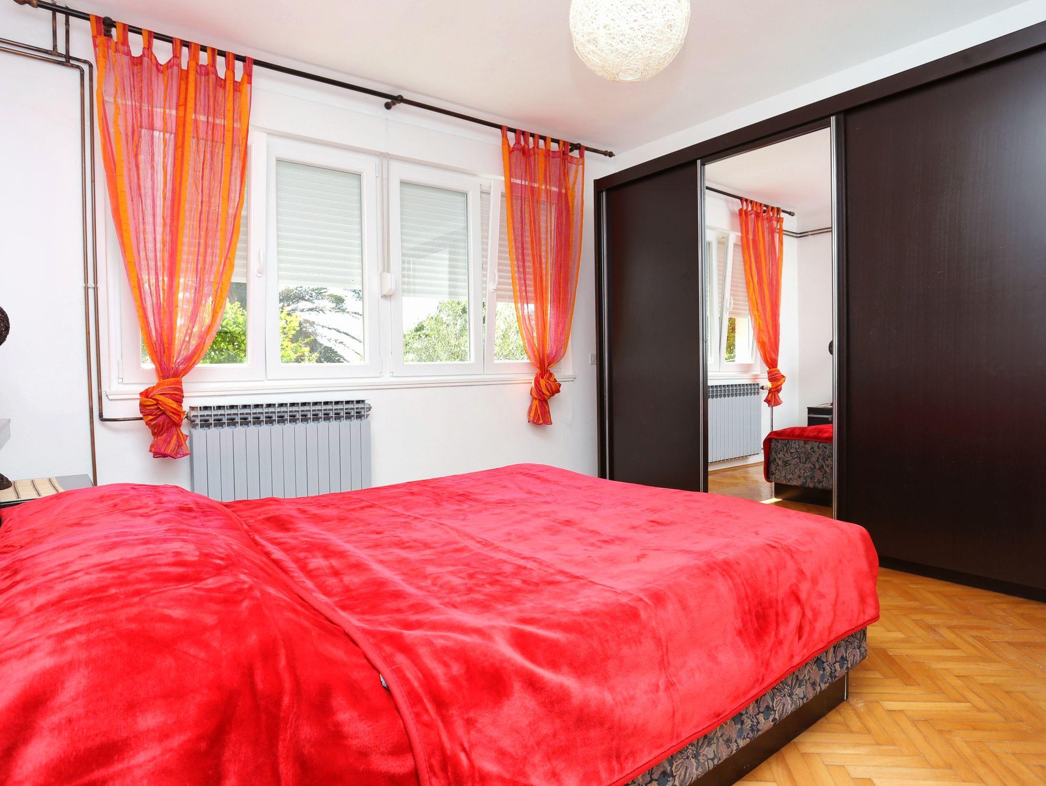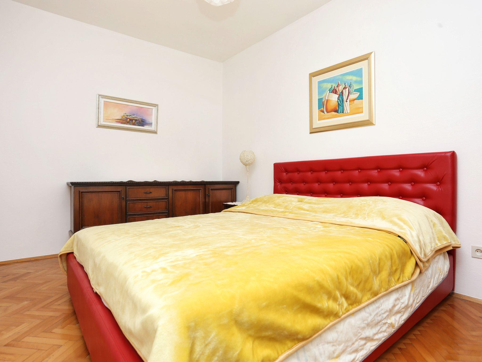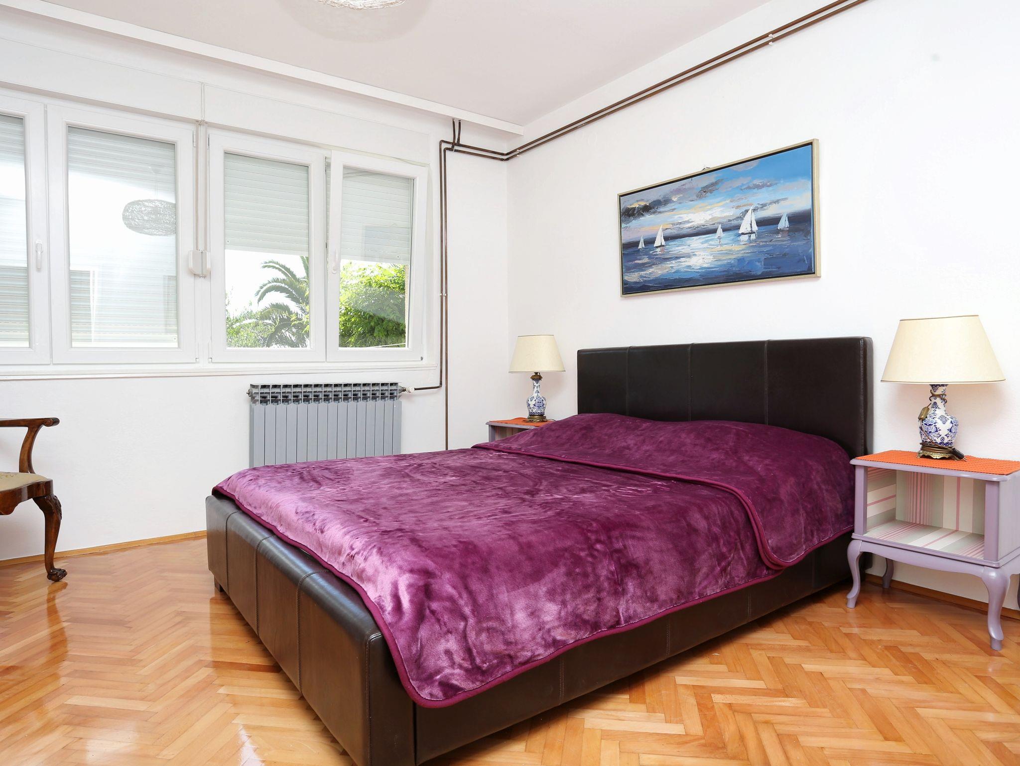 Ferienwohnung bietet Platz für 6 Gäste. Die Betten sind in Schlafzimmern, die es 3 gibt, innerhalb einer Gesamtfläche von 64m2, angeordnet. Die Gäste haben eine eigene Terrasse zur Verfügung, auf der sie in warmen Sommernächten genießen können. Das Apartment bietet Meerblick. Es ist erlaubt, Speisen auf dem Gemeinschafts-Grill vorzubereiten. Durch die Terrasse der gebuchten Unterkunftseinheit gehen auch andere Gäste oder Vermieter. IM PREIS INBEGRIFFEN: Kurtaxe, Endreinigung, Klimatisierung, Parkplatz, Internet, Wäschewaschen, Bügeleisen, Bügelbrett, Föhn, Sonnenschirm, Liegestühle. VERBINDLICHE ZUSÄTZLICHE KOSTEN: Aufzahlung für Kurzaufenthalte (prozentualer Zuschlag pro Nächtigungsanzahl: 30% - 1, 20% - 2, 10% - 3). Die Verfügbarkeit zusätzlicher Dienstleistungen in Ihrem reservierten Termin und die Preise derselben (falls nicht aufgeführt) müssen im Voraus überprüft werden. Zusätzliche Dienstleistungen die in der Zahlungsaufforderung nicht aufgeführt sind werden direkt beim Vermieter bezahlt, angenommen der Gast nutzt auch diese.
