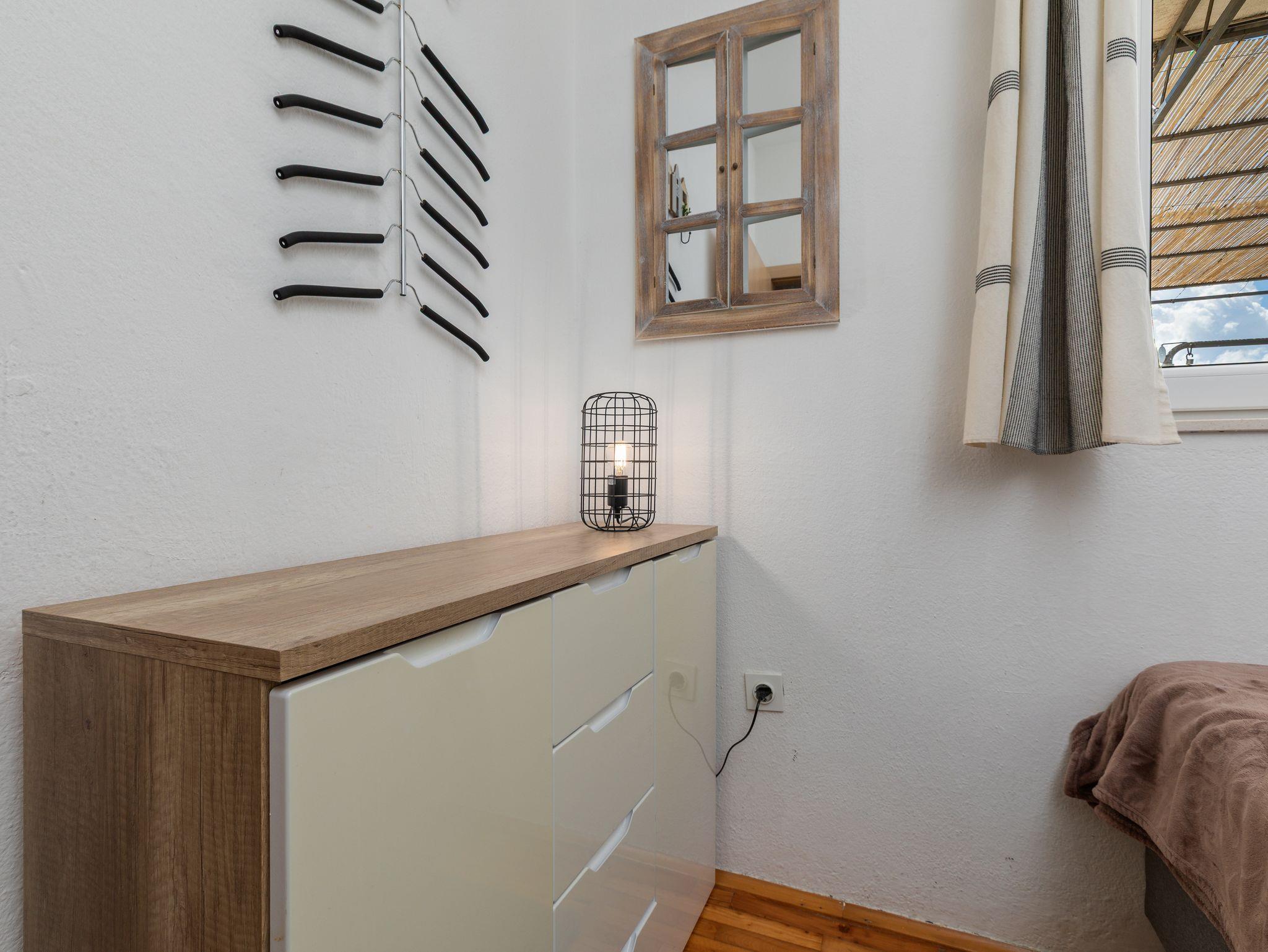 Ferienwohnung bietet Platz für 9 Gäste. Die Betten sind in Schlafzimmern, die es 3 gibt, und in Wohnzimmer, innerhalb einer Gesamtfläche von 69m2, angeordnet. Die Gäste haben eine eigene Terrasse zur Verfügung, auf der sie in warmen Sommernächten genießen können. Das Apartment bietet Meerblick. Es ist erlaubt, Speisen auf dem Gemeinschafts-Grill vorzubereiten. In der Unterkunftseinheit besteht die Möglichkeit des Mitbringens von Haustieren gegen Aufpreis. IM PREIS INBEGRIFFEN: Kurtaxe, Endreinigung, Klimatisierung, Parkplatz, Internet, Kinderbett. VERBINDLICHE ZUSÄTZLICHE KOSTEN: Aufzahlung für Kurzaufenthalte (prozentualer Zuschlag pro Nächtigungsanzahl: 30% - 1, 20% - 2, 10% - 3). UNVERBINDLICHE ZUSÄTZLICHE KOSTEN: Haustiere (5,00 € pro Nacht). Die Verfügbarkeit zusätzlicher Dienstleistungen in Ihrem reservierten Termin und die Preise derselben (falls nicht aufgeführt) müssen im Voraus überprüft werden. Zusätzliche Dienstleistungen die in der Zahlungsaufforderung nicht aufgeführt sind werden direkt beim Vermieter bezahlt, angenommen der Gast nutzt auch diese.