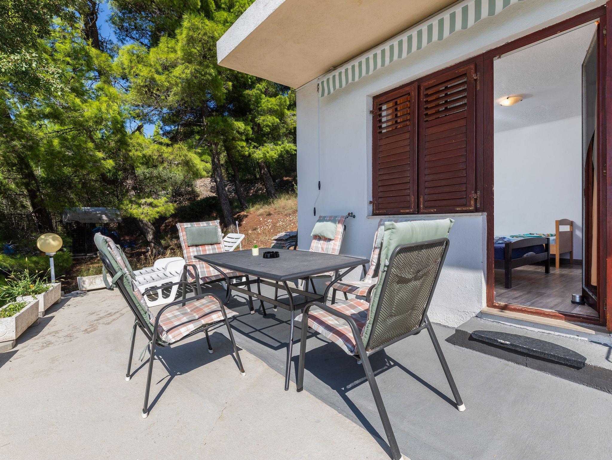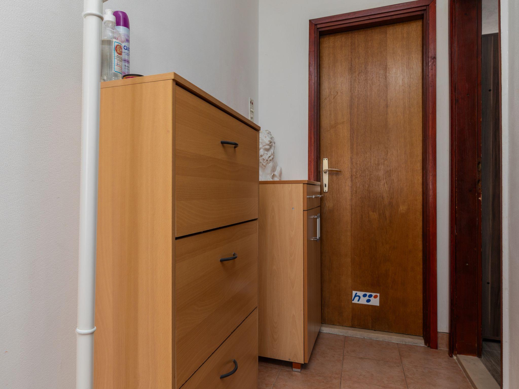 Ferienwohnung bietet Platz für 5 Gäste. Die Betten sind in Schlafzimmern, die es 2 gibt, innerhalb einer Gesamtfläche von 45m2, angeordnet. Die Gäste haben eine eigene Terrasse zur Verfügung, auf der sie in warmen Sommernächten genießen können. Das Apartment bietet Meerblick. Es ist erlaubt, Speisen auf dem Gemeinschafts-Grill vorzubereiten. IM PREIS INBEGRIFFEN: Kurtaxe, Endreinigung, Klimatisierung, Parkplatz, Internet, Bügeleisen, Bügelbrett, Föhn, tragbarer Grill, Sonnenschirm. VERBINDLICHE ZUSÄTZLICHE KOSTEN: Aufzahlung für Kurzaufenthalte (prozentualer Zuschlag pro Nächtigungsanzahl: 30% - 1, 20% - 2, 10% - 3). UNVERBINDLICHE ZUSÄTZLICHE KOSTEN: Bootsanlegeplatz (20,00 € pro Nacht). Die Verfügbarkeit zusätzlicher Dienstleistungen in Ihrem reservierten Termin und die Preise derselben (falls nicht aufgeführt) müssen im Voraus überprüft werden. Zusätzliche Dienstleistungen die in der Zahlungsaufforderung nicht aufgeführt sind werden direkt beim Vermieter bezahlt, angenommen der Gast nutzt auch diese. Ermäßigung auf den Grundpreis: Gratistag 14=13 (bei einem Aufenthalt von 14 Tagen oder mehr erhalten Sie einen Gratistag für den Aufenthalt bis 31.12.26).