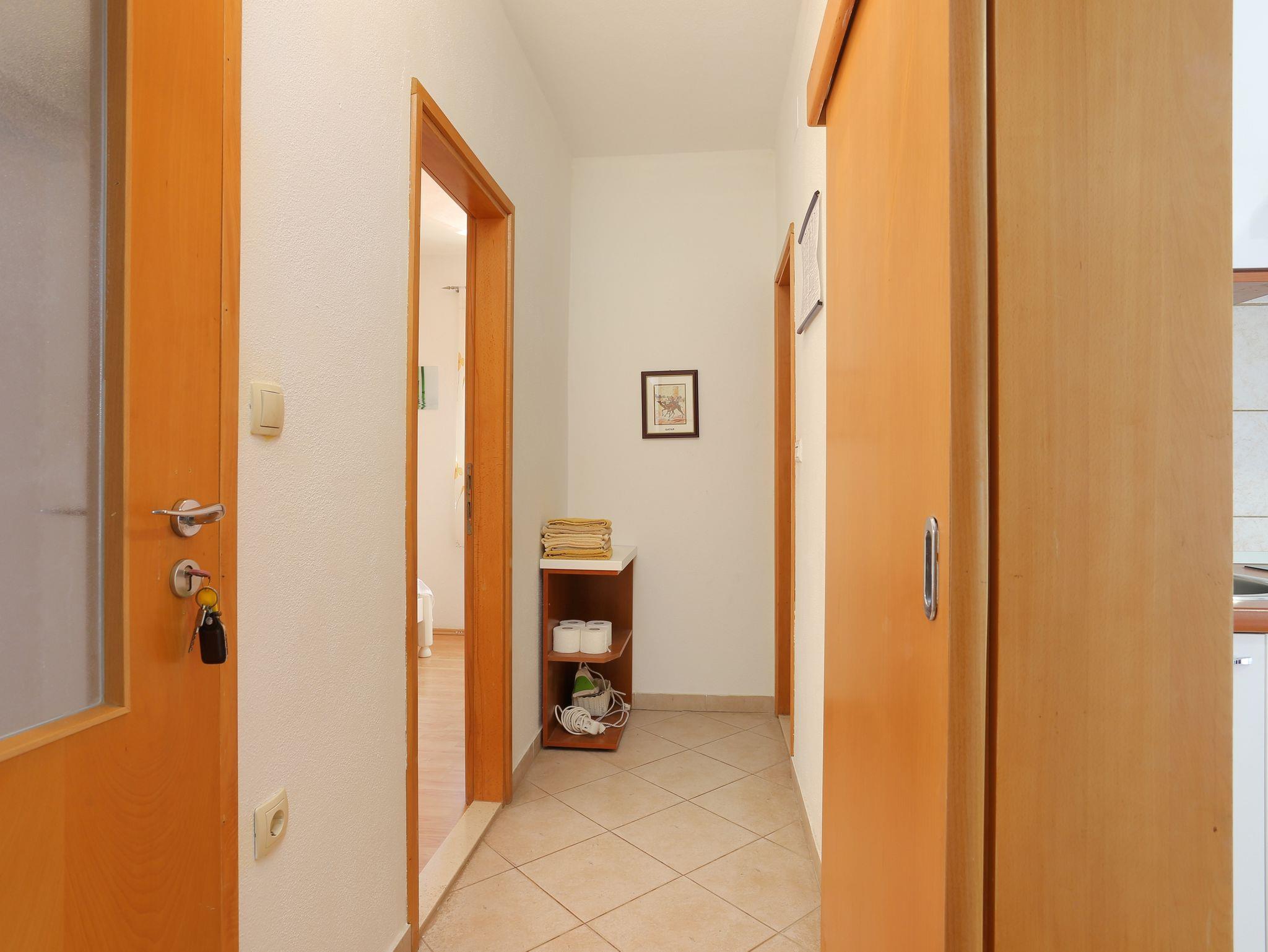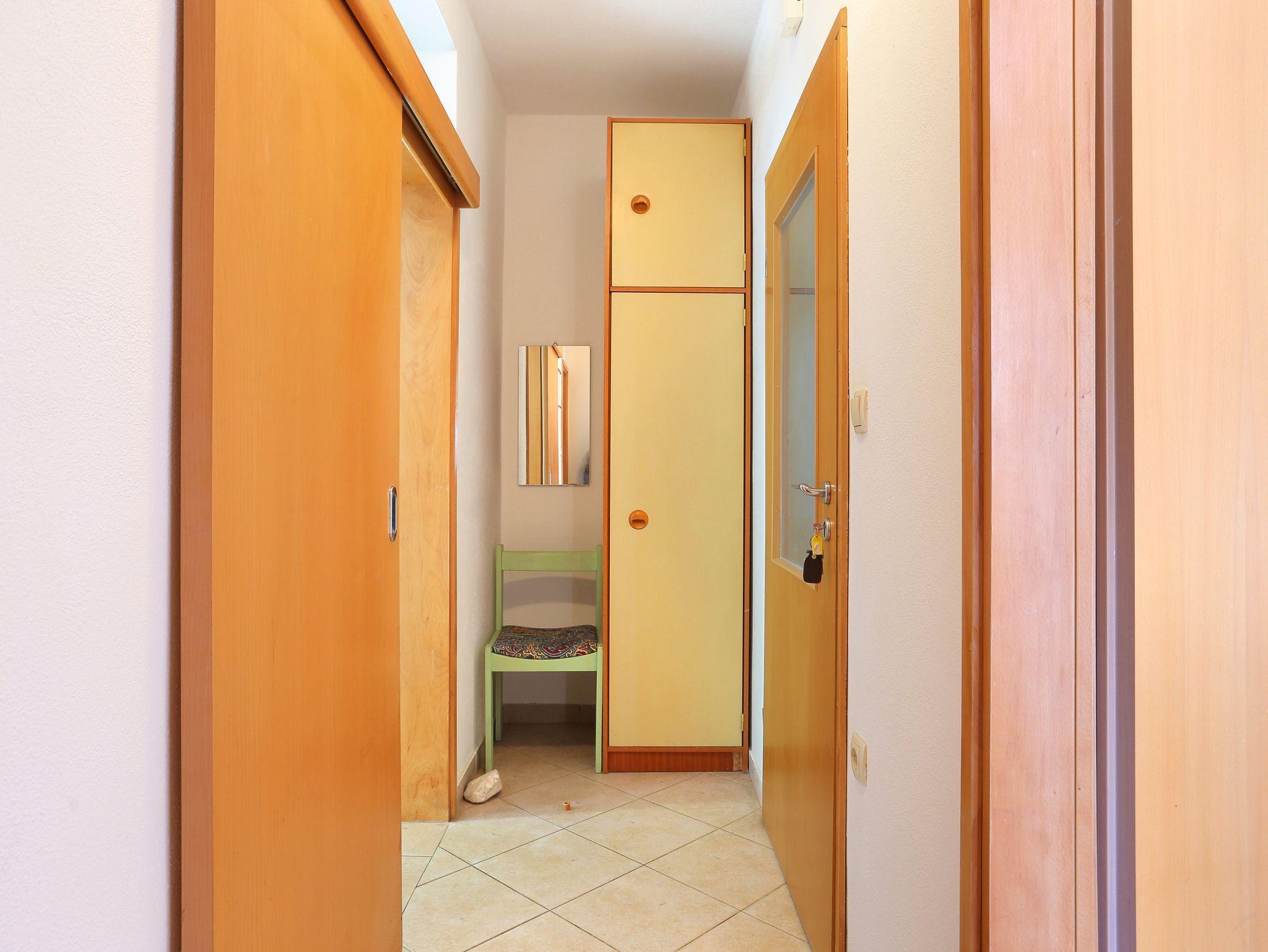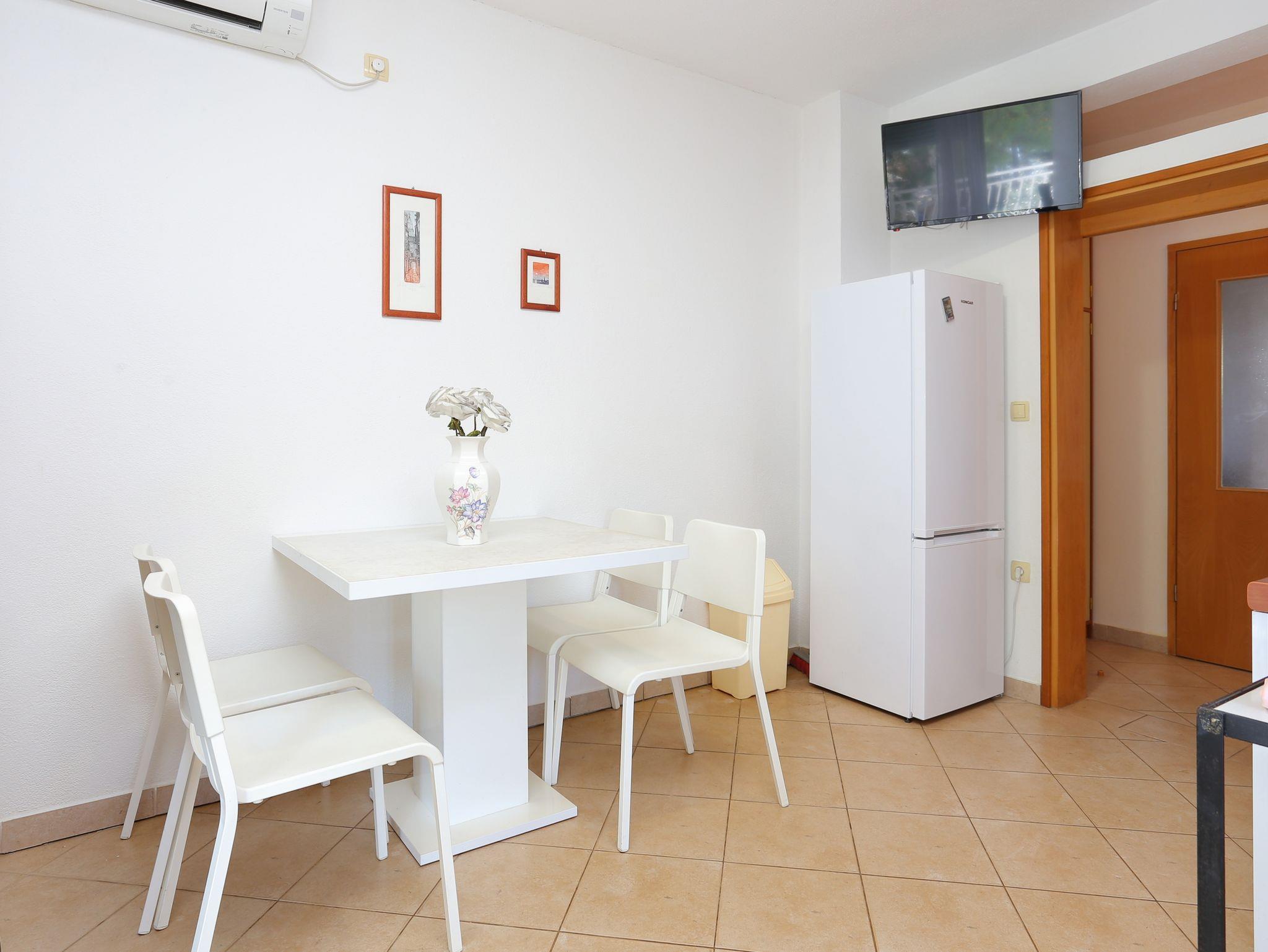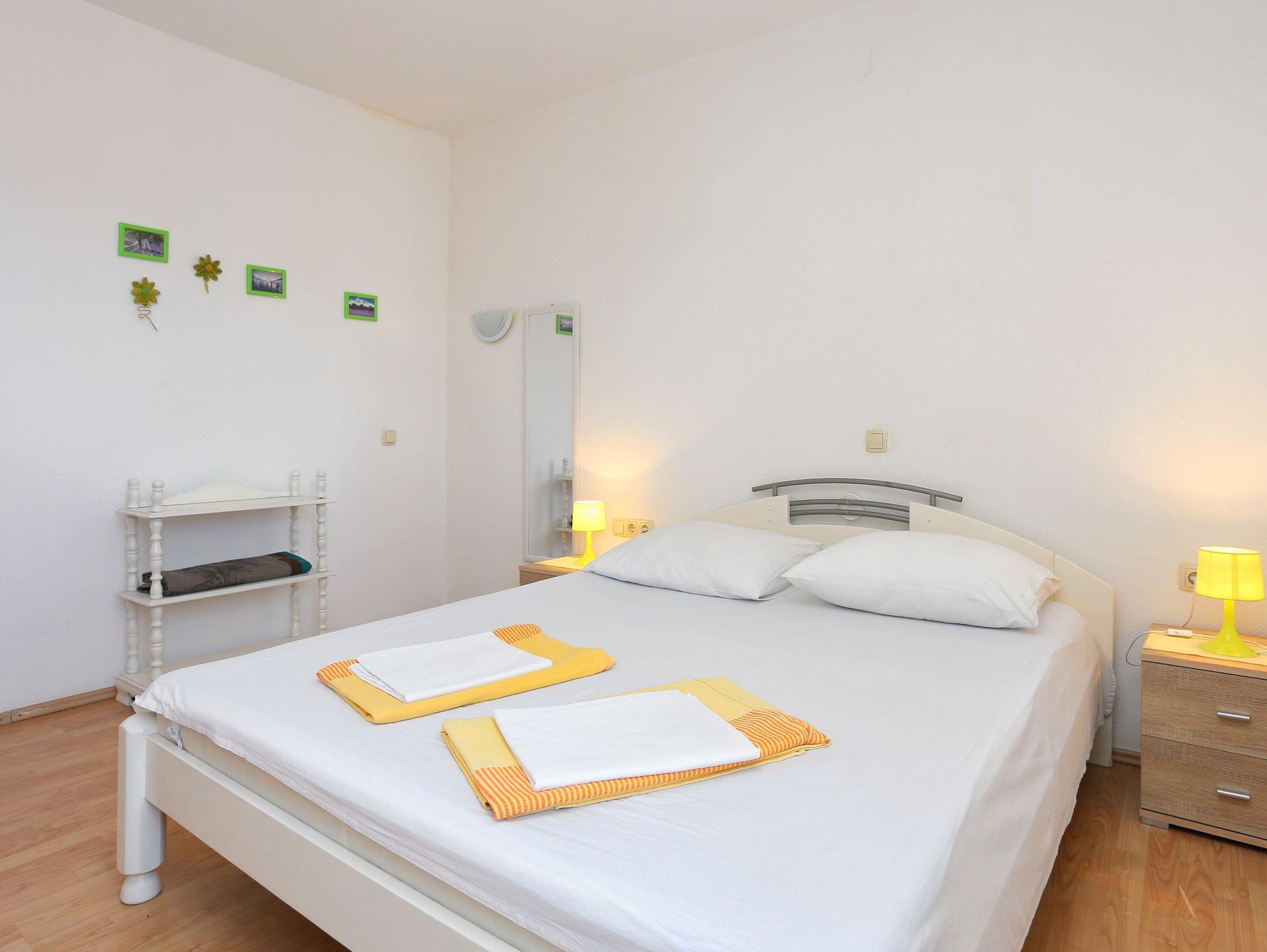 Ferienwohnung bietet Platz für 4 Gäste. Die Betten sind in Schlafzimmern, die es 1 gibt, und in Wohnzimmer, innerhalb einer Gesamtfläche von 40m2, angeordnet. Die Gäste haben eine eigene Terrasse zur Verfügung, auf der sie in warmen Sommernächten genießen können. Das Apartment bietet Meerblick. Es ist erlaubt, Speisen auf dem Gemeinschafts-Grill vorzubereiten. IM PREIS INBEGRIFFEN: Kurtaxe, Endreinigung, Klimatisierung, Parkplatz, Internet, Wäschewaschen, Bügeleisen, Bügelbrett, Föhn, Sonnenschirm, Liegestühle. VERBINDLICHE ZUSÄTZLICHE KOSTEN: Aufzahlung für Kurzaufenthalte (prozentualer Zuschlag pro Nächtigungsanzahl: 30% - 1, 20% - 2, 10% - 3). Die Verfügbarkeit zusätzlicher Dienstleistungen in Ihrem reservierten Termin und die Preise derselben (falls nicht aufgeführt) müssen im Voraus überprüft werden. Zusätzliche Dienstleistungen die in der Zahlungsaufforderung nicht aufgeführt sind werden direkt beim Vermieter bezahlt, angenommen der Gast nutzt auch diese.