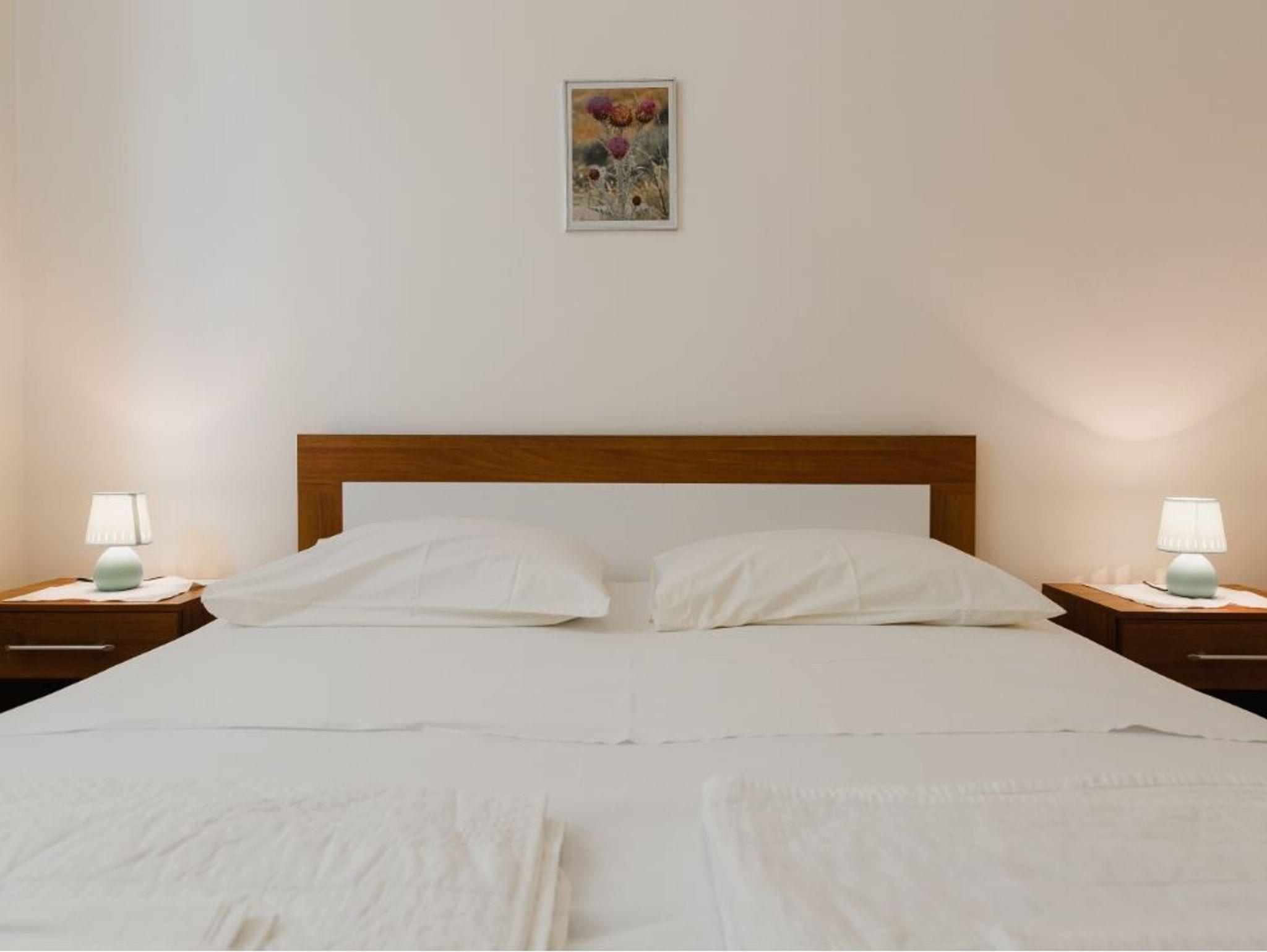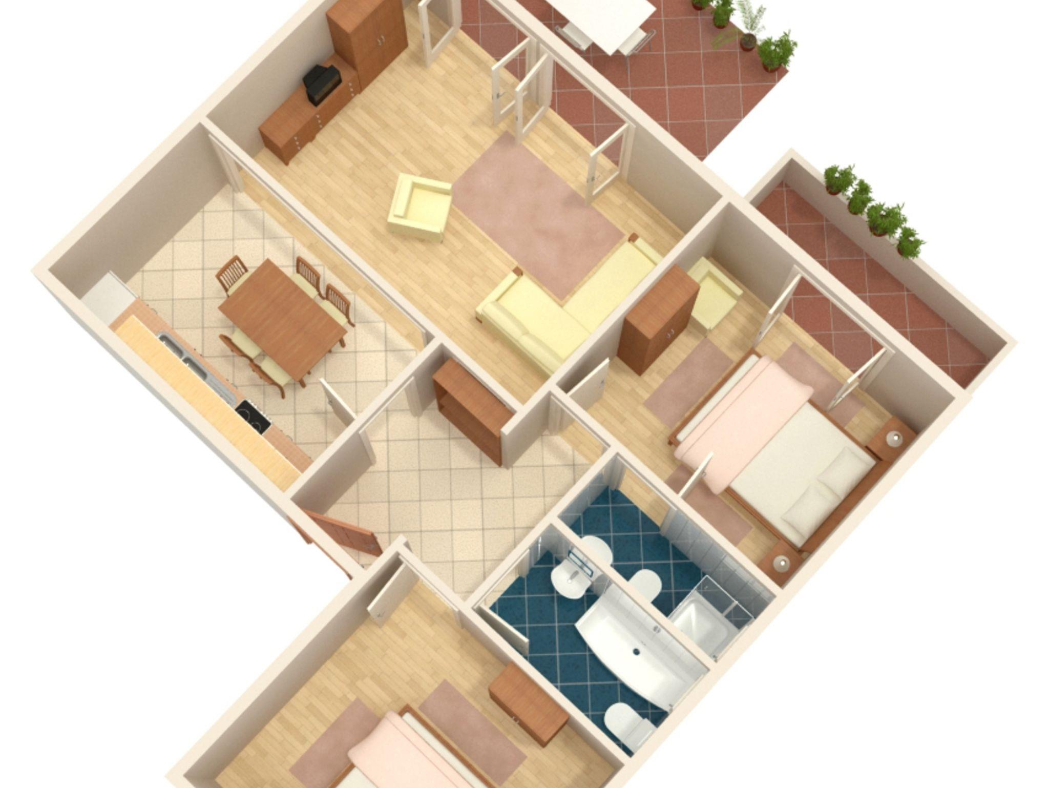 Ferienwohnung bietet Platz für 6 Gäste. Die Betten sind in Schlafzimmern, die es 2 gibt, und in Wohnzimmer, innerhalb einer Gesamtfläche von 69m2, angeordnet. Die Gäste haben eine eigene Terrasse zur Verfügung, auf der sie in warmen Sommernächten genießen können. Es ist erlaubt, Speisen auf dem Gemeinschafts-Grill vorzubereiten. IM PREIS INBEGRIFFEN: Kurtaxe, Frühstück, Endreinigung, Klimatisierung, Parkplatz, Internet, Kinderbett, Bügeleisen, Bügelbrett, Föhn. VERBINDLICHE ZUSÄTZLICHE KOSTEN: Aufzahlung für Kurzaufenthalte (prozentualer Zuschlag pro Nächtigungsanzahl: 30% - 1, 20% - 2, 10% - 3). UNVERBINDLICHE ZUSÄTZLICHE KOSTEN: Boot (50,00 € pro Nacht), Bootsanlegeplatz (20,00 € pro Nacht), Fahrrad (20,00 € täglich (pro Stück)). Die Verfügbarkeit zusätzlicher Dienstleistungen in Ihrem reservierten Termin und die Preise derselben (falls nicht aufgeführt) müssen im Voraus überprüft werden. Zusätzliche Dienstleistungen die in der Zahlungsaufforderung nicht aufgeführt sind werden direkt beim Vermieter bezahlt, angenommen der Gast nutzt auch diese. Ermäßigung auf den Grundpreis: Gratistag 14=13 (bei einem Aufenthalt von 14 Tagen oder mehr erhalten Sie einen Gratistag für den Aufenthalt bis 31.12.26).