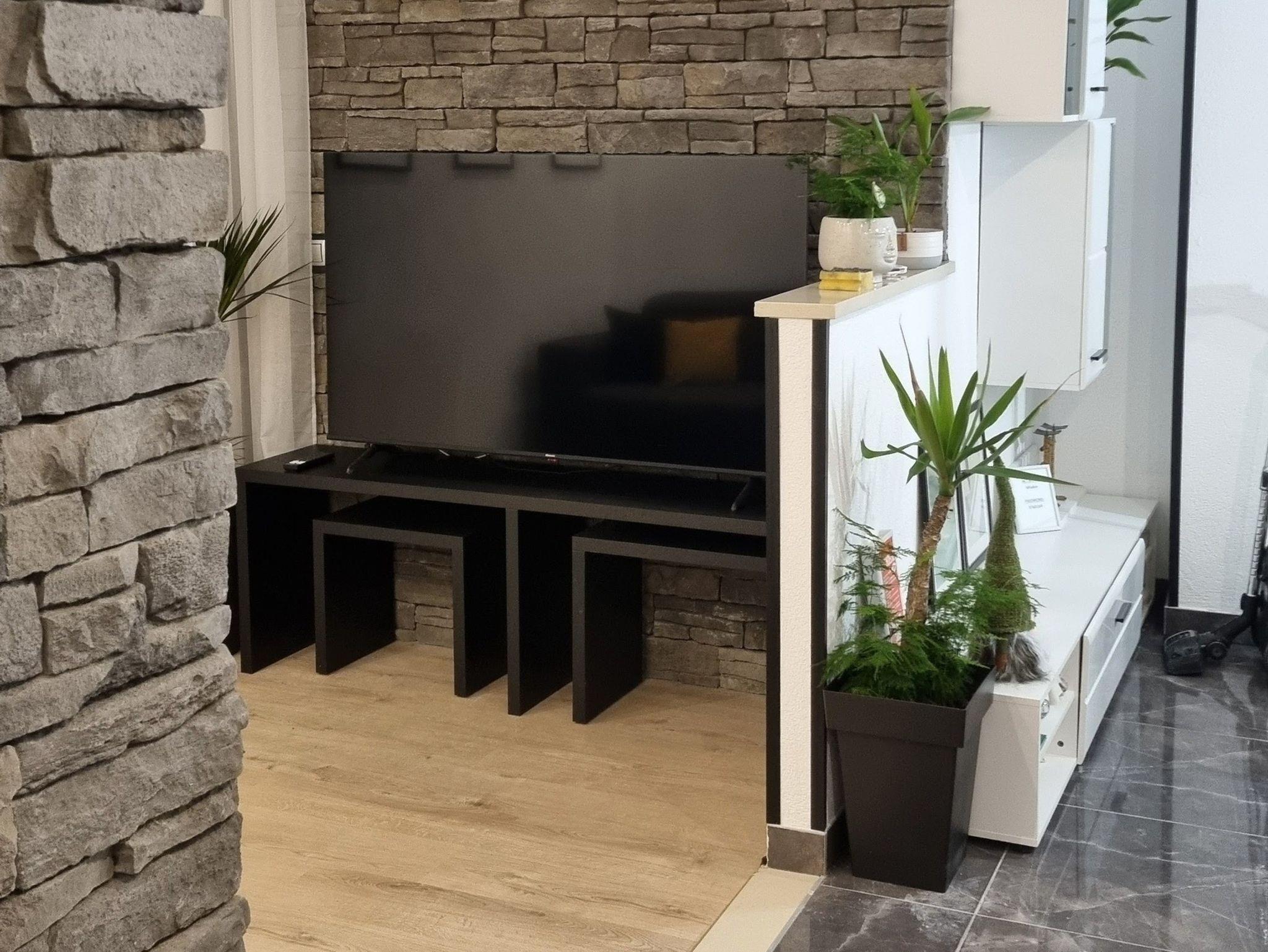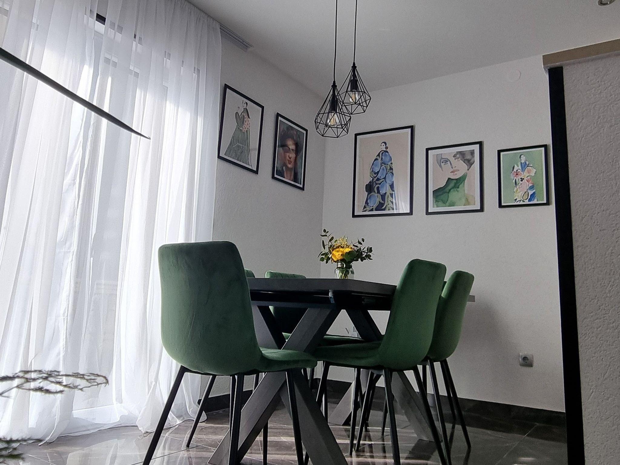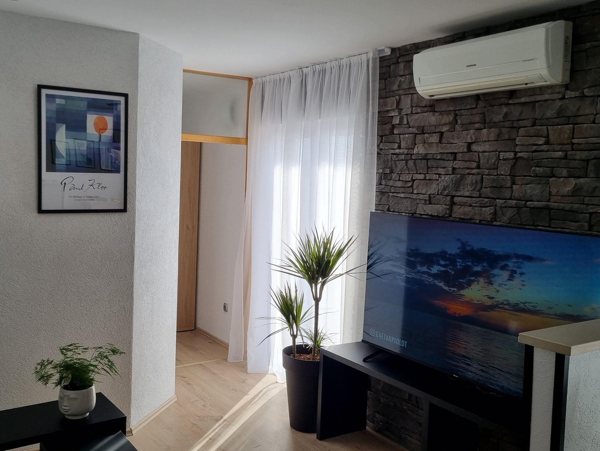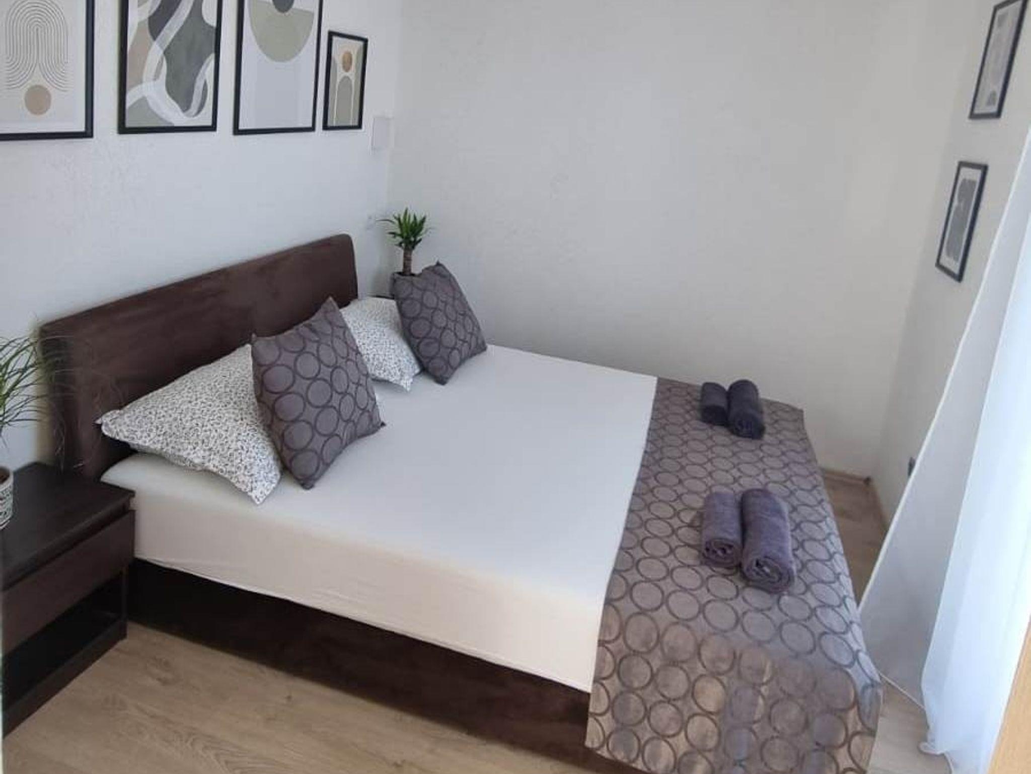 Ferienwohnung bietet Platz für 6 Gäste. Die Betten sind in Schlafzimmern, die es 3 gibt, innerhalb einer Gesamtfläche von 85m2, angeordnet. Die Gäste haben eine eigene Terrasse zur Verfügung, auf der sie in warmen Sommernächten genießen können. Das Apartment bietet Meerblick. Es ist erlaubt, Speisen auf dem Gemeinschafts-Grill vorzubereiten. In der Unterkunftseinheit besteht die Möglichkeit des Mitbringens von Haustieren, und die Dienstleistung ist im Preis der Unterkunft enthalten. IM PREIS INBEGRIFFEN: Kurtaxe, Endreinigung, Klimatisierung, Parkplatz, Internet, Haustiere, Kinderbett, Bügeleisen, Bügelbrett, Föhn. Die Verfügbarkeit zusätzlicher Dienstleistungen in Ihrem reservierten Termin und die Preise derselben (falls nicht aufgeführt) müssen im Voraus überprüft werden. Zusätzliche Dienstleistungen die in der Zahlungsaufforderung nicht aufgeführt sind werden direkt beim Vermieter bezahlt, angenommen der Gast nutzt auch diese. Ermäßigung auf den Grundpreis: Gratistag 14=13 (bei einem Aufenthalt von 14 Tagen oder mehr erhalten Sie einen Gratistag für den Aufenthalt bis 31.12.26).