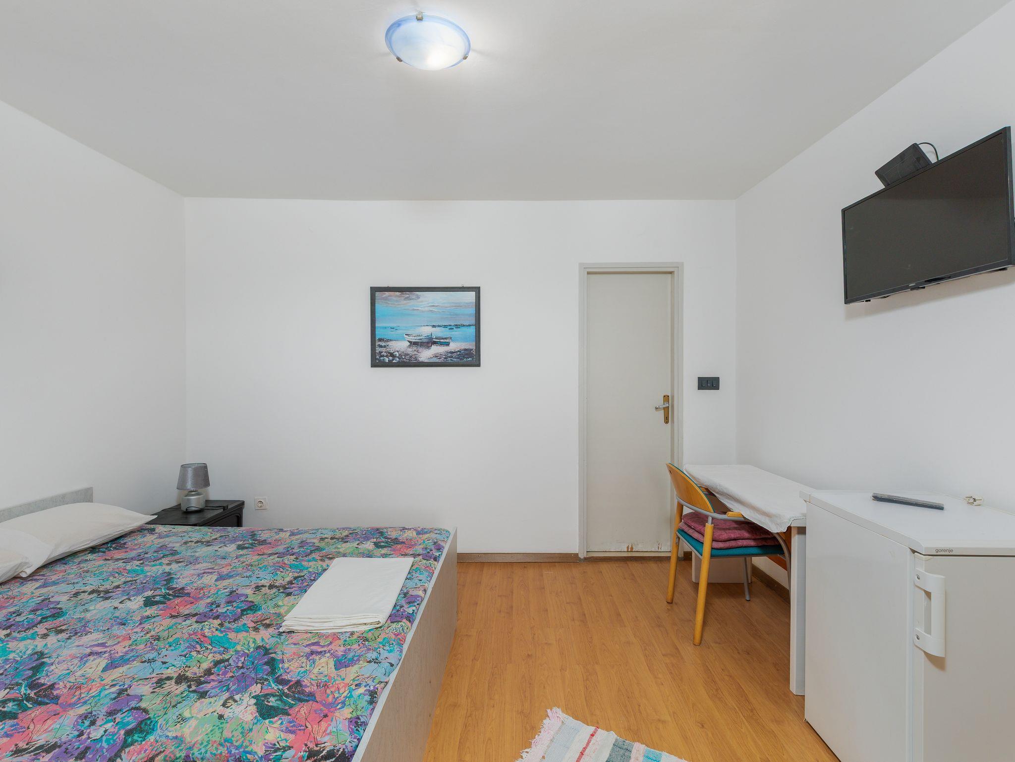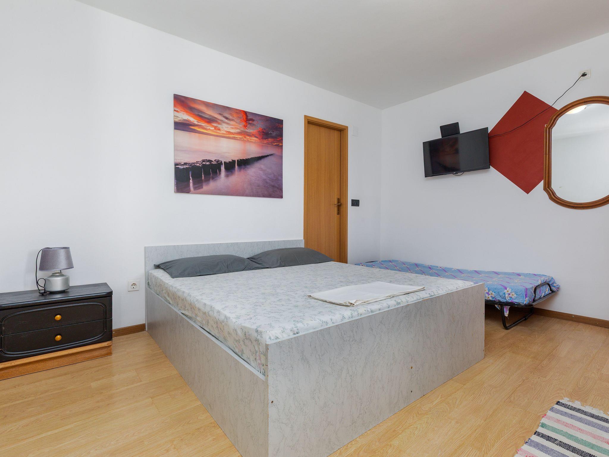 Ferienwohnung bietet Platz für 5 Gäste. Die Betten sind in Schlafzimmern, die es 2 gibt, innerhalb einer Gesamtfläche von 45m2, angeordnet. Die Gäste haben eine eigene Terrasse zur Verfügung, auf der sie in warmen Sommernächten genießen können. Das Apartment bietet Meerblick. Es ist erlaubt, Speisen auf dem Gemeinschafts-Grill vorzubereiten. IM PREIS INBEGRIFFEN: Kurtaxe, Endreinigung, Parkplatz, Internet, 1 Bett für Kinder (im Preis enthalten). VERBINDLICHE ZUSÄTZLICHE KOSTEN: Aufzahlung für Kurzaufenthalte (prozentualer Zuschlag pro Nächtigungsanzahl: 30% - 1, 20% - 2, 10% - 3). UNVERBINDLICHE ZUSÄTZLICHE KOSTEN: Klimatisierung (5,00 € pro Nacht). Die Verfügbarkeit zusätzlicher Dienstleistungen in Ihrem reservierten Termin und die Preise derselben (falls nicht aufgeführt) müssen im Voraus überprüft werden. Zusätzliche Dienstleistungen die in der Zahlungsaufforderung nicht aufgeführt sind werden direkt beim Vermieter bezahlt, angenommen der Gast nutzt auch diese.