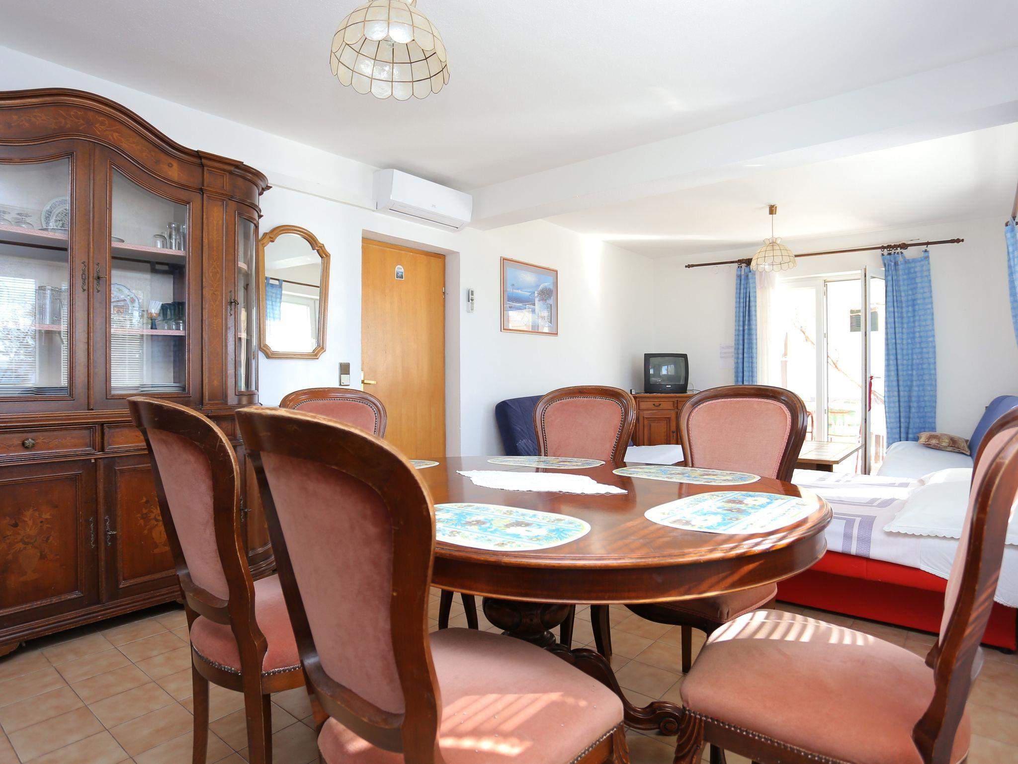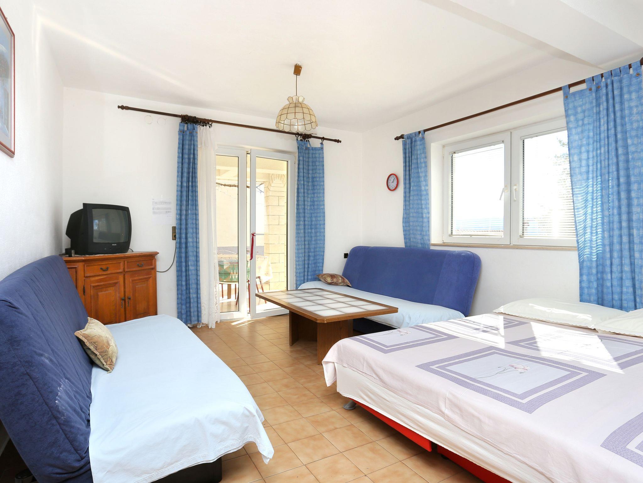 Ferienwohnung bietet Platz für 8 Gäste. Die Betten sind in Schlafzimmern, die es 2 gibt, und in Wohnzimmer, innerhalb einer Gesamtfläche von 69m2, angeordnet. Die Gäste haben eine eigene Terrasse zur Verfügung, auf der sie in warmen Sommernächten genießen können. Es ist erlaubt, Speisen auf dem Gemeinschafts-Grill vorzubereiten. IM PREIS INBEGRIFFEN: Kurtaxe, Endreinigung, Parkplatz, Internet, Kinderbett, Bügeleisen, Bügelbrett, Föhn, tragbarer Grill. VERBINDLICHE ZUSÄTZLICHE KOSTEN: Aufzahlung für Kurzaufenthalte (prozentualer Zuschlag pro Nächtigungsanzahl: 30% - 1, 20% - 2, 10% - 3). UNVERBINDLICHE ZUSÄTZLICHE KOSTEN: Klimatisierung (5,00 € pro Nacht), Wäschewaschen (5,00 € Waschen). Die Verfügbarkeit zusätzlicher Dienstleistungen in Ihrem reservierten Termin und die Preise derselben (falls nicht aufgeführt) müssen im Voraus überprüft werden. Zusätzliche Dienstleistungen die in der Zahlungsaufforderung nicht aufgeführt sind werden direkt beim Vermieter bezahlt, angenommen der Gast nutzt auch diese. Ermäßigung auf den Grundpreis: Gratistag 14=13 (bei einem Aufenthalt von 14 Tagen oder mehr erhalten Sie einen Gratistag für den Aufenthalt bis 31.12.26).