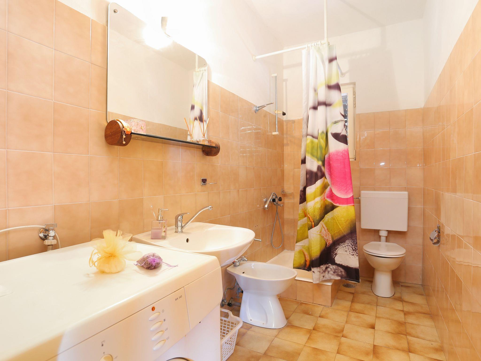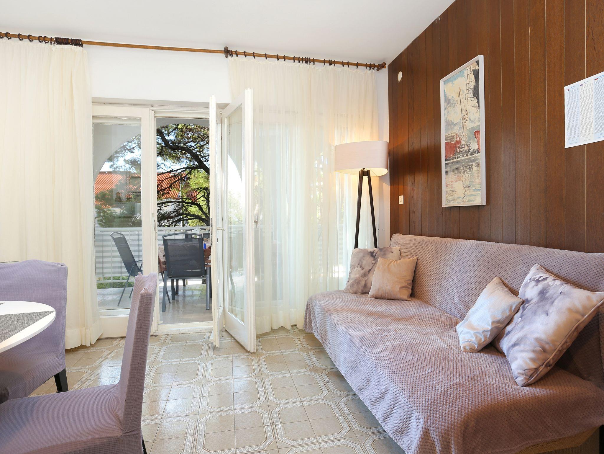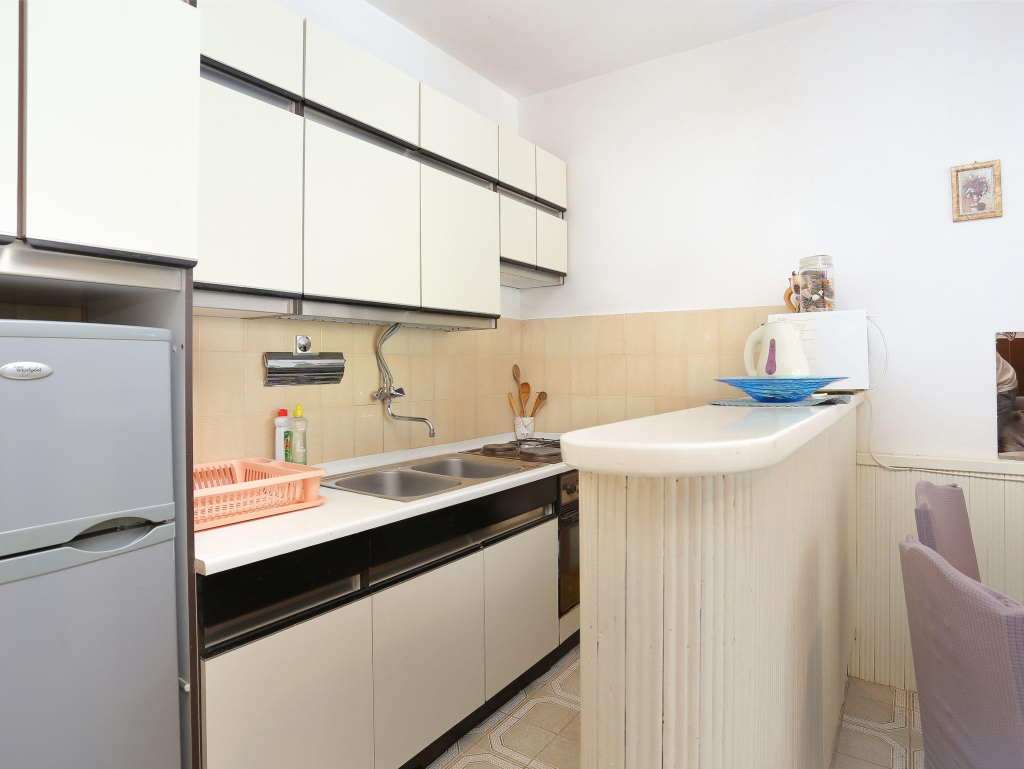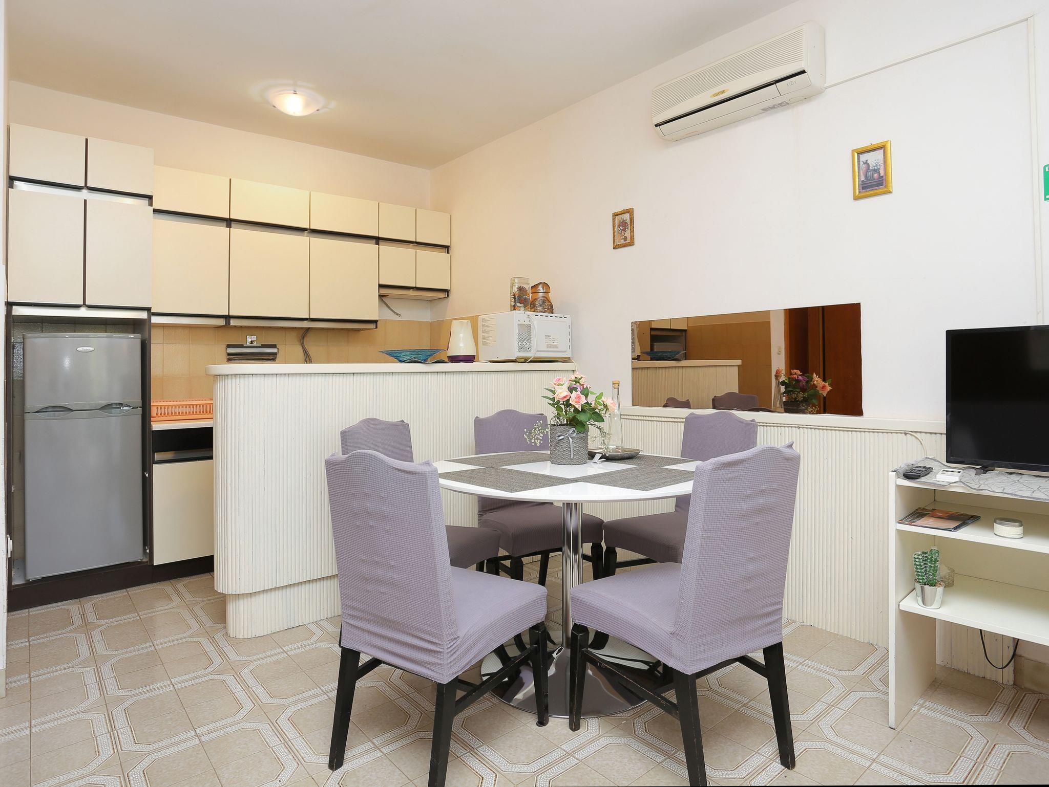 Ferienwohnung bietet Platz für 4 Gäste. Die Betten sind in Schlafzimmern, die es 1 gibt, und in Wohnzimmer, innerhalb einer Gesamtfläche von 36m2, angeordnet. Die Gäste haben eine eigene Terrasse zur Verfügung, auf der sie in warmen Sommernächten genießen können. Das Apartment bietet Meerblick. In der Unterkunftseinheit besteht die Möglichkeit des Mitbringens von Haustieren gegen Aufpreis. IM PREIS INBEGRIFFEN: Kurtaxe, Endreinigung, Klimatisierung, Parkplatz, Internet, Föhn. VERBINDLICHE ZUSÄTZLICHE KOSTEN: Aufzahlung für Kurzaufenthalte (prozentualer Zuschlag pro Nächtigungsanzahl: 30% - 1, 20% - 2, 10% - 3). UNVERBINDLICHE ZUSÄTZLICHE KOSTEN: Haustiere (15,00 € pro Nacht). Die Verfügbarkeit zusätzlicher Dienstleistungen in Ihrem reservierten Termin und die Preise derselben (falls nicht aufgeführt) müssen im Voraus überprüft werden. Zusätzliche Dienstleistungen die in der Zahlungsaufforderung nicht aufgeführt sind werden direkt beim Vermieter bezahlt, angenommen der Gast nutzt auch diese.