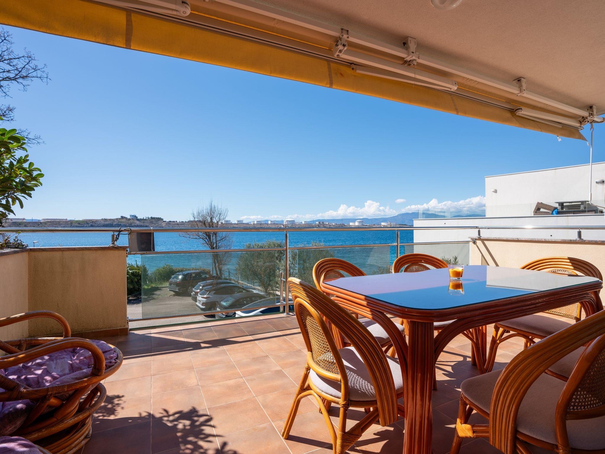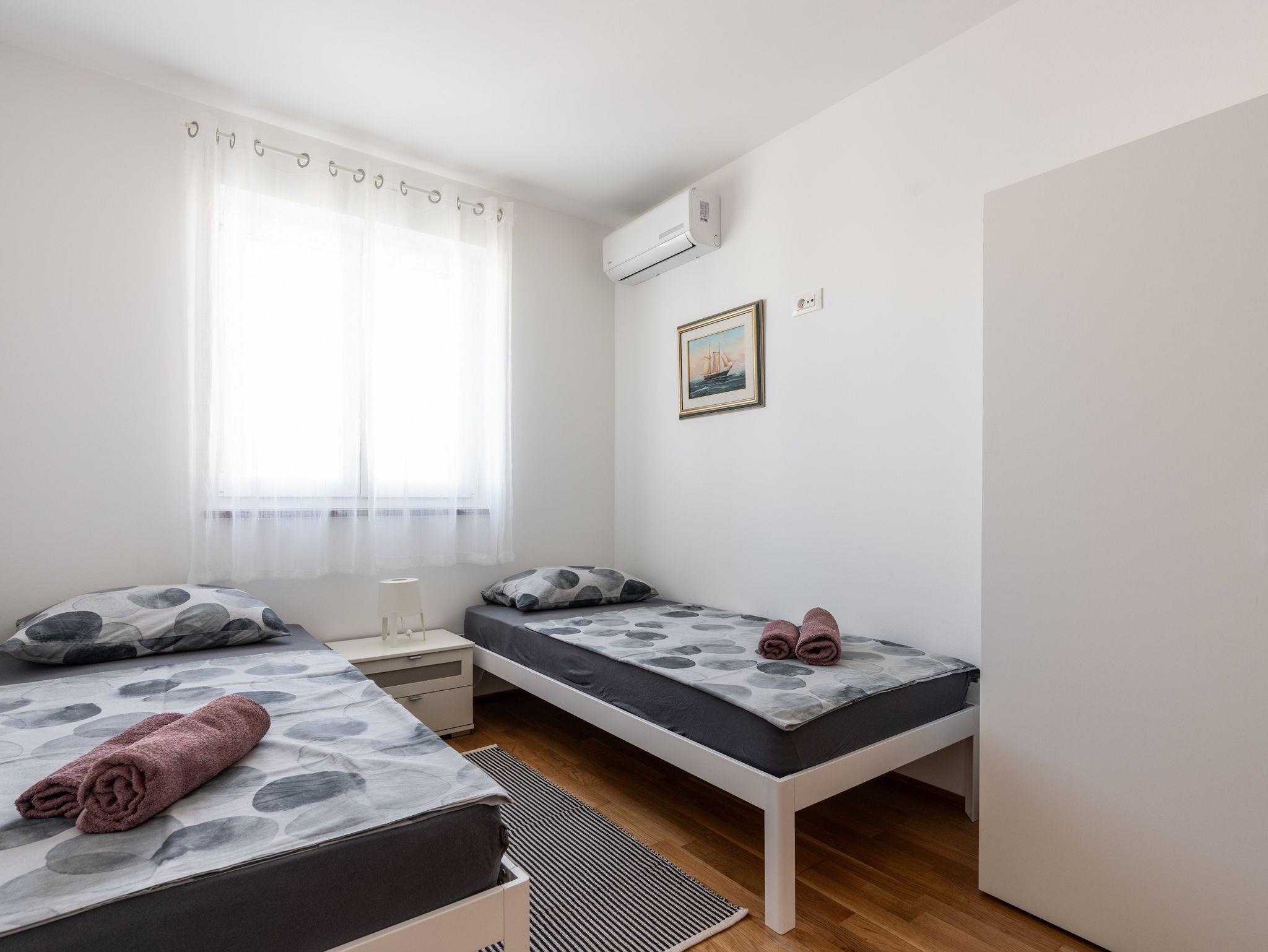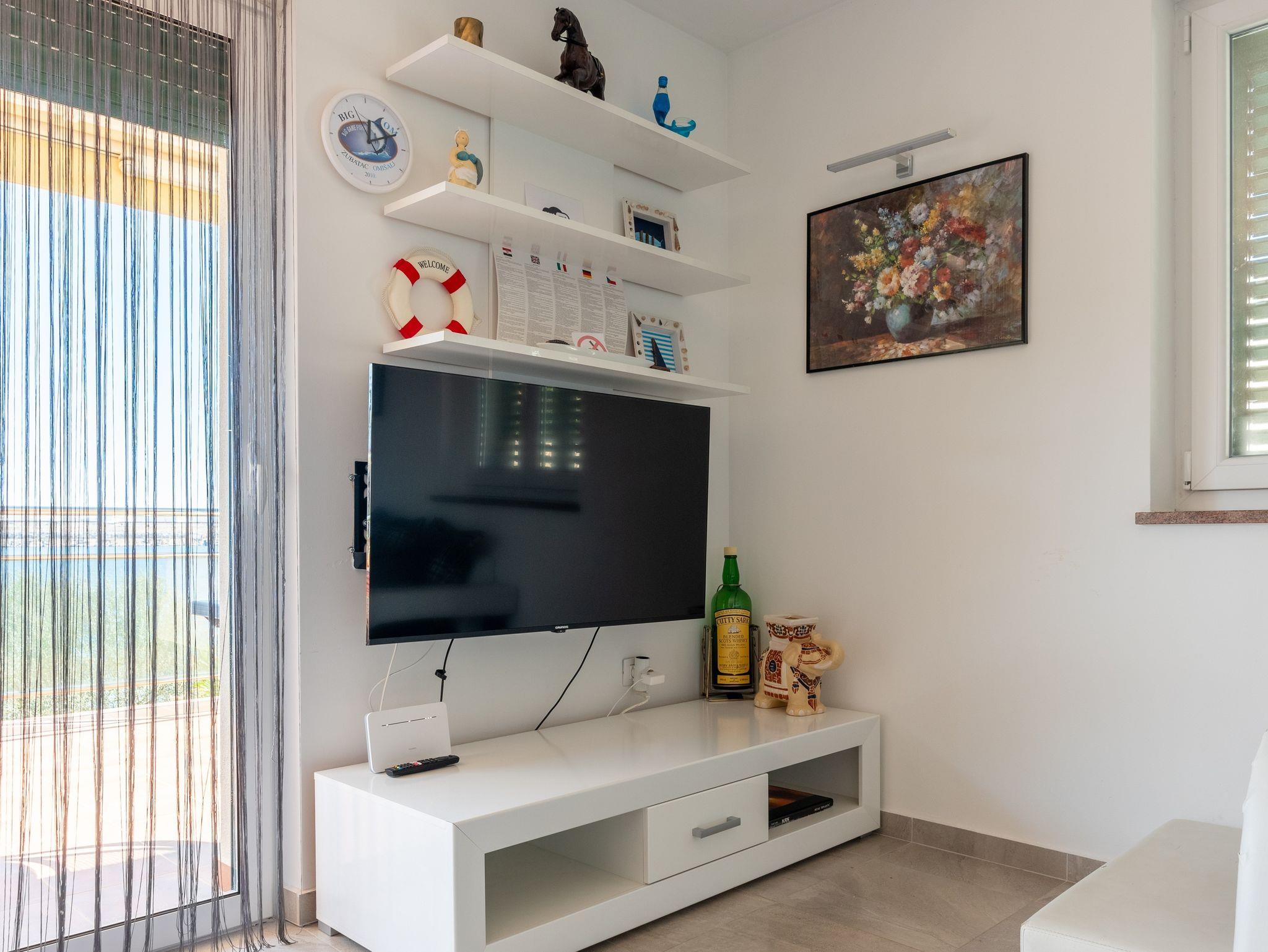 Ferienwohnung bietet Platz für 6 Gäste. Die Betten sind in Schlafzimmern, die es 2 gibt, und in Wohnzimmer, innerhalb einer Gesamtfläche von 85m2, angeordnet. Die Gäste haben eine eigene Terrasse zur Verfügung, auf der sie in warmen Sommernächten genießen können. Das Apartment bietet Meerblick. In der gebuchten Unterkunftseinheit zahlt man am Ort ein Depositum ( der Preis ist an der Internetseite angeführt ). IM PREIS INBEGRIFFEN: Kurtaxe, Endreinigung, Klimatisierung, Parkplatz, Internet, Kinderbett, Bügeleisen, Föhn. VERBINDLICHE ZUSÄTZLICHE KOSTEN: Kaution (100,00 € Einmalzahlung), Aufzahlung für Kurzaufenthalte (prozentualer Zuschlag pro Nächtigungsanzahl: 30% - 1, 20% - 2, 10% - 3). Die Verfügbarkeit zusätzlicher Dienstleistungen in Ihrem reservierten Termin und die Preise derselben (falls nicht aufgeführt) müssen im Voraus überprüft werden. Zusätzliche Dienstleistungen die in der Zahlungsaufforderung nicht aufgeführt sind werden direkt beim Vermieter bezahlt, angenommen der Gast nutzt auch diese.