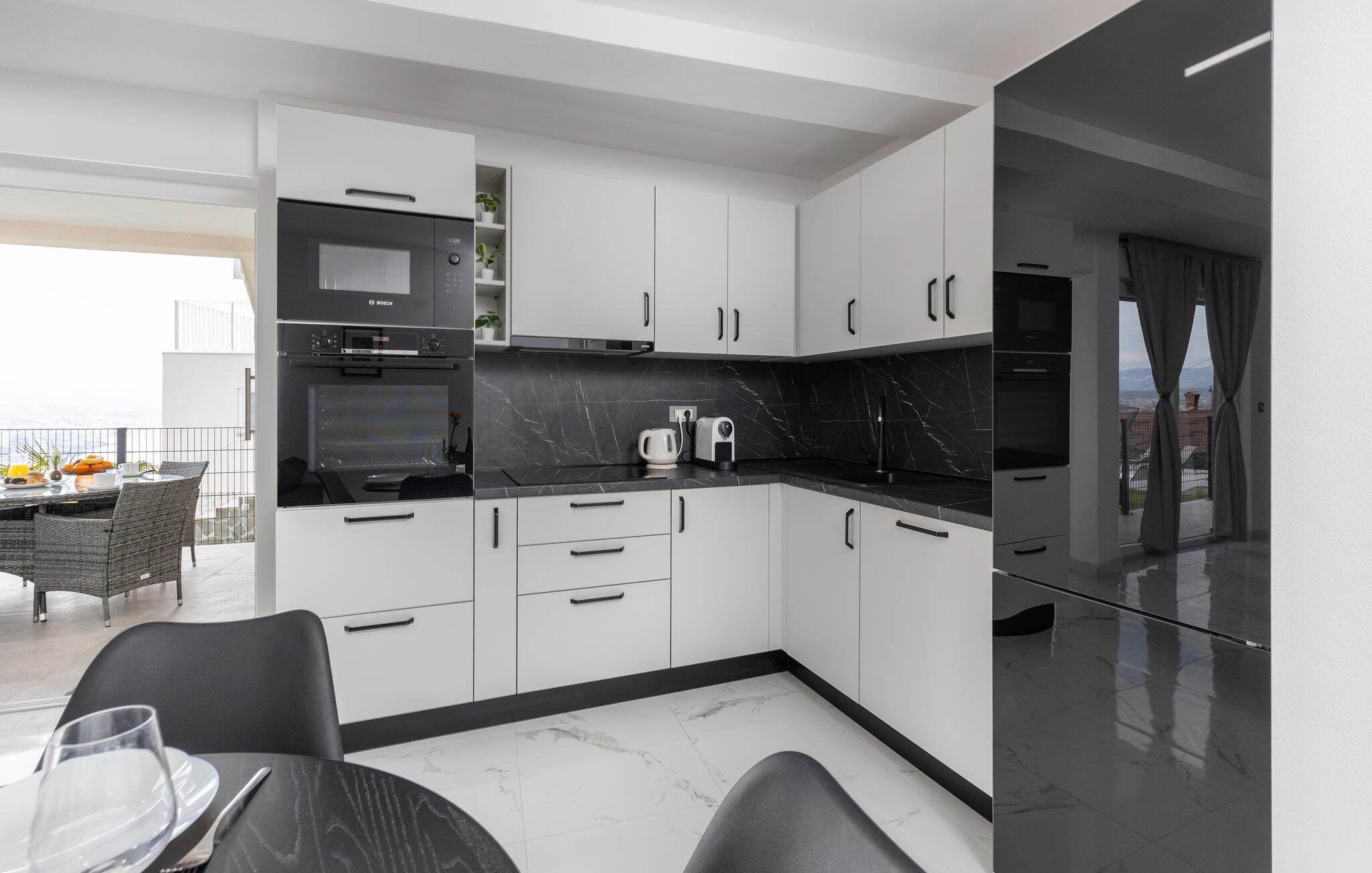 Die Wohnung begrüßt Sie in fantastischer Panoramalage und bietet einen stilvollen Rahmen für eine entspannte Auszeit am Meer. Die wohnlich-moderne Einrichtung schafft eine angenehme Atmosphäre, zahlreiche Fenster sorgen dafür, dass Sie das Meerespanorama voll auskosten können. Entspannen Sie nach Ihren Unternehmungen in der mit anderen Gästen geteilten Sauna mit Blick auf Pool und Meer.