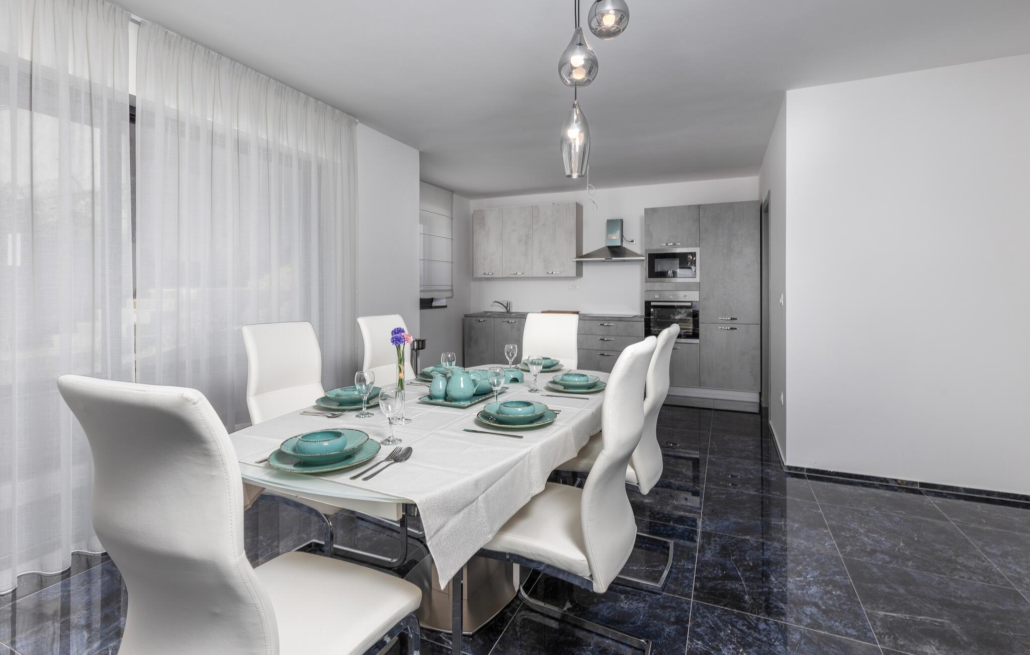 Am Meeresufer der Kvarner Bucht heißt Sie diese elegante Ferienwohnung willkommen. Bewundern Sie den Panoramablick auf das funkelnde Meerwasser, die ideale Szenerie für eine entspannende Auszeit. Nach einer geruhsamen Nacht begrüßen Sie auf Ihrer Terrasse die ersten Sonnenstrahlen. Beim Frühstück mit Meerblick steigt die Vorfreude auf lustige Strandtage und ausgiebige Entdeckungstouren in der Region. Doch zuerst gönnen Sie sich vielleicht ein erquickendes Bad im Pool, der an heißen Tagen Abkühlung verspricht. Im Whirlpool kommen Geist und Körper voll und ganz zur Ruhe.