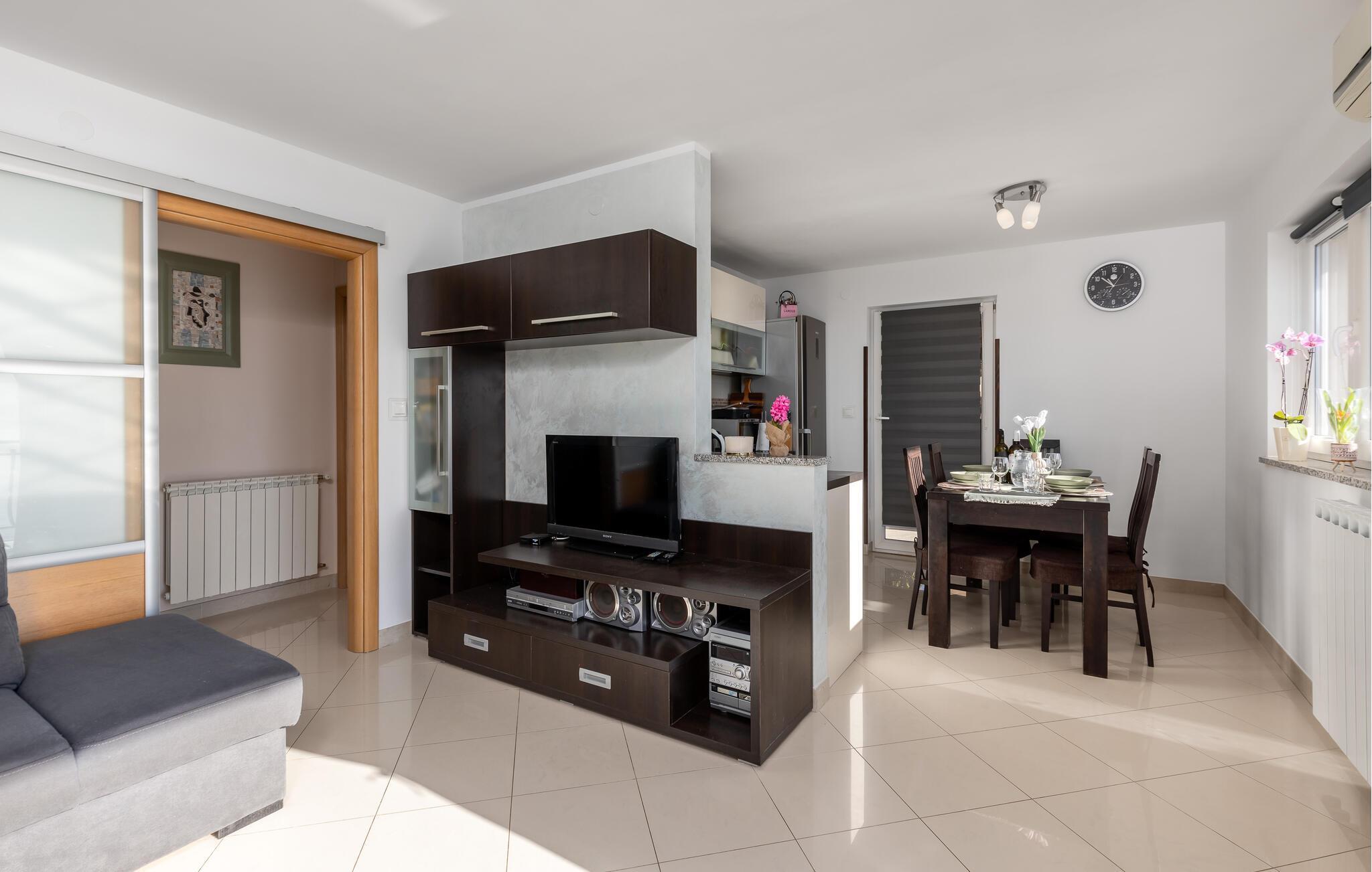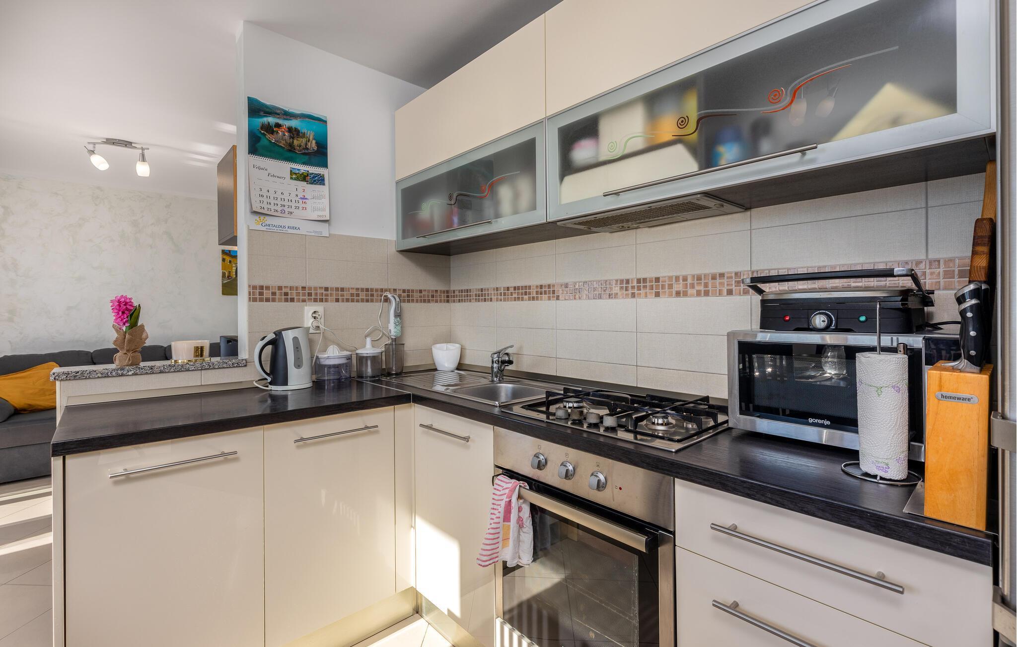 Verbringen Sie unvergessliche Stunden in dieser großzügigen und modernen Wohnung. Entspannen Sie sich in einem stilvollen Ambiente mit einer Tasse Kaffee und genießen Sie die phänomenale Sicht auf die gesamte Kvarner Bucht. Vertiefen Sie sich auf dem bequemen Sofa in Ihre Urlaubslektüre oder hören Sie entspannt Musik. In der gut ausgestatteten Küche bereiten Sie für sich und Ihre Lieben ein leckeres Menü zu. Den Abend lassen Sie entspannt mit einer guten Flasche Wein ausklingen.