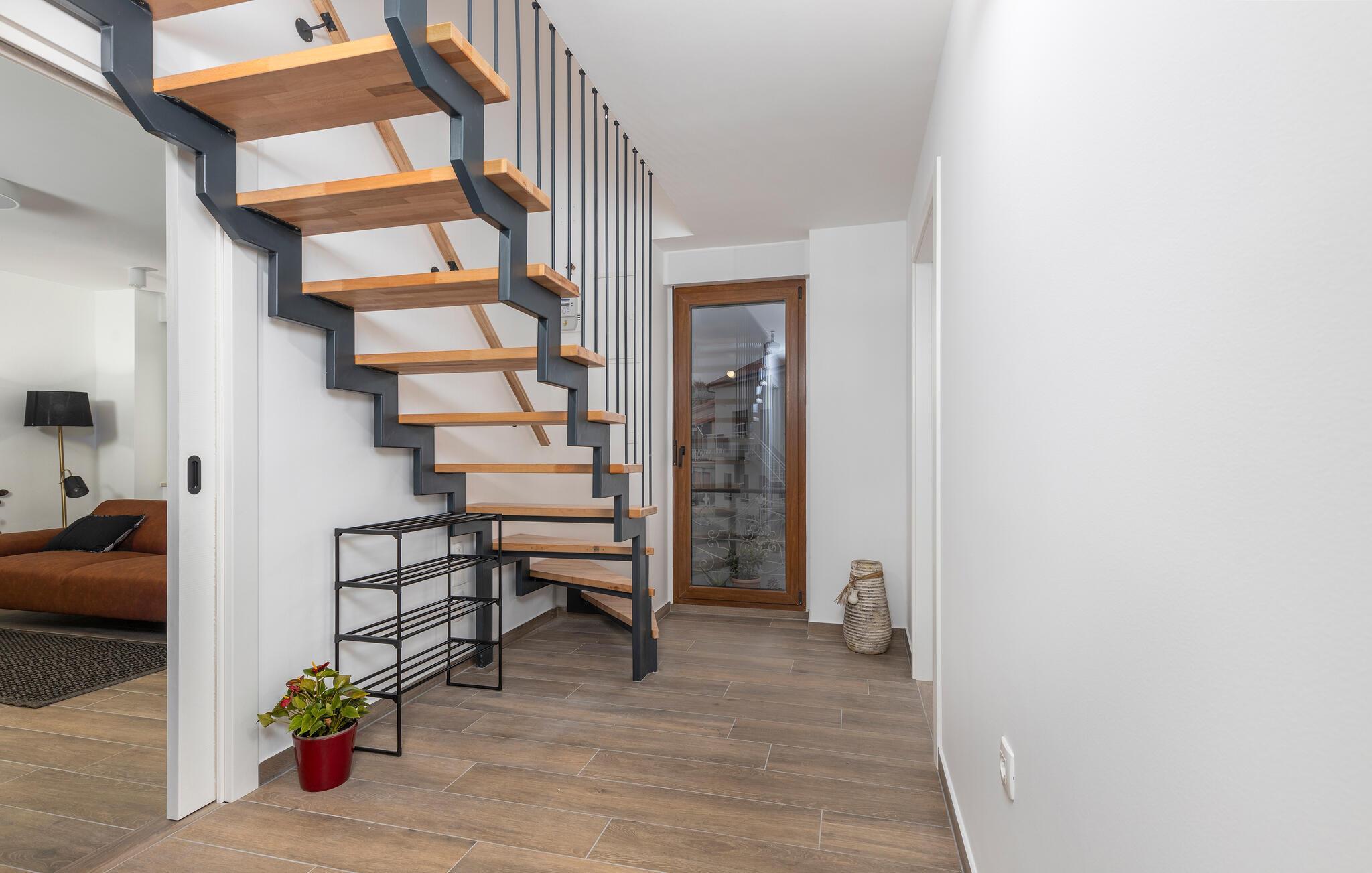 Freuen Sie sich auf diese zweistöckige Ferienwohnung, die Sie mit moderner Einrichtung und eine vollständige Ausstattung empfängt. Machen Sie Unterkunft zu Ihrem zweiten Zuhause und genießen gemeinsame Kochabende in der Wohnküche und genießen erholsame Nächte in den geräumigen Schlafzimmern.