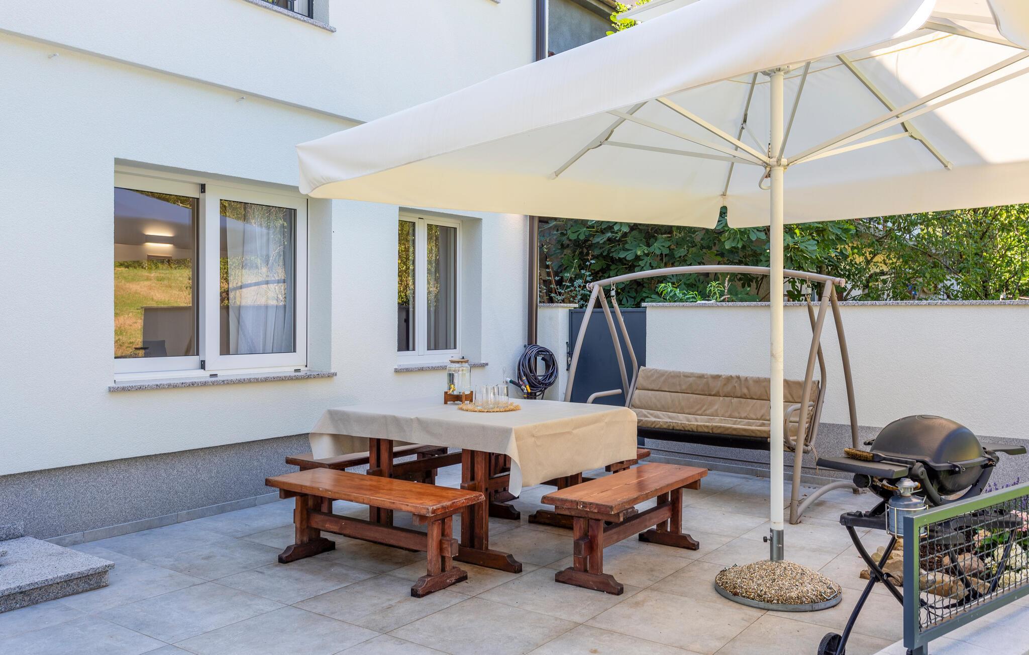 Genießen Sie die Ruhe und Landschaft, die diese schöne Ferienwohnung mit großer Terrasse umgibt.
