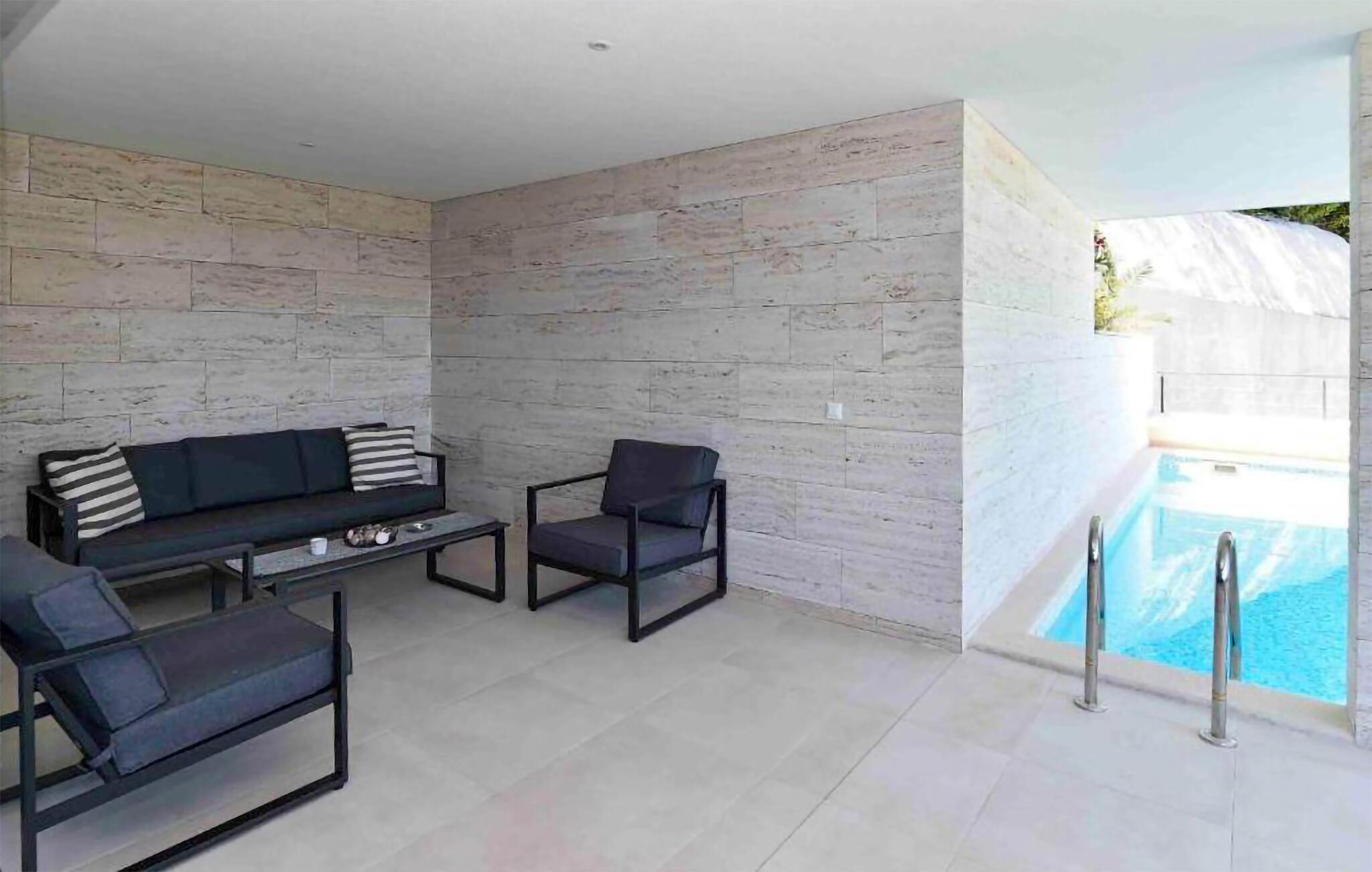 Entspannen Sie am privaten Pool, umgeben von modernem Design und mediterraner Vegetation. Die schattige Lounge und die großzügige Terrasse mit Essbereich bieten den perfekten Rahmen für stimmungsvolle Stunden. Der beeindruckende Meerblick begleitet Sie bei jeder Mahlzeit und jedem Sonnenbad.