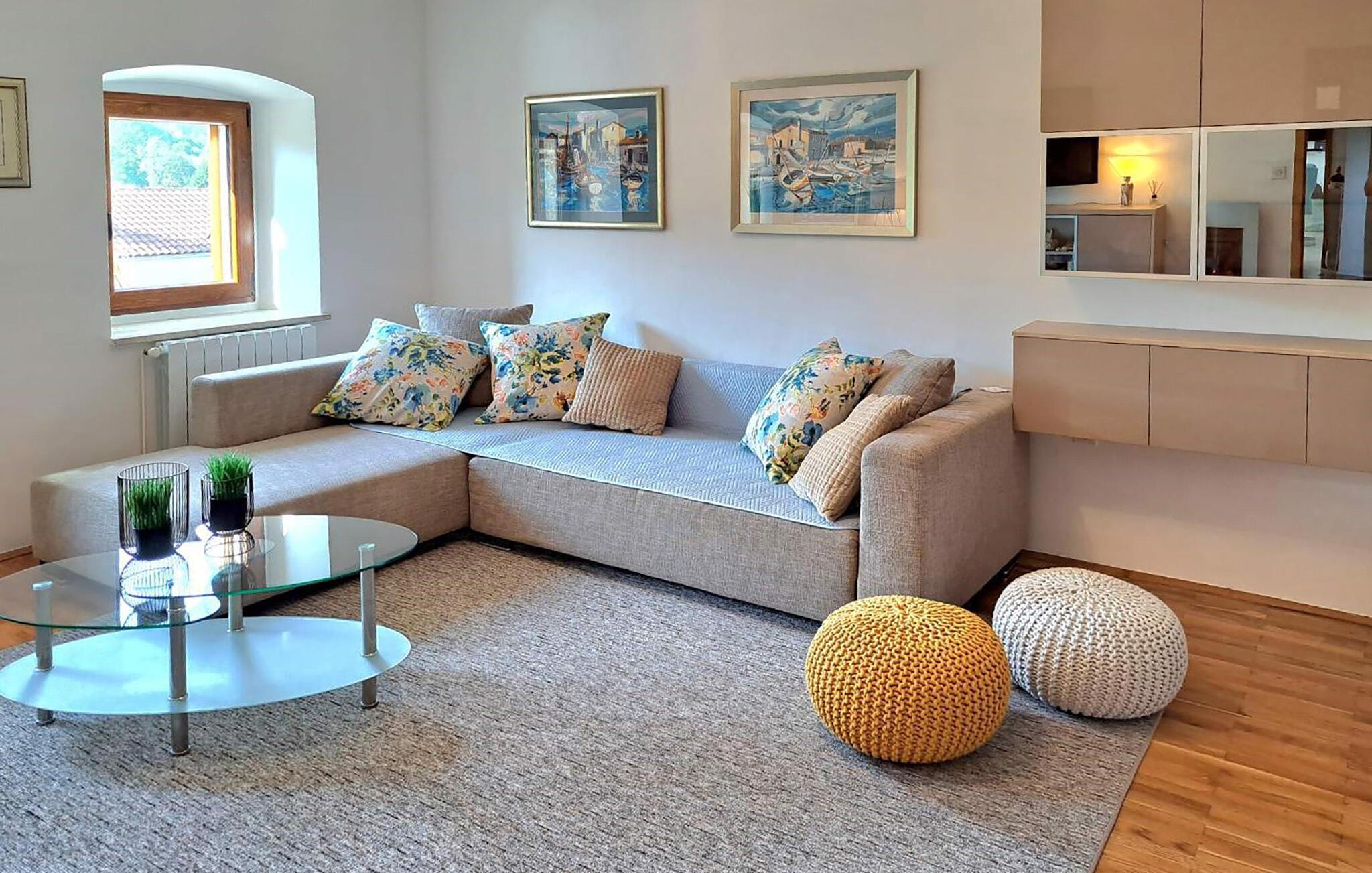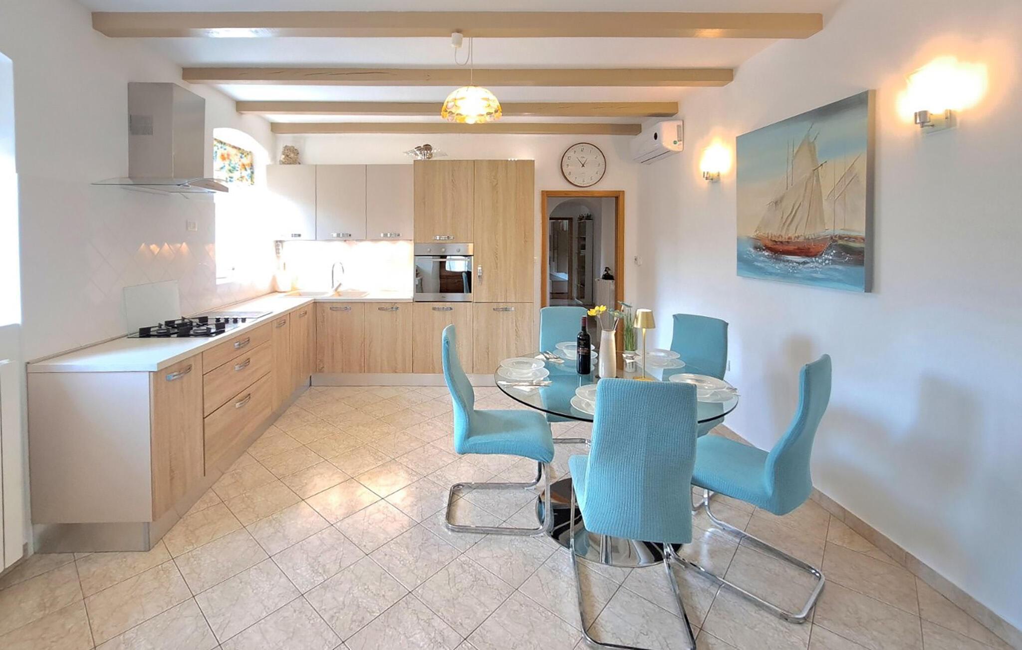 Oberhalb der Kverner Bucht, in der Nähe des Waldes, im kleinen Dorf Jusici befindet sich diese sehr gemütliche Doppelhaushälfte. Die Geschichte des Hauses reicht weit in die 1920er Jahre, und seitdem wurde es renoviert um modernen Komfort zu bieten. Die hellen Innenräume erstrecken sich über das Erdgeschoss, und in einem kleineren umzäunten Teil des Gartens können Sie herrlich auf der Terrasse entspannen. Leckere Mahlzeiten können Sie auch in der Außenküche oder auf dem Grill zubereiten. Im Biogarten des Eigentümers können Sie dazu frische Kräuter sammel. In wenigen Minuten Autofahrt erreichen Sie die nächsten Strände, Opatija sowie die Uferpromenade, auf der Sie Spaziergänge zu den umliegenden Orten unternehmen können.