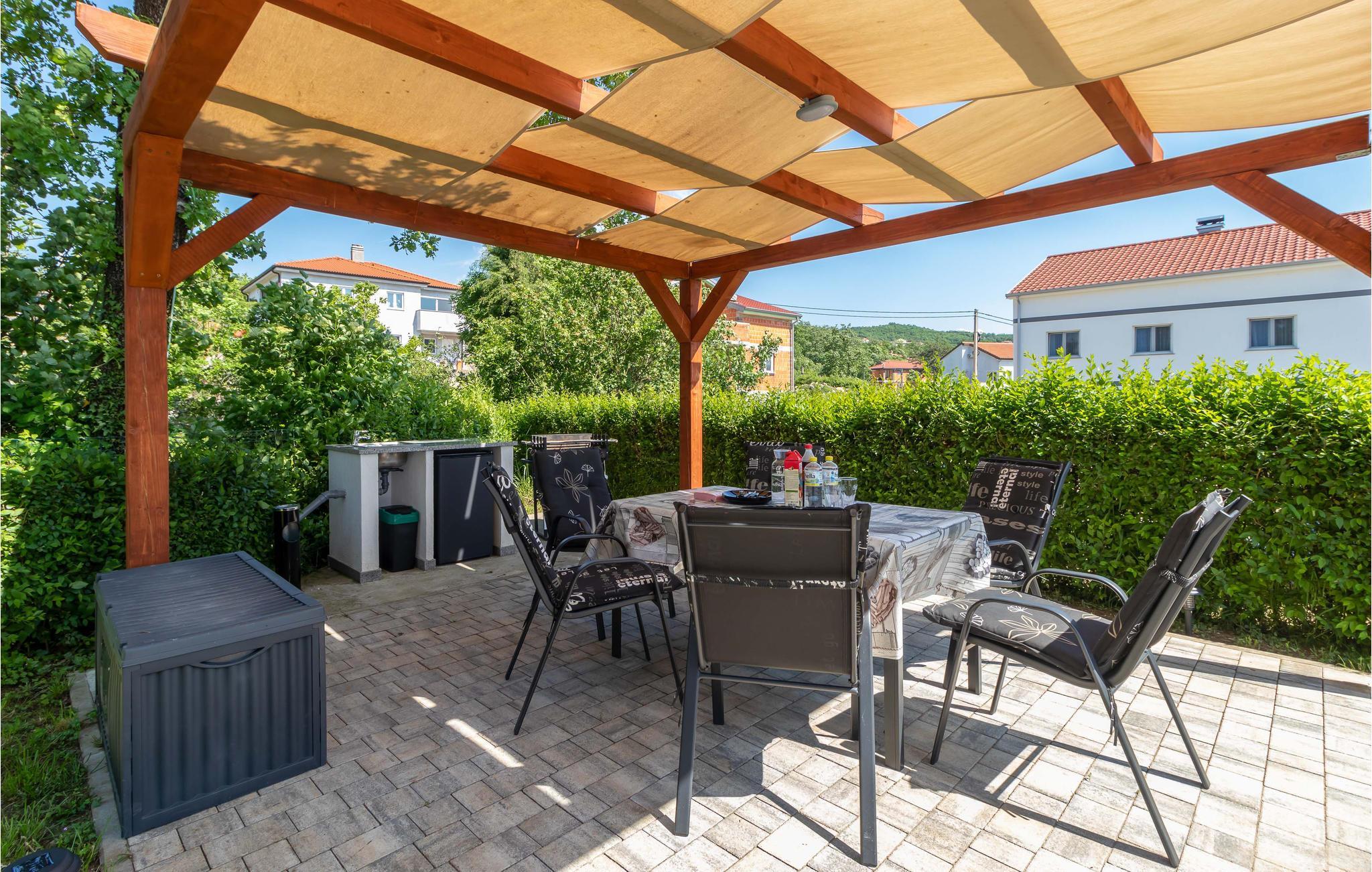 Zur Entspannung steht eine offene Terrasse zur Verfügung, die den größten Teil des Tages in angenehmem Schatten liegt. Entspannen Sie hier an heißen Tagen und bereiten Sie Ihre Lieblingsspezialitäten auf dem Grill zu. Ihre Kinder können sorglos auf dem umzäunten Hof spielen, während Sie in bequemen Liegestühlen den Urlaub genießen.