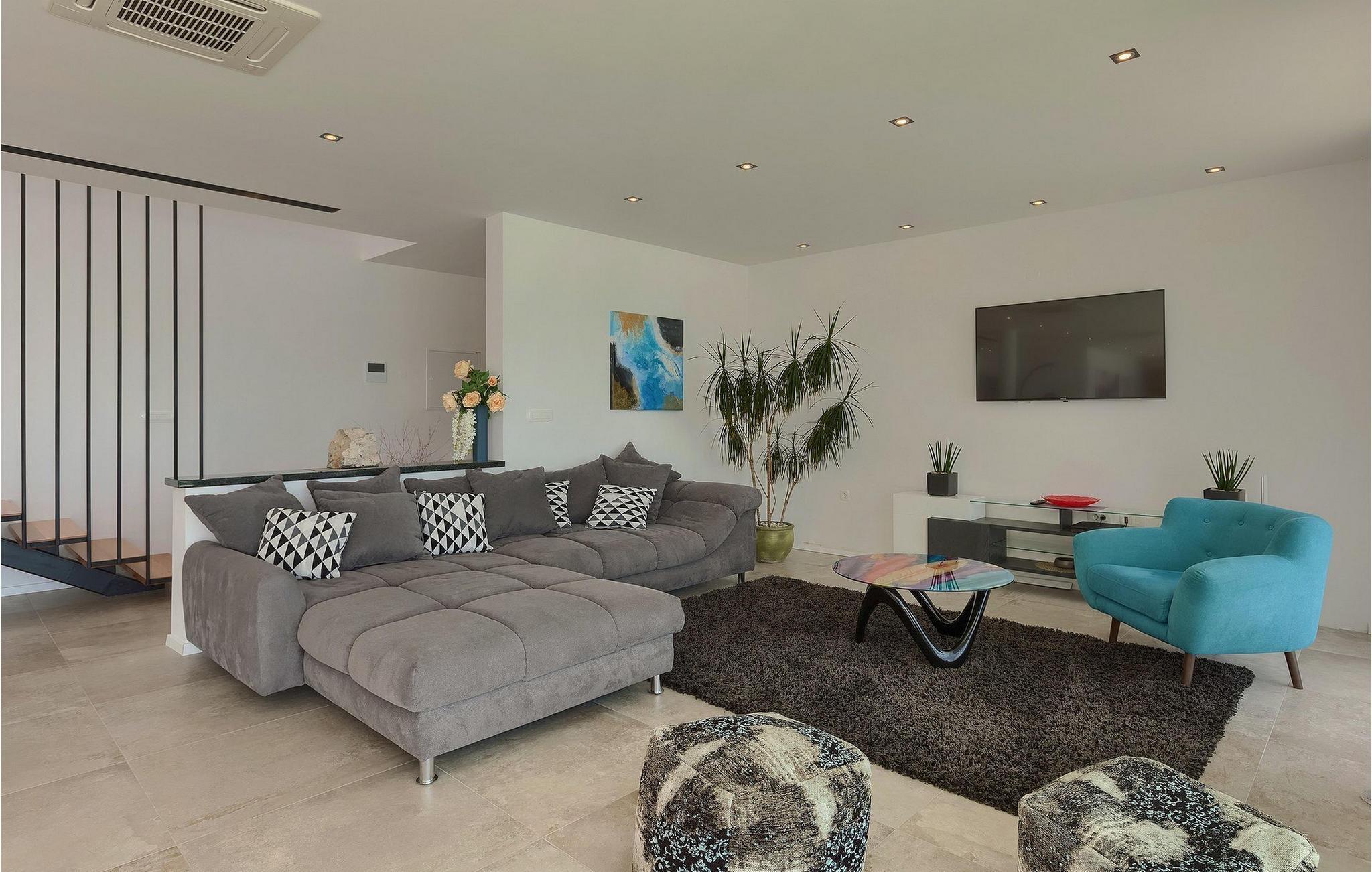 Diese wunderschöne Villa wird Sie mit ihrem modernen Design und einem fantastischen Panoramablick auf Opatija und die Kvarner-Bucht in Erstaunen versetzen. Die Villa befindet sich auf einem 1400 m2 großen Grundstück und verfügt über 4 Schlafzimmer, die sich alle im Obergeschoss befinden und über ein eigenes Badezimmer, TV und Klimaanlage verfügen. Dies macht sie zu einem perfekten Ferienhaus mit optimalem Komfort für 8 Personen. Das Erdgeschoss ist ein sehr stilvoll eingerichteter offen konzipierter Raum, der aus einem Ess- und Wohnbereich und einer geräumigen, völlig ausgestatteten Küche besteht. Hier gibt es auch einen separaten Raum mit Jacuzzi, Dusche und Sauna, sowie einen Raum mit einem Billardtisch für mehr Spaß. Das Wohnzimmer ist direkt mit der Terrasse verbunden, von der Sie die traumhafte Aussicht vom privaten Pool oder vom gemütlichen Loungebereich aus genießen können. Ein Essbereich im Freien mit einem Holzkohlegrill steht Ihnen ebenfalls zur Verfügung. Diese funktionale Villa bietet alles, was Sie für einen erholsamen und unterhaltsamen Urlaub benötigen, während ihre Lage Ihnen ermöglicht, alle Schönheiten der Kvarner-Region zu erkunden.Diese wunderschöne Villa befindet sich in der Nähe des kleinen Städtchen Kastav, nur ca. 6 km von Opatija und 10 km von Rijeka entfernt. Rijeka ist bekannt als der größte Hafen Kroatiens, aber auch für zahlreiche Restaurants, Cafés, Clubs, Bars und Veranstaltungen. Erleben Sie die Stimmung der Stadt bei einem Spaziergang entlang dem Korzo, erkunden Sie die Altstadt und besuchen Sie die Wallfahrtskirche in Trsat auf einem Hügel über der Stadt. Sie sollten auf jeden Fall dem Karneval in Rijeka, dem fünftgrößten Karneval weltweit, einen Besuch abstatten! Der Flughafen Rijeka befindet sich auf der Insel Krk, nur eine kurze Autofahrt von der Villa. Machen Sie einen Spaziergang entlang der wunderschönen Küstenpromenade "Lungomare" und genießen Sie romantische Spaziergänge beim Sonnenuntergang in der Stadt Opatija - die Perle der Adria.