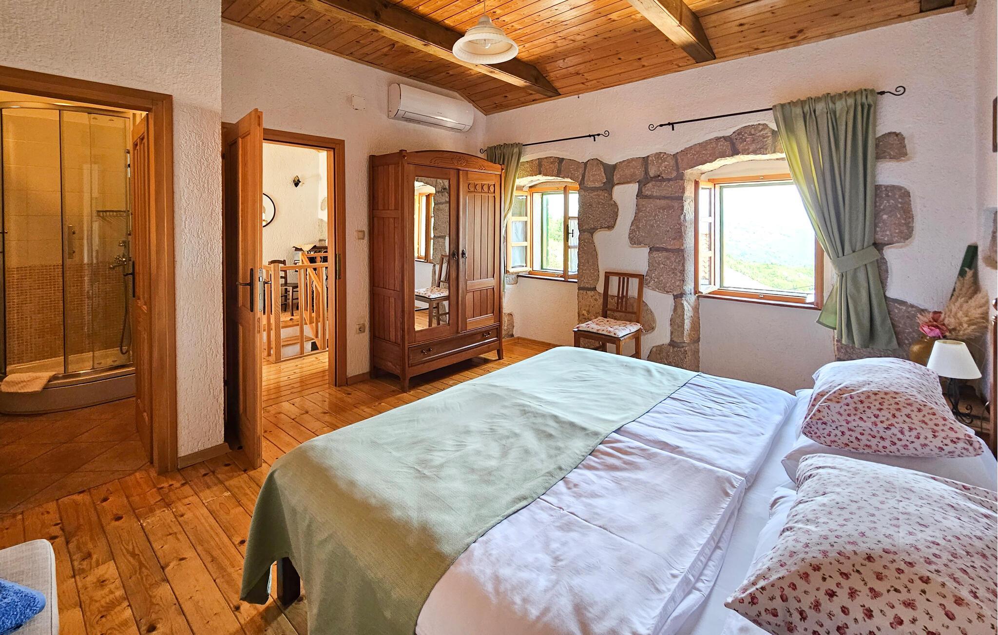 Dieses schöne und traditionell eingerichtete Ferienhaus erstreckt sich über zwei Etagen und liegt in einem kleinen, gemütlichen Dorf nur fünf Autominuten von Lovran entfernt. Es ist von einer schönen Natur umgeben und nicht weit vom Meer gelegen. Lovran ist ein bekannter Kurort und nicht weit von der großen Stadt Opatija gelegen. Die Gegend hat viele Unterhaltungsaktivitäten und Unterhaltungsmöglichkeiten zu bieten.