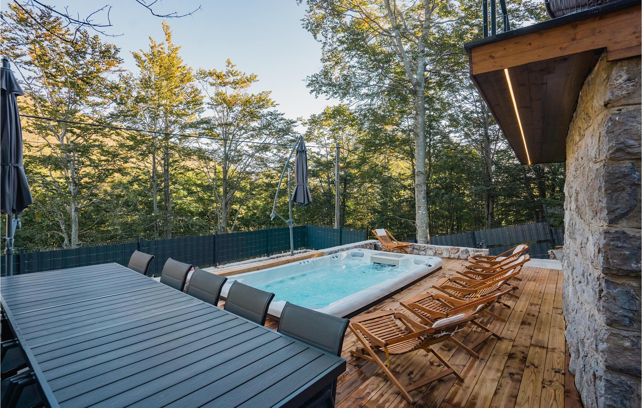 Auch im Freien hat dieses Ferienhaus viel zu bieten. Terrassen und Balkon laden dazu ein, die Sonne und die schöne Aussicht zu genießen. Entspannen Sie im Liegestuhl und schwimmen Sie nach Belieben im Pool, oder genießen Sie ein Bad im Whirlpool, während Ihre Kinder sich auf dem Trampolin vergnügen.