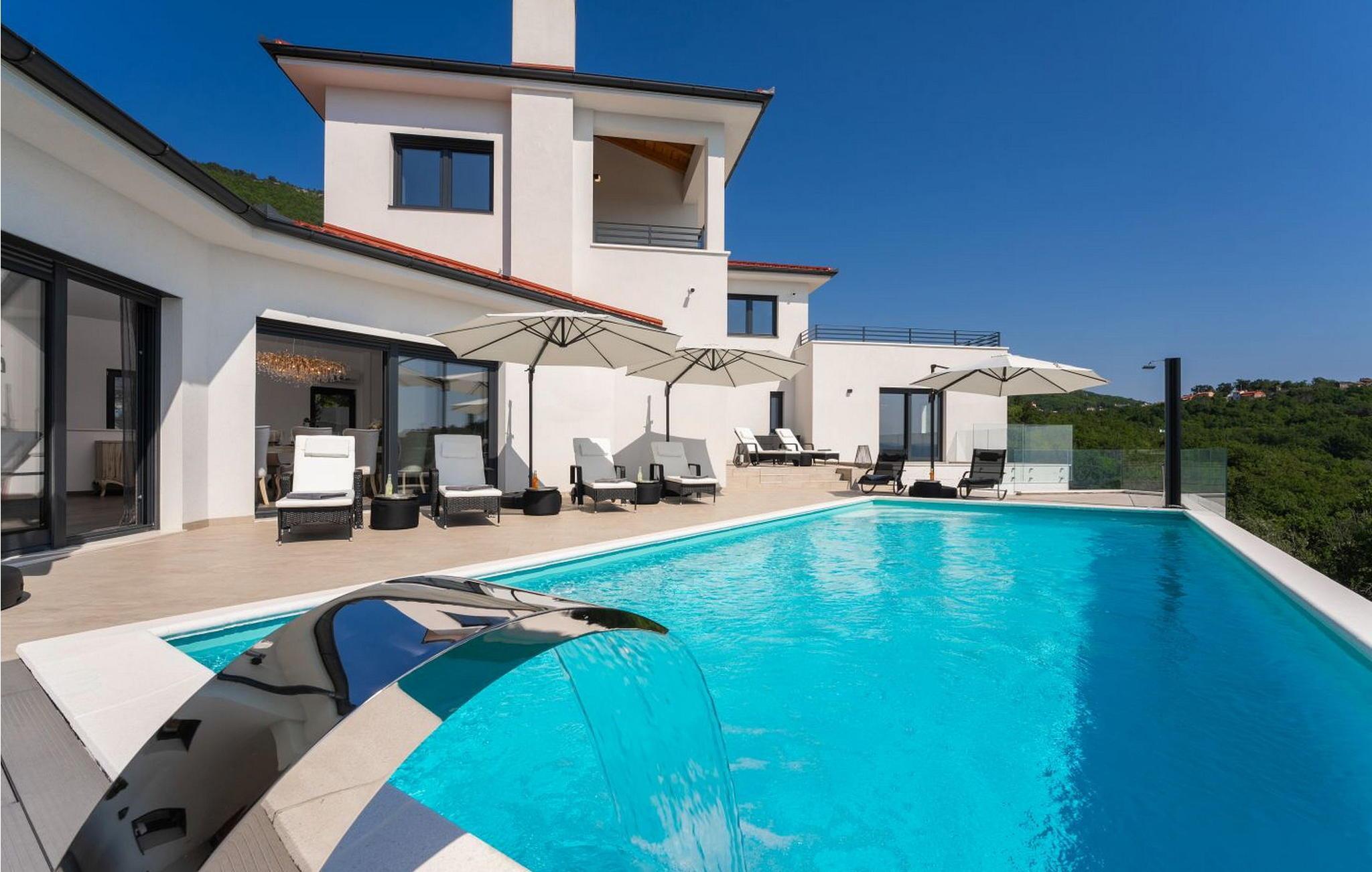 Entdecken Sie die Eleganz der Villa Oliv One, ideal gelegen zwischen Opatija und Rabac, in der Nähe von Brse. Dieser moderne Rückzugsort bietet einen atemberaubenden Meerblick und eine beeindruckende Aussicht auf die Kvarner-Inseln. Nur 2 km vom Strand Klanac entfernt bietet es einen Infinity-Pool, der mit dem Horizont verschmilzt, sowie eine überdachte Terrasse mit Grill, Sonnenliegen und Sonnenschirmen. Erkunden Sie die nahe gelegenen Rad- und Wanderwege, die zum Naturpark Uka und seinem Gipfel Vojak führen. Für Nervenkitzel-Suchende gibt es im Park eine Gleitschirmrampe. Im Inneren verfügt die Villa über ein geräumiges Erdgeschoss mit einem Wohnbereich, einem Esszimmer, einer voll ausgestatteten Küche, einer separaten Toilette, einer Waschküche und einem Wellnessbereich mit Whirlpool und Sauna. Eine separate Einheit auf dieser Ebene umfasst eigene Wohn- und Essbereiche, eine Küche, ein Schlafzimmer und ein Badezimmer. Der erste Stock verfügt über drei Schlafzimmer, jedes mit eigenem Badezimmer. Die Villa Oliv One verbindet Luxus und Komfort mit inspirierender Naturschönheit und ist damit der perfekte Rückzugsort. Bitte beachten Sie, dass diese Unterkunft keine Jugendgruppen oder Junggesellenabschiede akzeptiert. Eine Jugendgruppe in diesem Anwesen besteht aus Personen im Alter von 26 Jahren oder darunter.