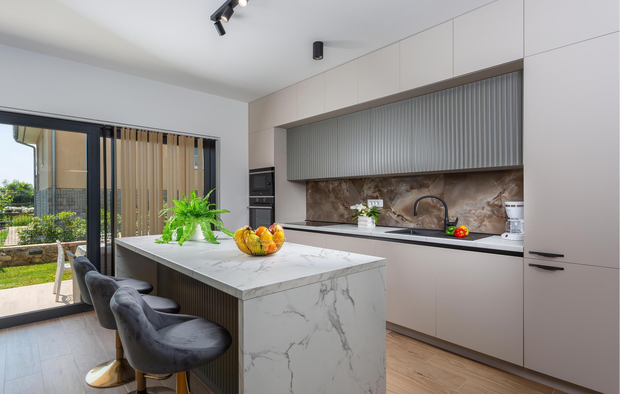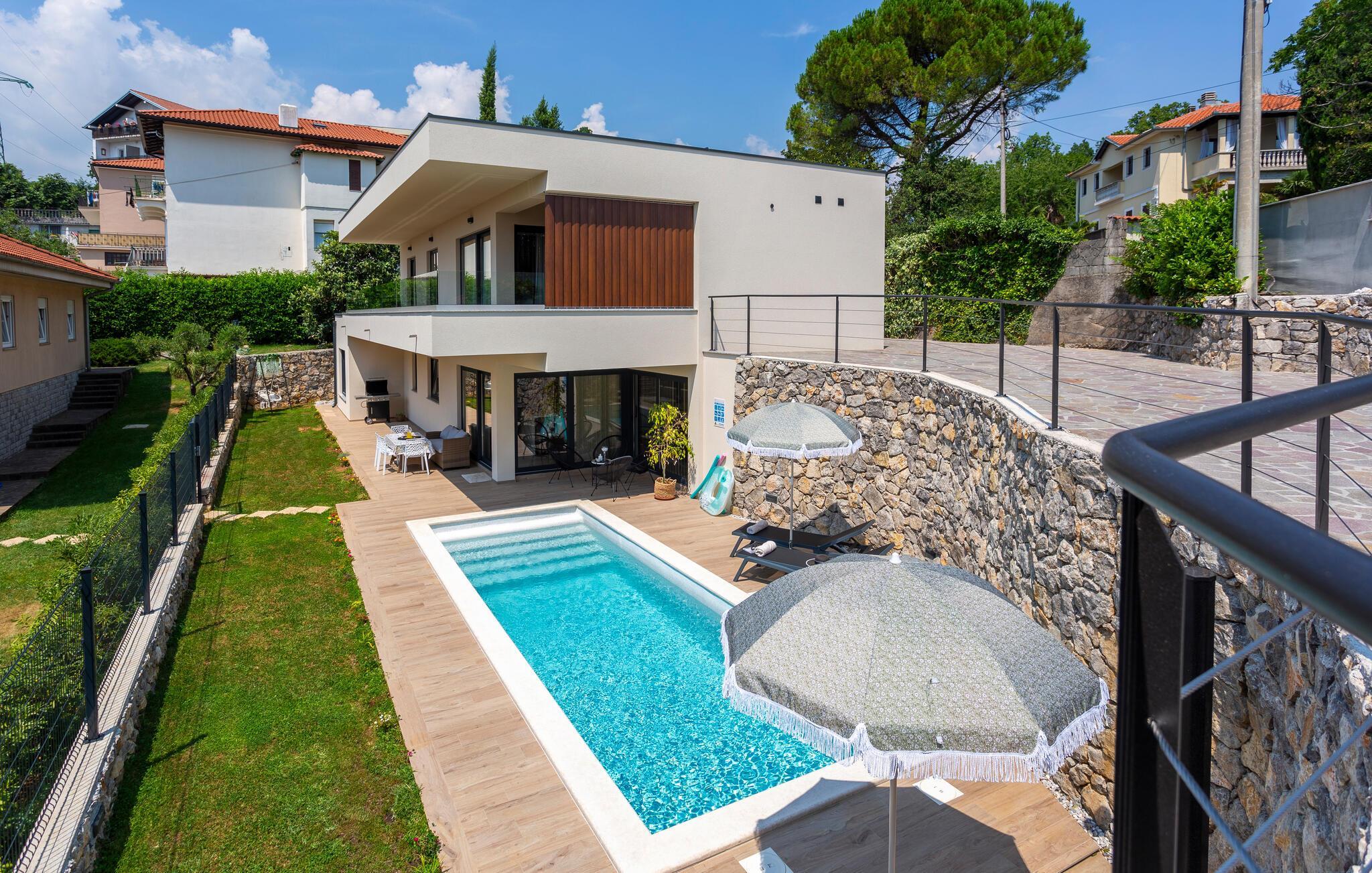 Das komfortable und geräumige Haus empfängt Sie in Matulji oberhalb von Opatija. Machen Sie es sich in den hellen Räumen mit Ihren Lieben gemütlich. Die Einrichtung ist geschmackvoll und modern und verleiht dem Inneren des Ferienhauses sein wohnliches Ambiente. Suchen Sie eine der vielen behaglich eingerichteten Räume zum Entspannen auf, bevor Sie in den ansprechenden Gemeinschaftsbereichen wieder zu den anderen stoßen und gemeinsam kochen, essen und entspannen.