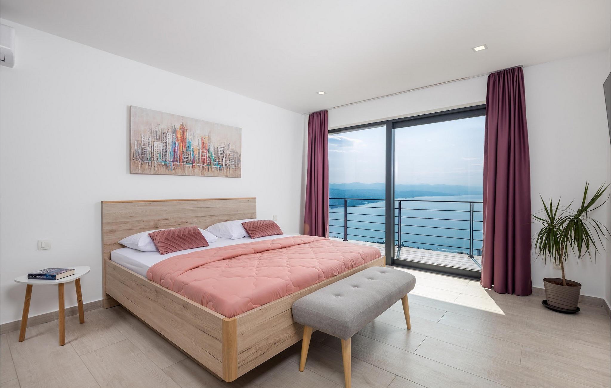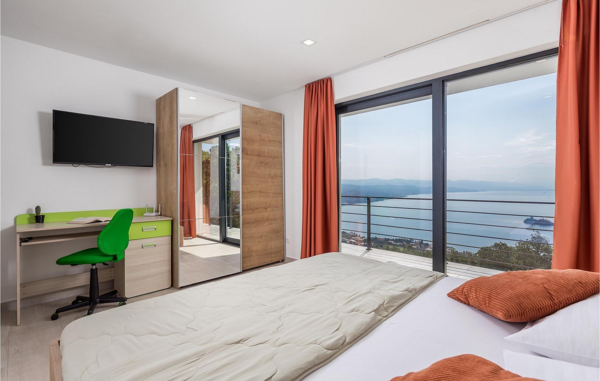 Buchen Sie die Villa Deavista und verbringen Sie einen erholsamen Urlaub in der Nähe der wunderschönen Stadt Opatija!Die bezaubernde Villa Deavista befindet sich in ruhiger Lage umgeben von unberührter Natur in der Nähe von der Stadt Opatija und mit einem märchenhaften Blick auf die Kvarner Bucht. Nur 500 m von der Villa entfernt finden Sie den nächsten Strand und in der Umgebung finden Sie auch alles andere, was Sie für einen erholsamen Urlaub benötigen. Lernen Sie diese Gegend durch Lungo Mare kennen, eine 12 km lange und hundert Jahre alte Promenade entlang der Küste, die sich von Lovran bis Voloski erstreckt. Die Lungo Mare Küstenpromenade ist ein beliebter Ort bei den Gästen in Opatija. Die Promenade ist 100 Jahre alt, romantisch und entspannend, weit vom Verkehr und der Hektik der Stadt. Die Strandpromenade entlang befinden sich zahlreiche Denkmäler zu Ehren von bemerkenswerten Persönlichkeiten, die Opatija besucht haben. Volosko ist auch ein Muß - früher ein Fischerort, heute eine charmante Küstenstadt, bekannt für zahlreiche Restaurants und einen wunderbaren Blick auf das Meer. Fahren Sie unbedingt in die Stadt Rijeka, wo Sie die Möglichkeit haben, viele kulturelle Sehenswürdigkeiten und ein reichhaltiges gastronomisches Angebot zu genießen.